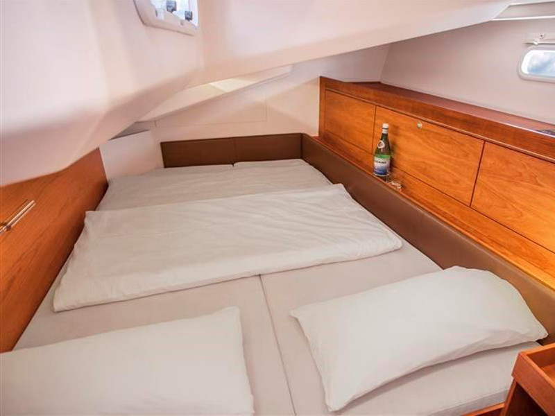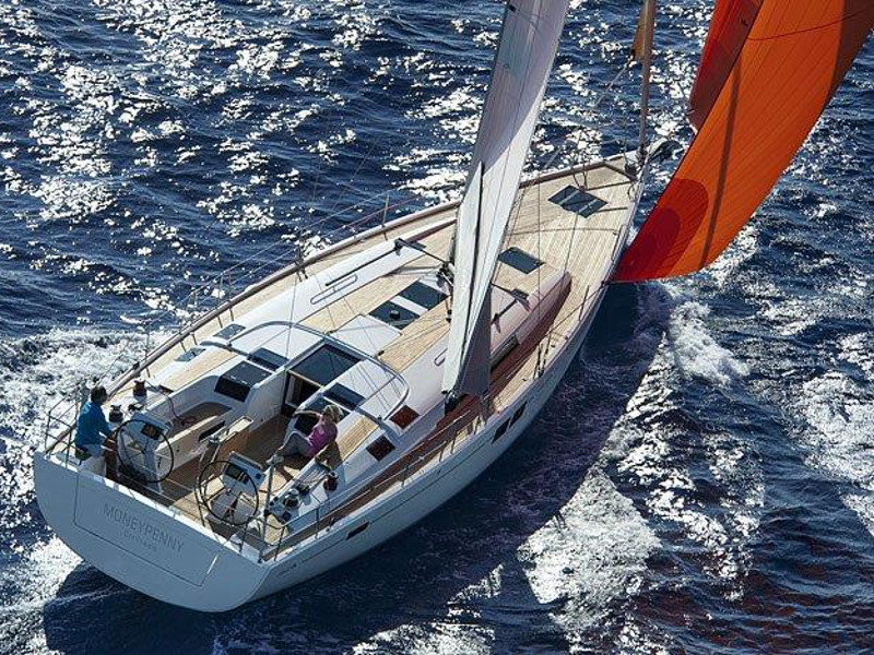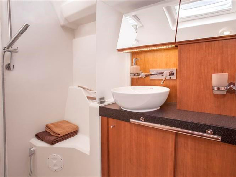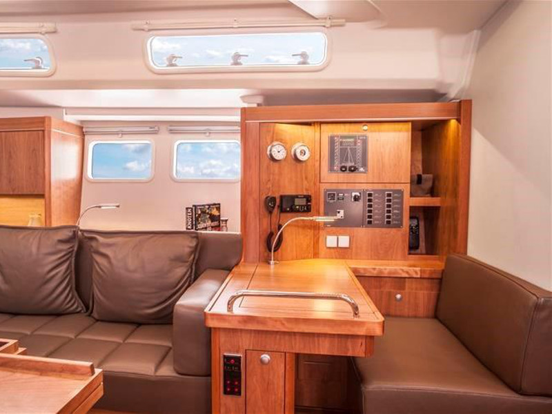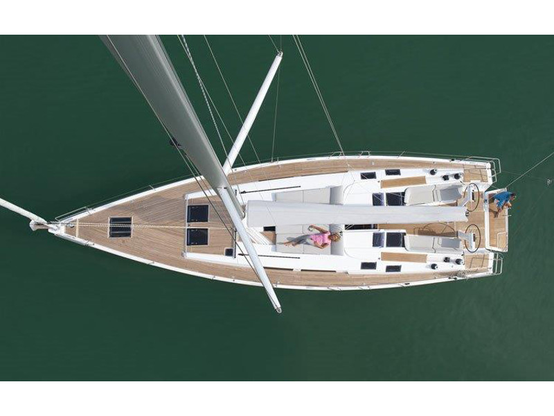El. anchor windlass, Bathing platform, Bimini top, Cockpit shower, Cockpit speakers, Cockpit table, Dinghy, El. halyard winch, El. primary winch, Sprayhood, Steering wheel, Teak cockpit, Autopilot, Charts & pilot books, GPS plotter, Tridata, VHF radio, Battery charger, Bed linen, Electric refrigerator, Freezer, Galley equipment, Gas stove and oven, Hot water system, Inverter 12V to 220V, Radio/CD player, TV, Bow thruster, Genoa - roll, Full batten Main Sail