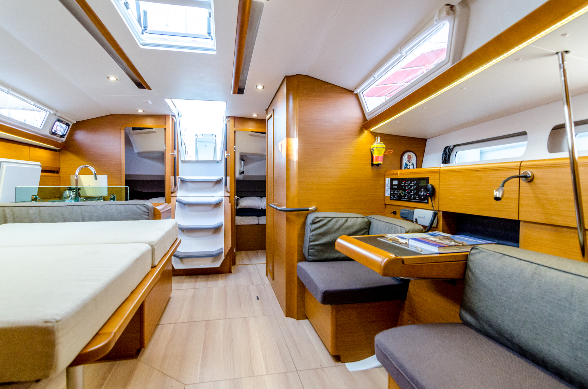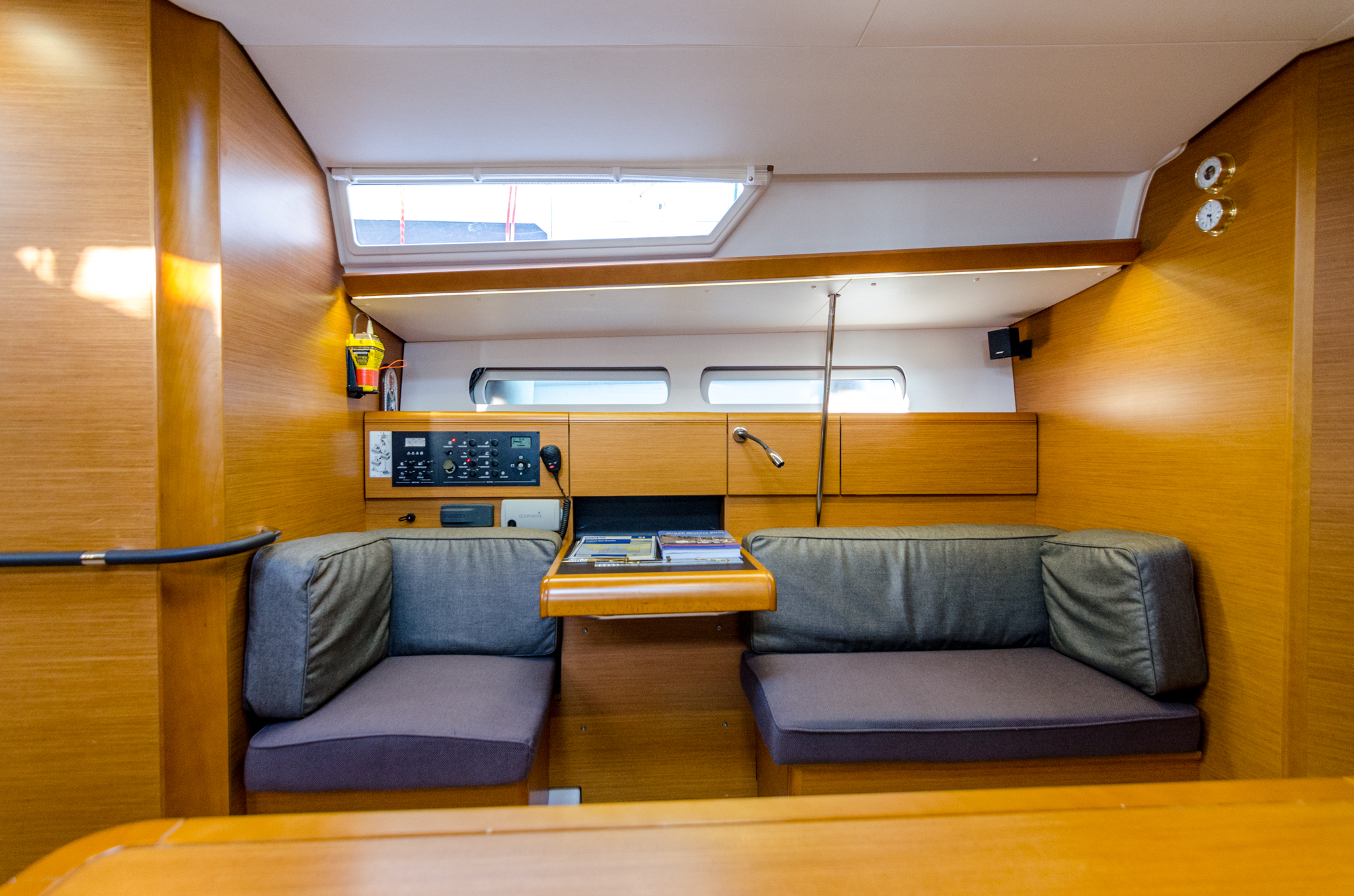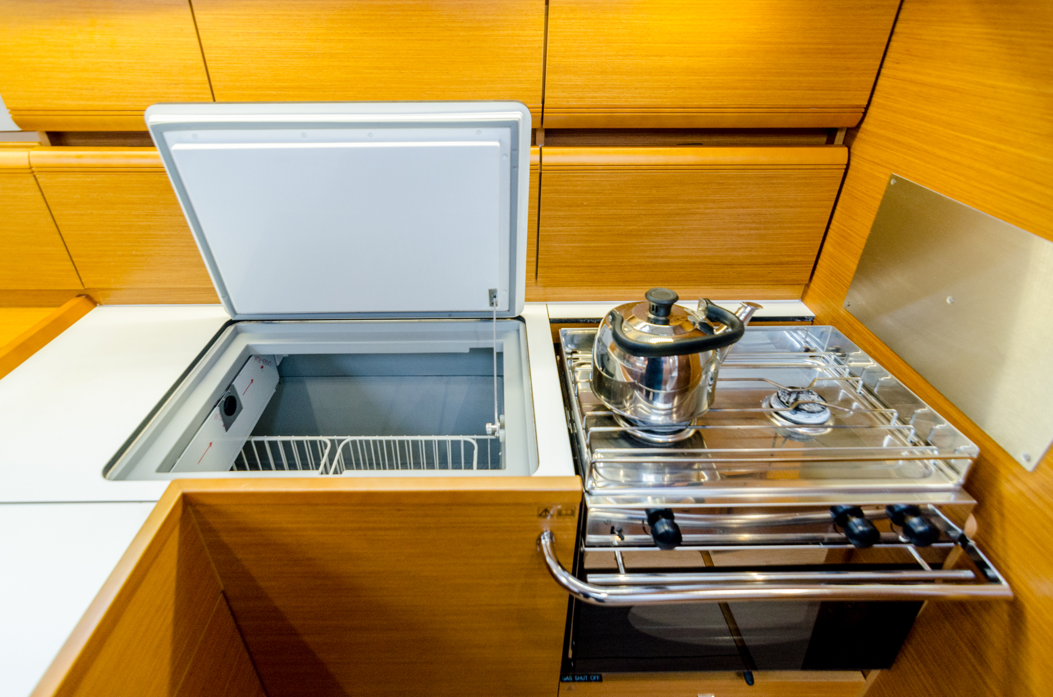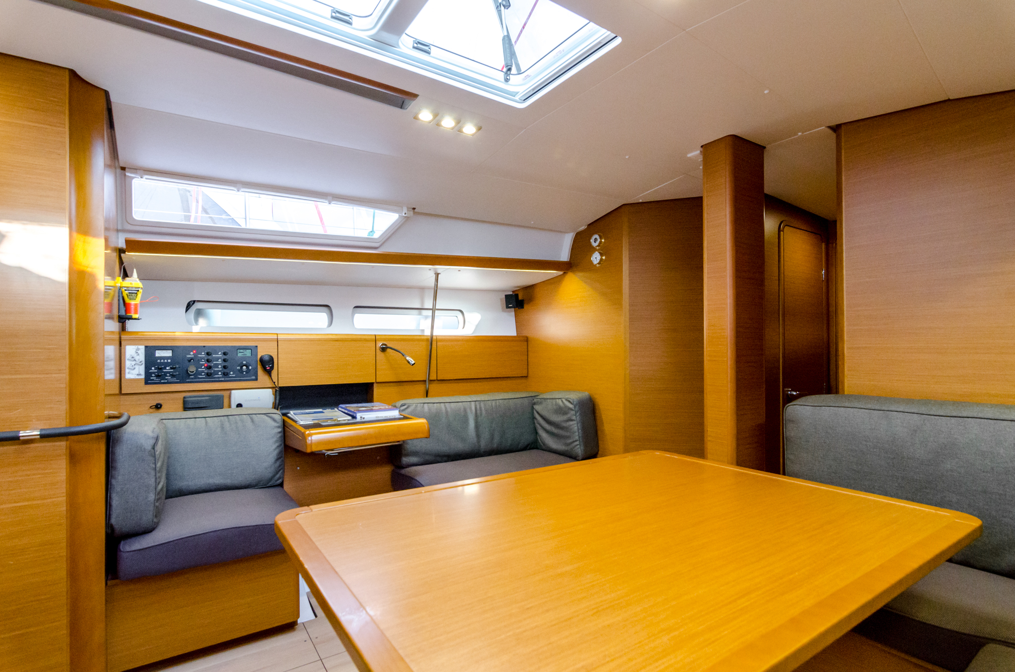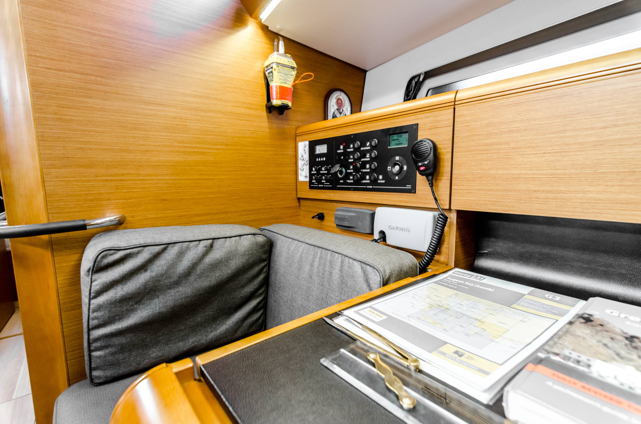 Air fans, Solar panel, Cockpit speakers, Outboard, Wind Instruments, Roll genoa, USB/AUX connection, Bimini, Cockpit table, Dinghy, External shower, Galley equipment, Gangway, Oven, Refrigerator, Sprayhood, Warm water, Radio/MP3 player, Speakers on deck, USB connection, Anchor winch, Autopilot, Bow thruster, Charts, Depth sounder, Electric windlass, EPIRB, GPS Chart plotter, Life raft, Safety equipment, VHF, Full batten main sail