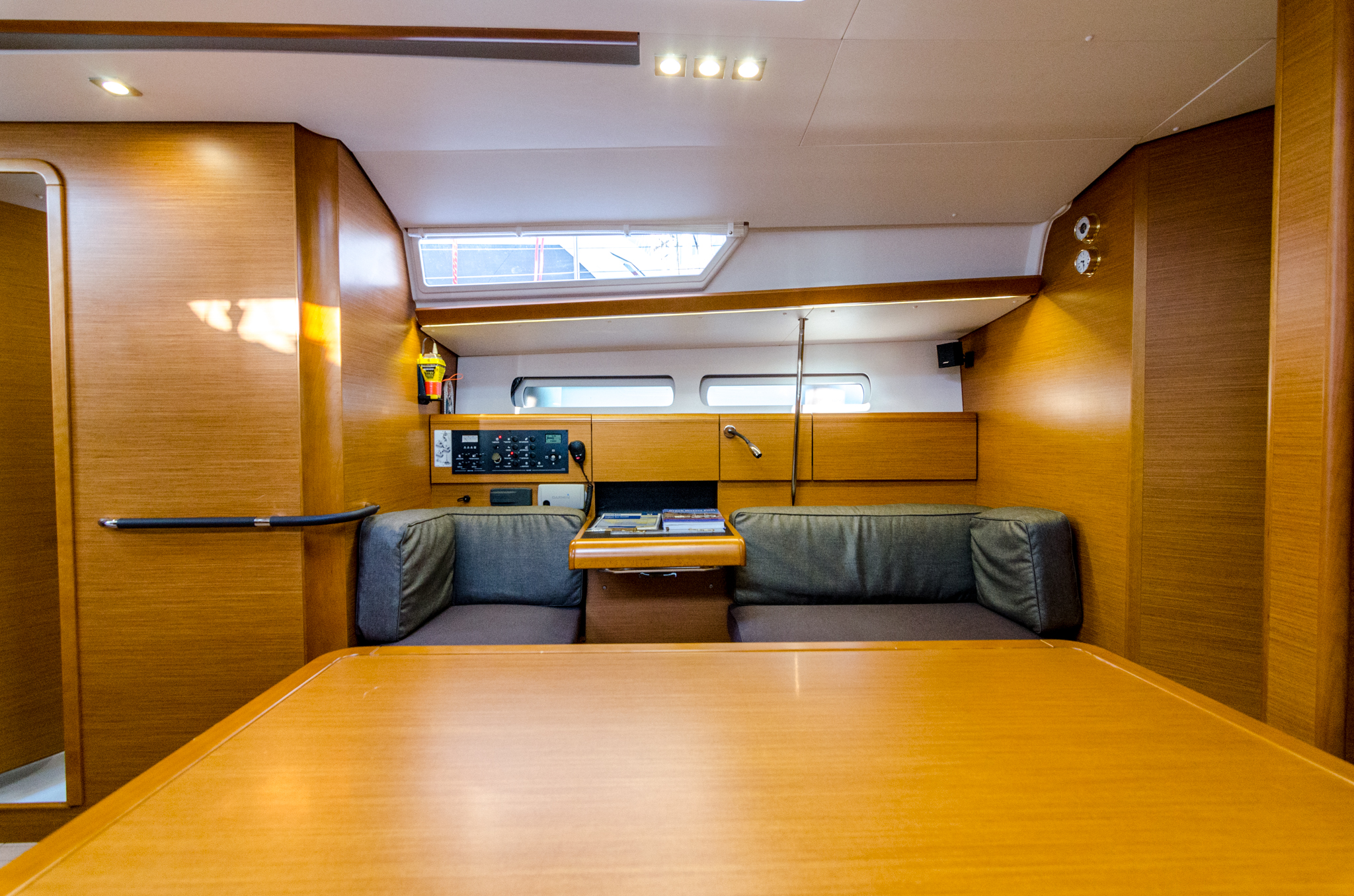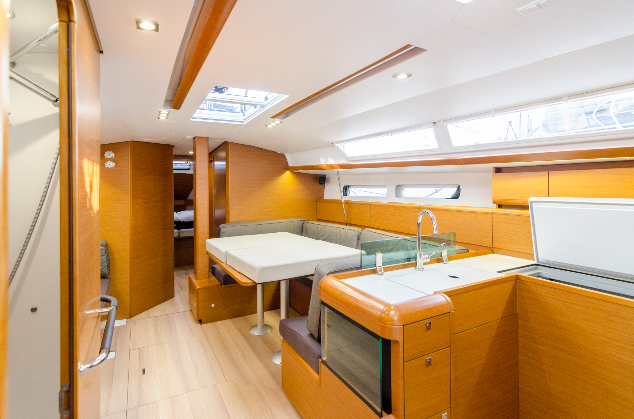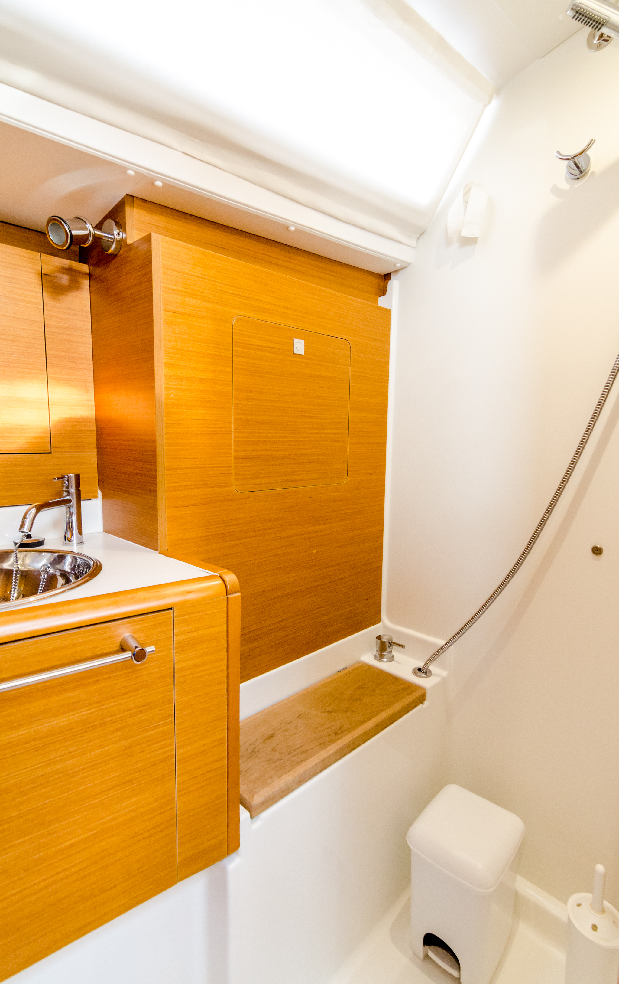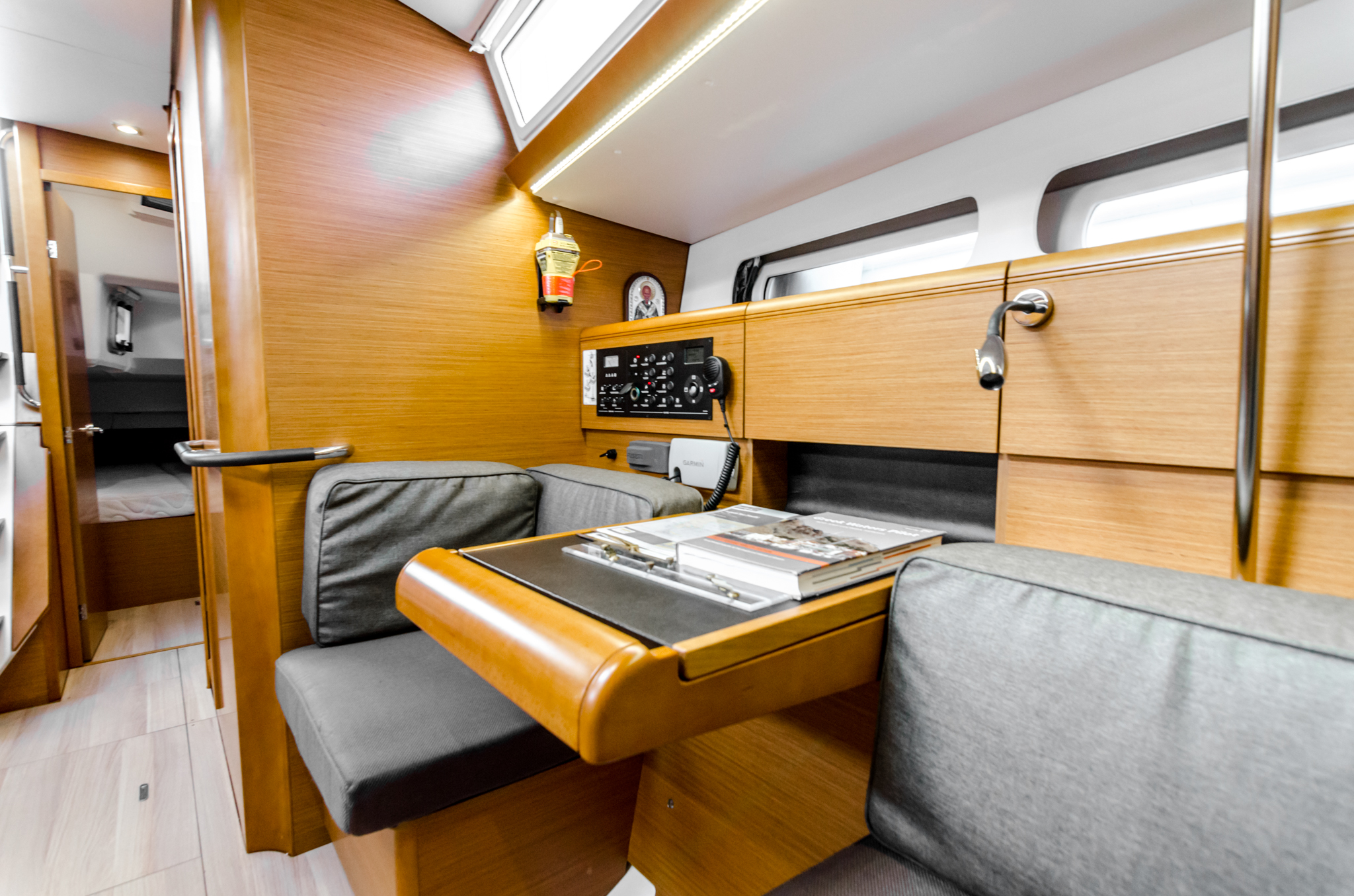 Air fans, Solar panel, Cockpit speakers, Outboard, Wind Instruments, Roll genoa, USB/AUX connection, Bimini, Cockpit table, Dinghy, External shower, Galley equipment, Gangway, Oven, Refrigerator, Sprayhood, Warm water, Radio/MP3 player, Speakers on deck, USB connection, Anchor winch, Autopilot, Bow thruster, Charts, Depth sounder, Electric windlass, EPIRB, GPS Chart plotter, Life raft, Safety equipment, VHF, Full batten main sail