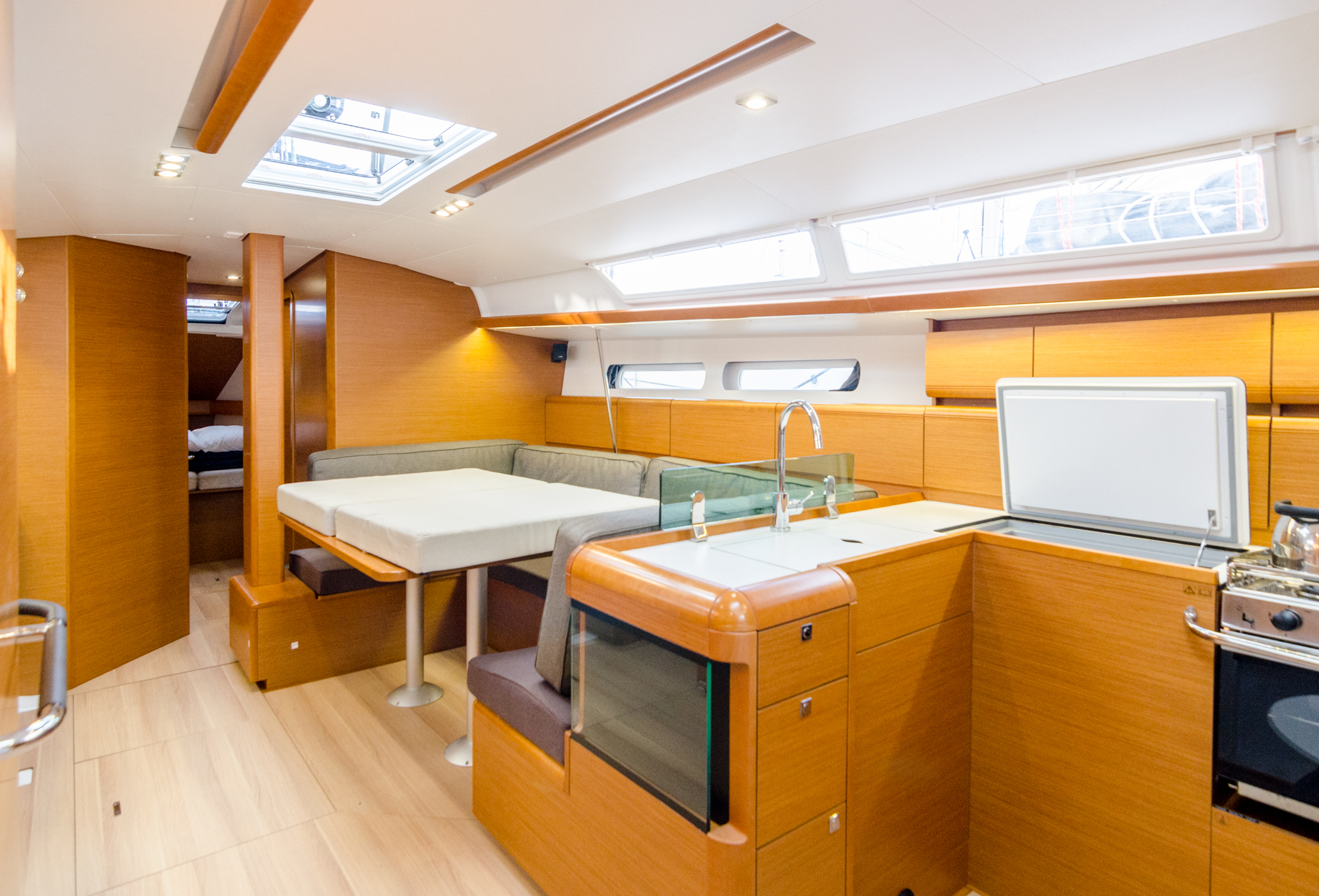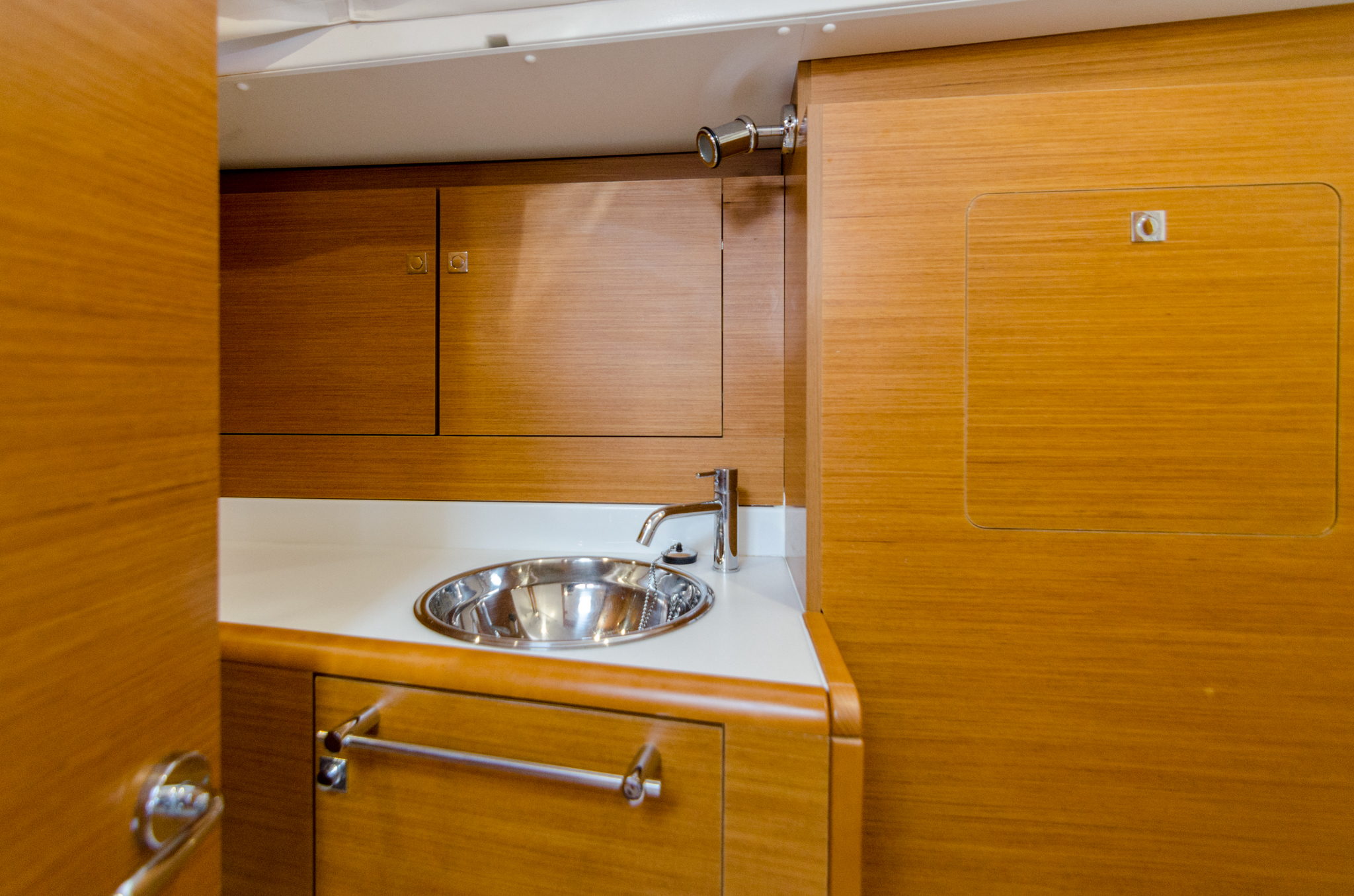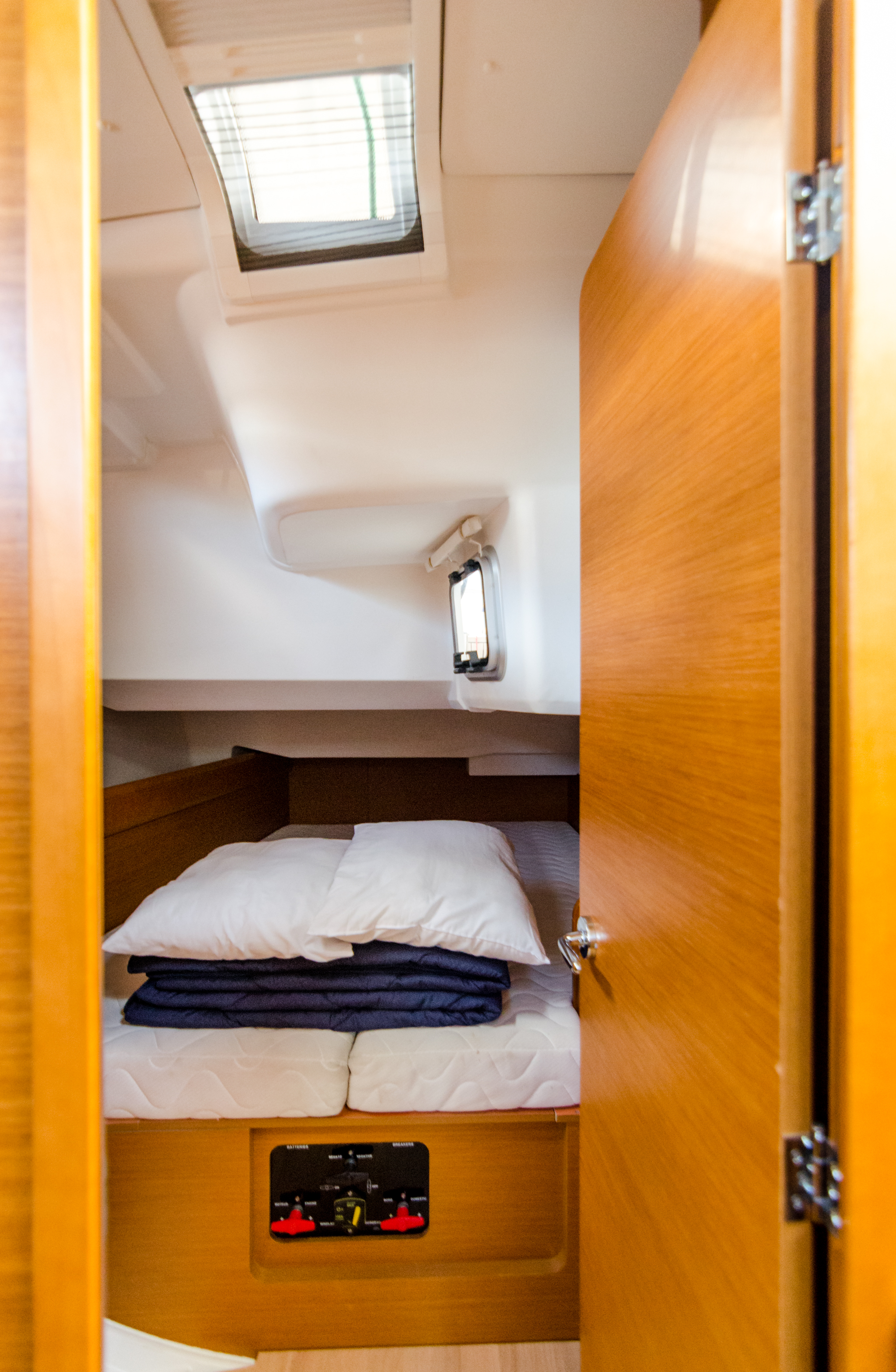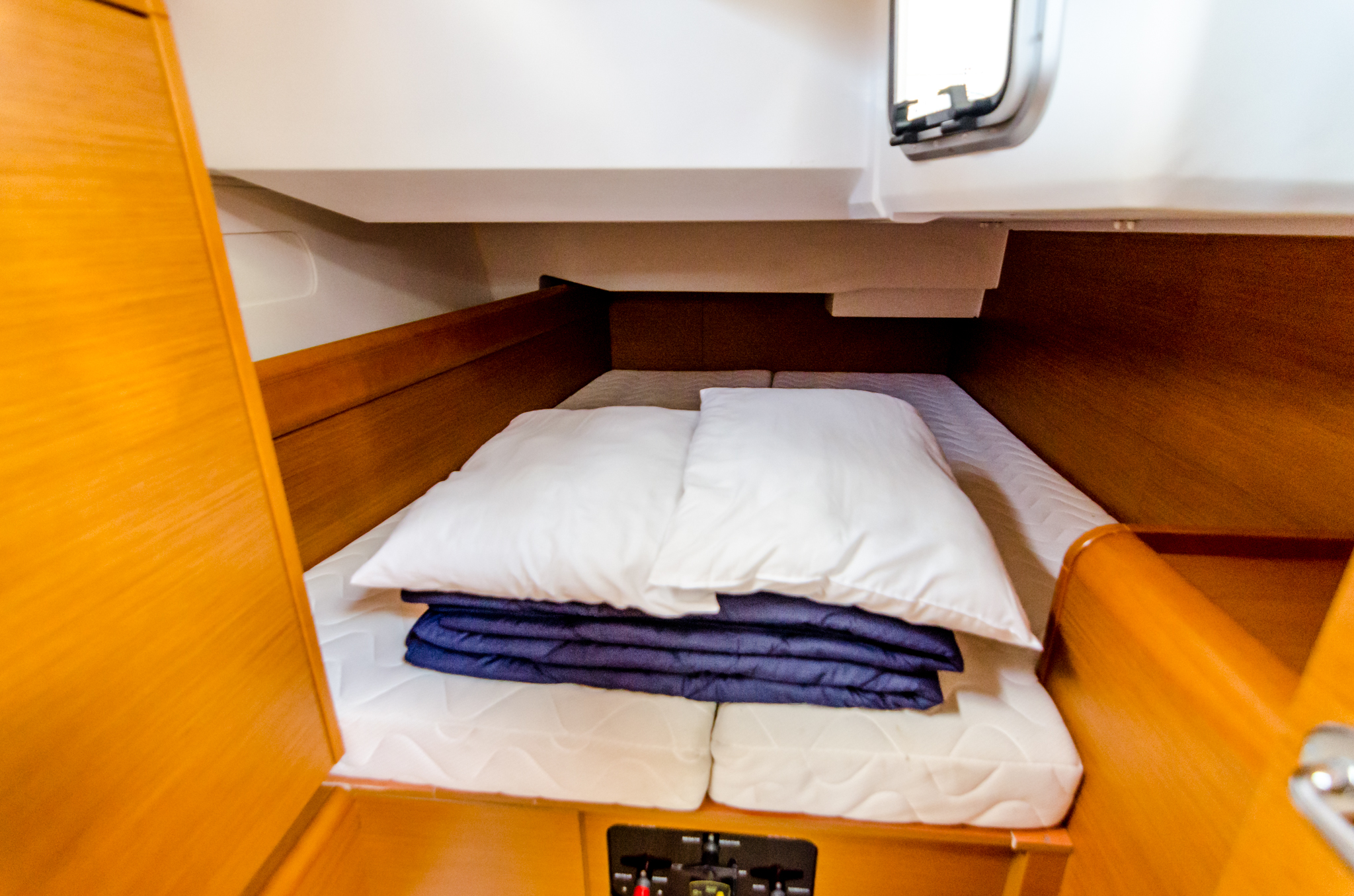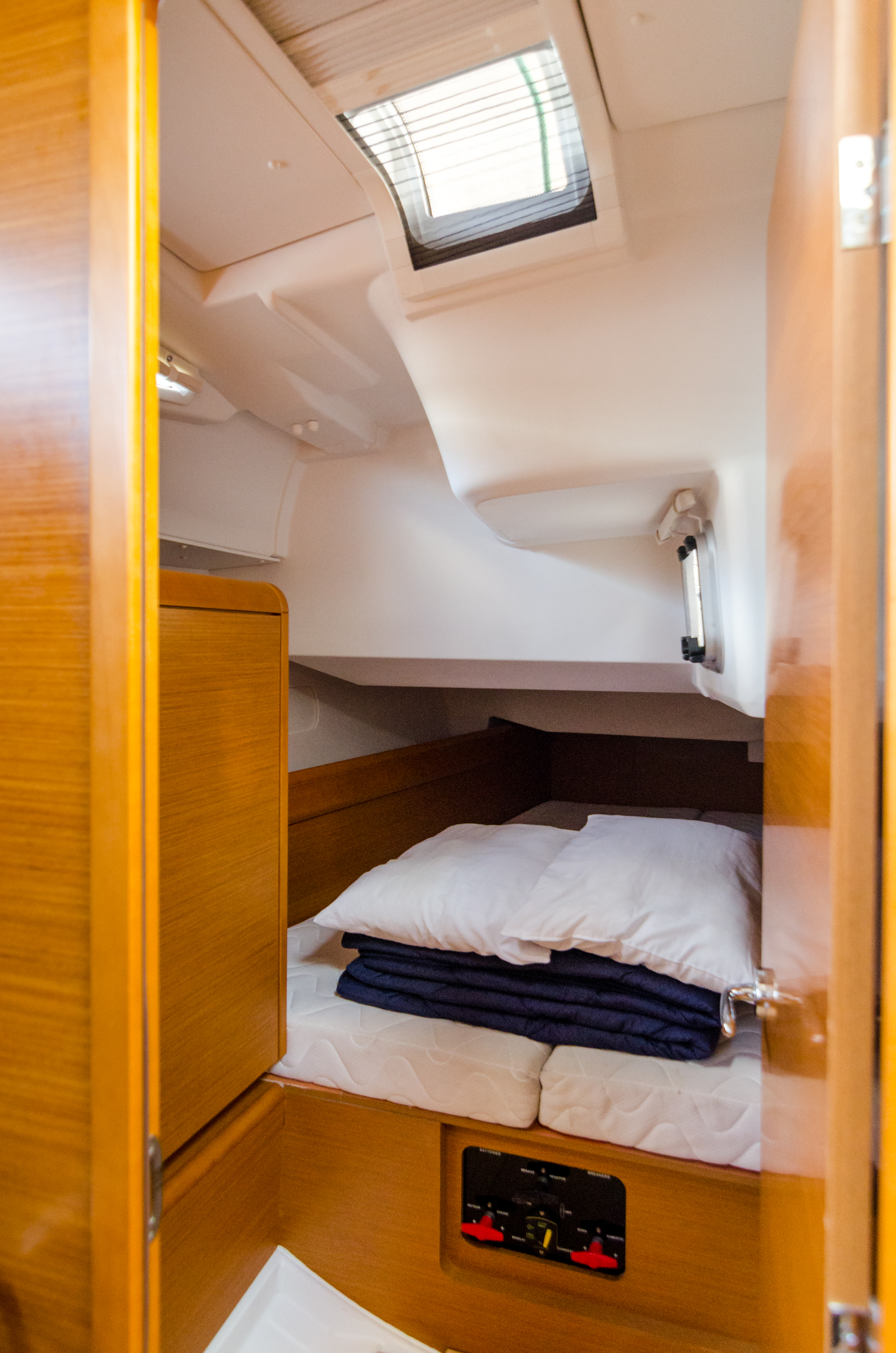 Air fans, Solar panel, Cockpit speakers, Outboard, Wind Instruments, Roll genoa, USB/AUX connection, Bimini, Cockpit table, Dinghy, External shower, Galley equipment, Gangway, Oven, Refrigerator, Sprayhood, Warm water, Radio/MP3 player, Speakers on deck, USB connection, Anchor winch, Autopilot, Bow thruster, Charts, Depth sounder, Electric windlass, EPIRB, GPS Chart plotter, Life raft, Safety equipment, VHF, Full batten main sail
