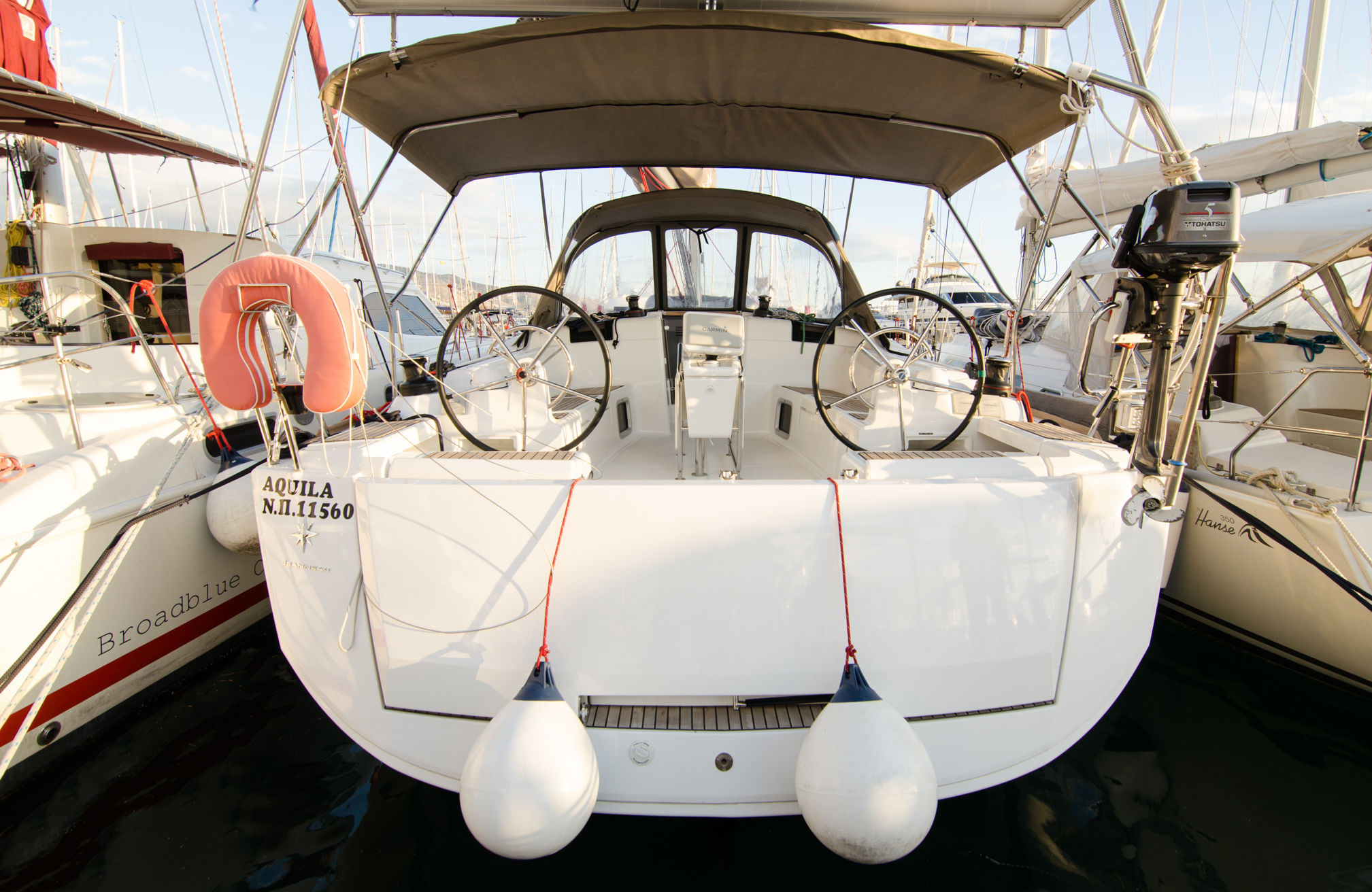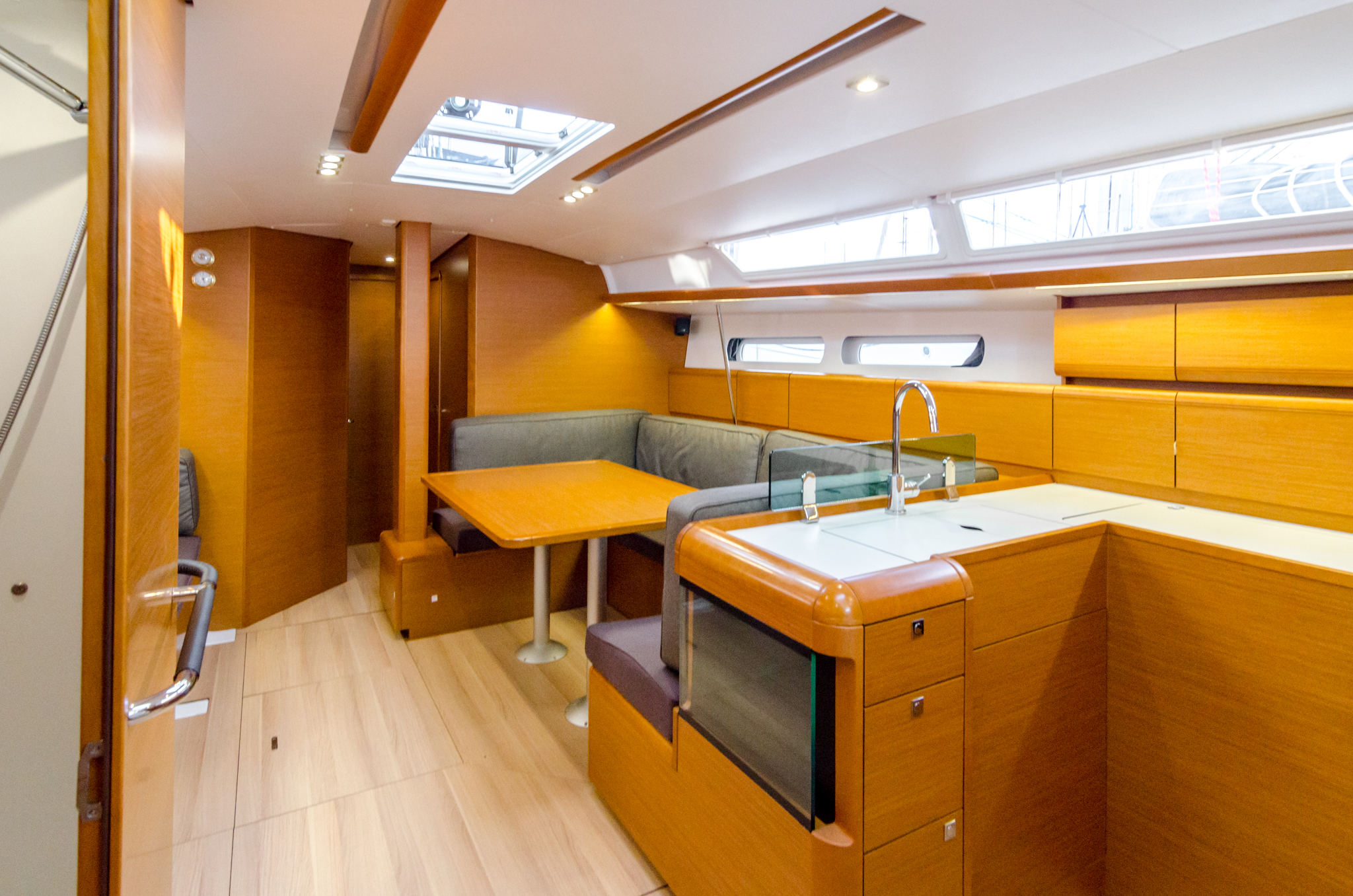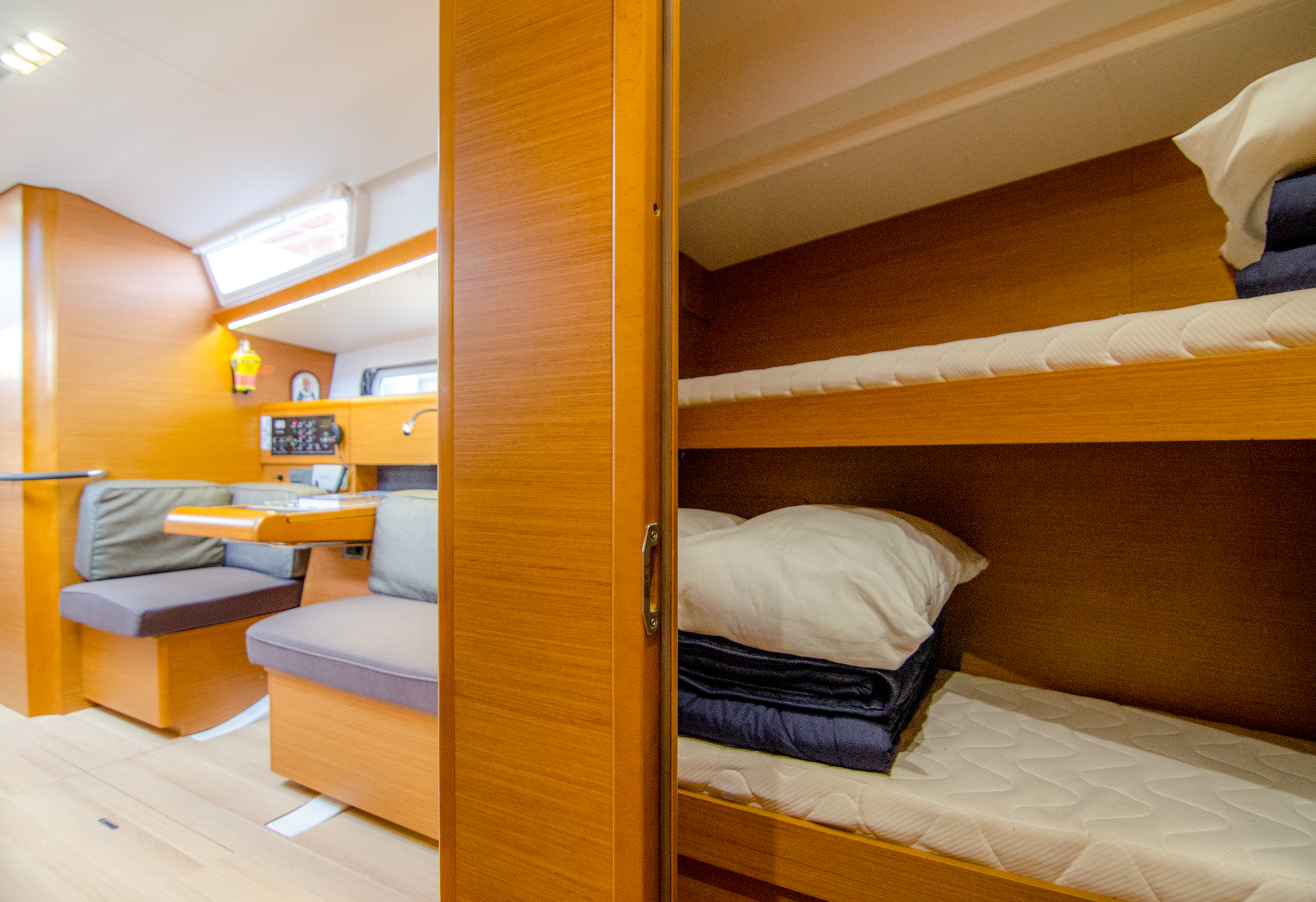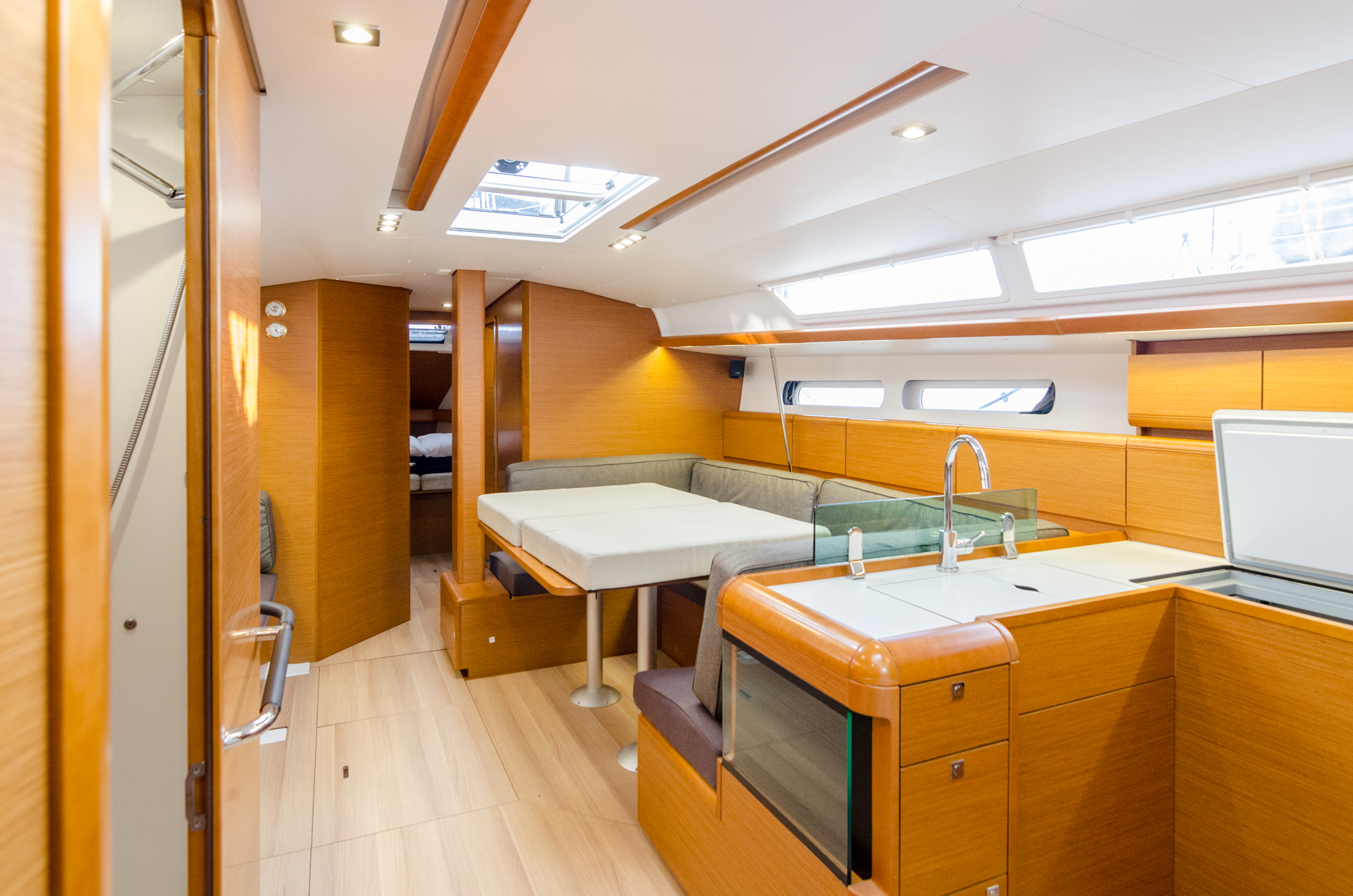 Air fans, Solar panel, Cockpit speakers, Outboard, Wind Instruments, Roll genoa, USB/AUX connection, Bimini, Cockpit table, Dinghy, External shower, Galley equipment, Gangway, Oven, Refrigerator, Sprayhood, Warm water, Radio/MP3 player, Speakers on deck, USB connection, Anchor winch, Autopilot, Bow thruster, Charts, Depth sounder, Electric windlass, EPIRB, GPS Chart plotter, Life raft, Safety equipment, VHF, Full batten main sail