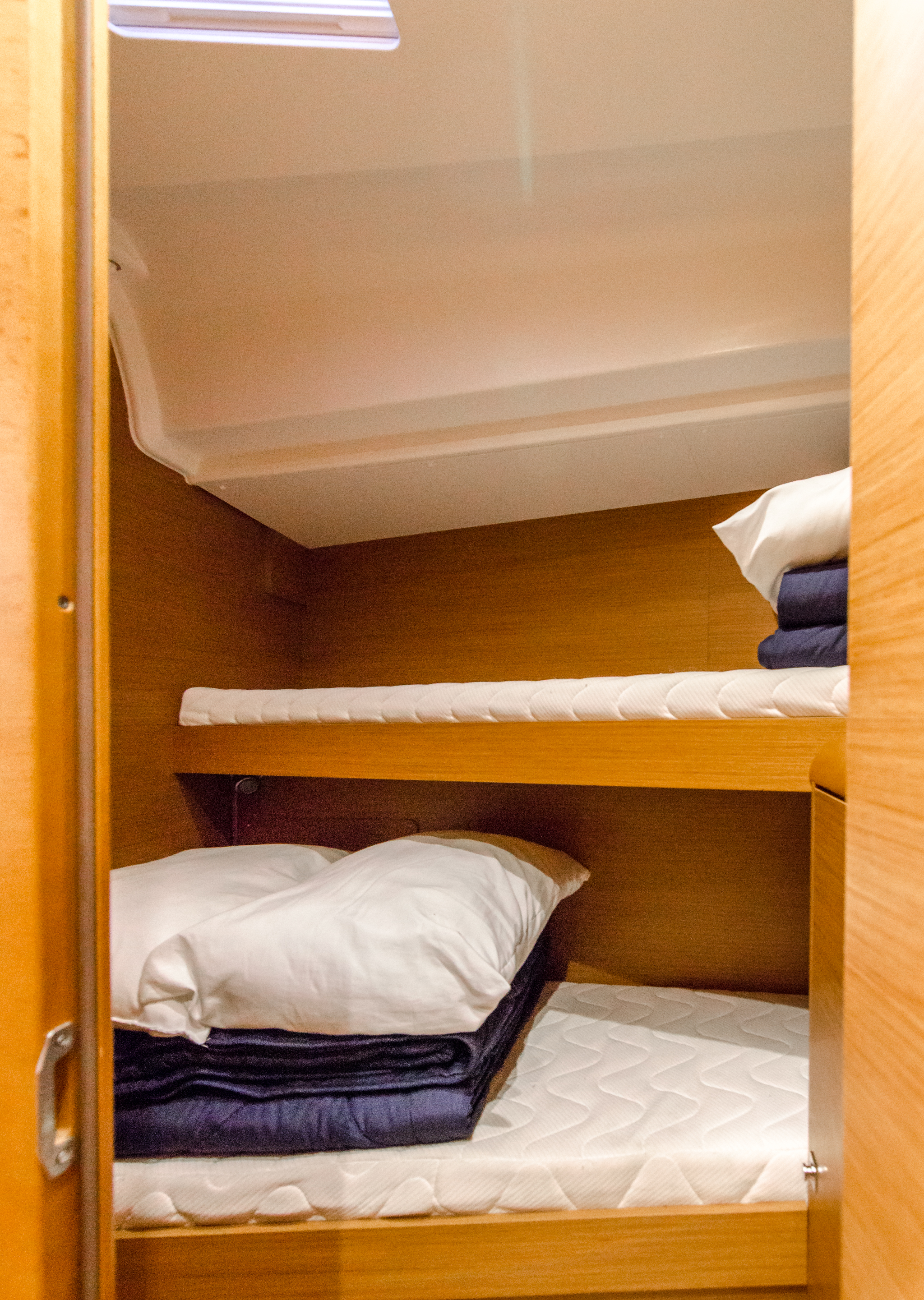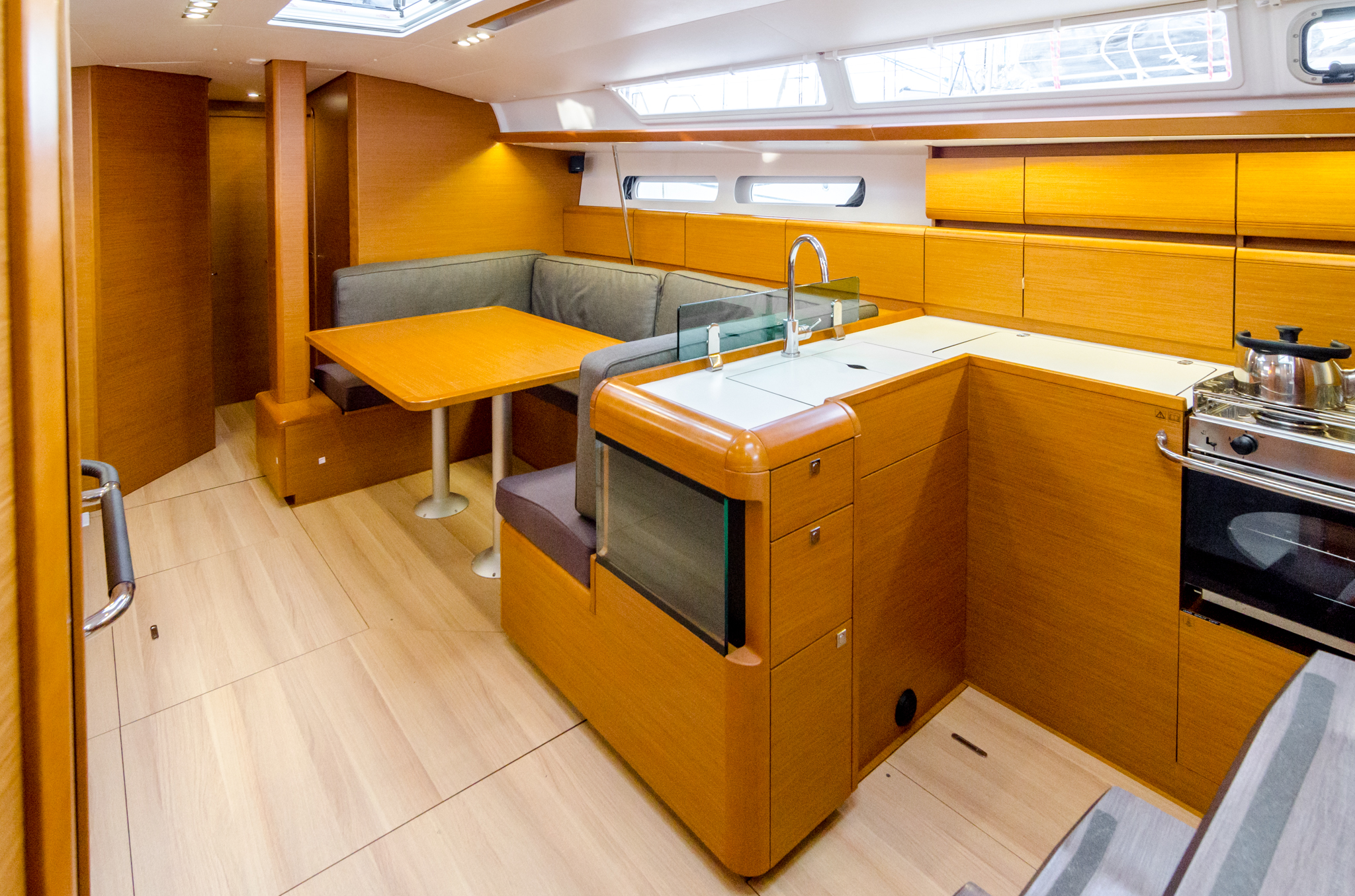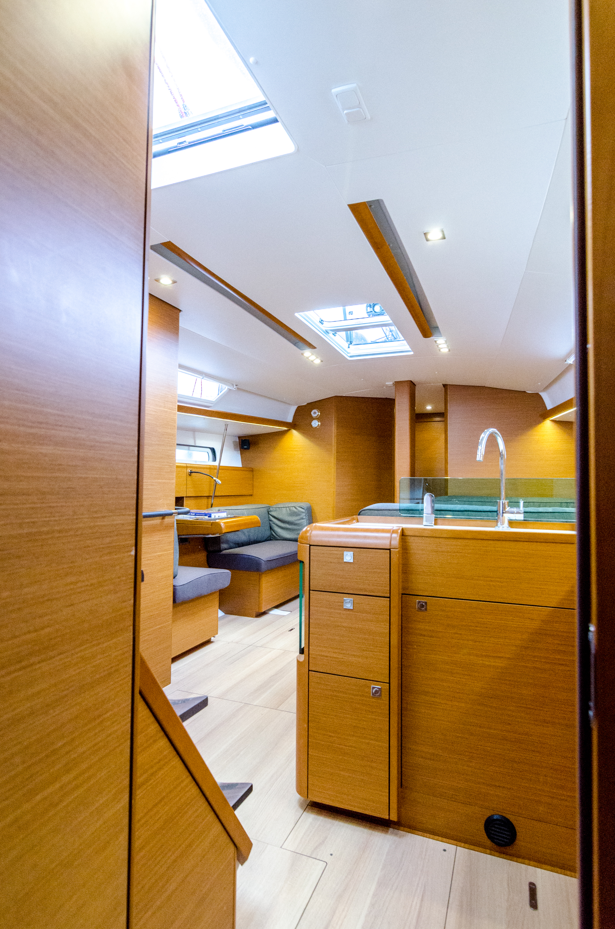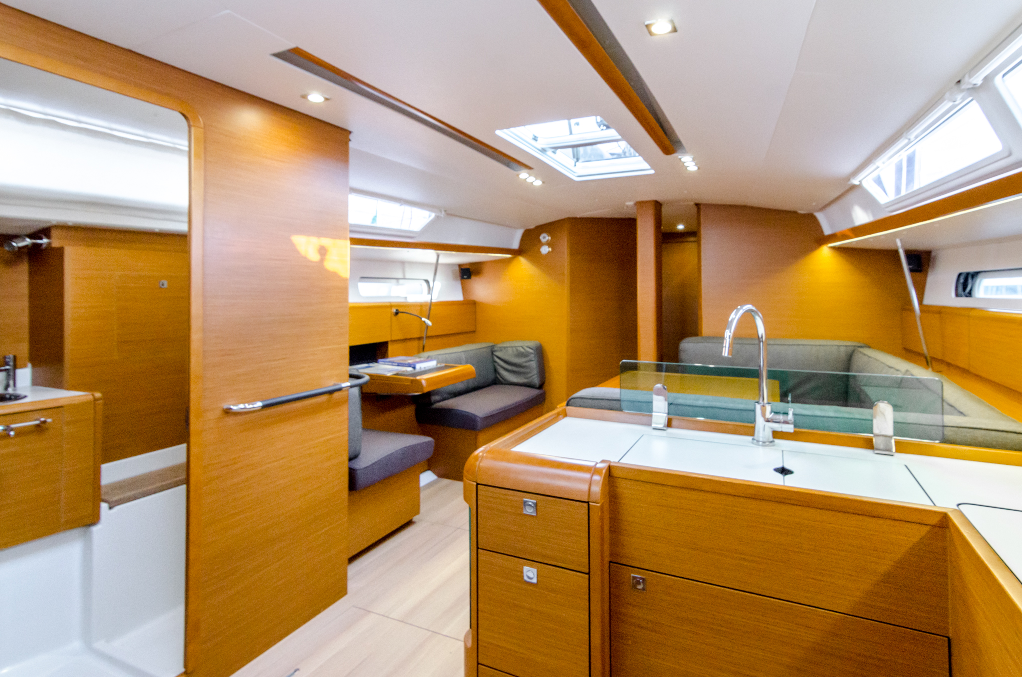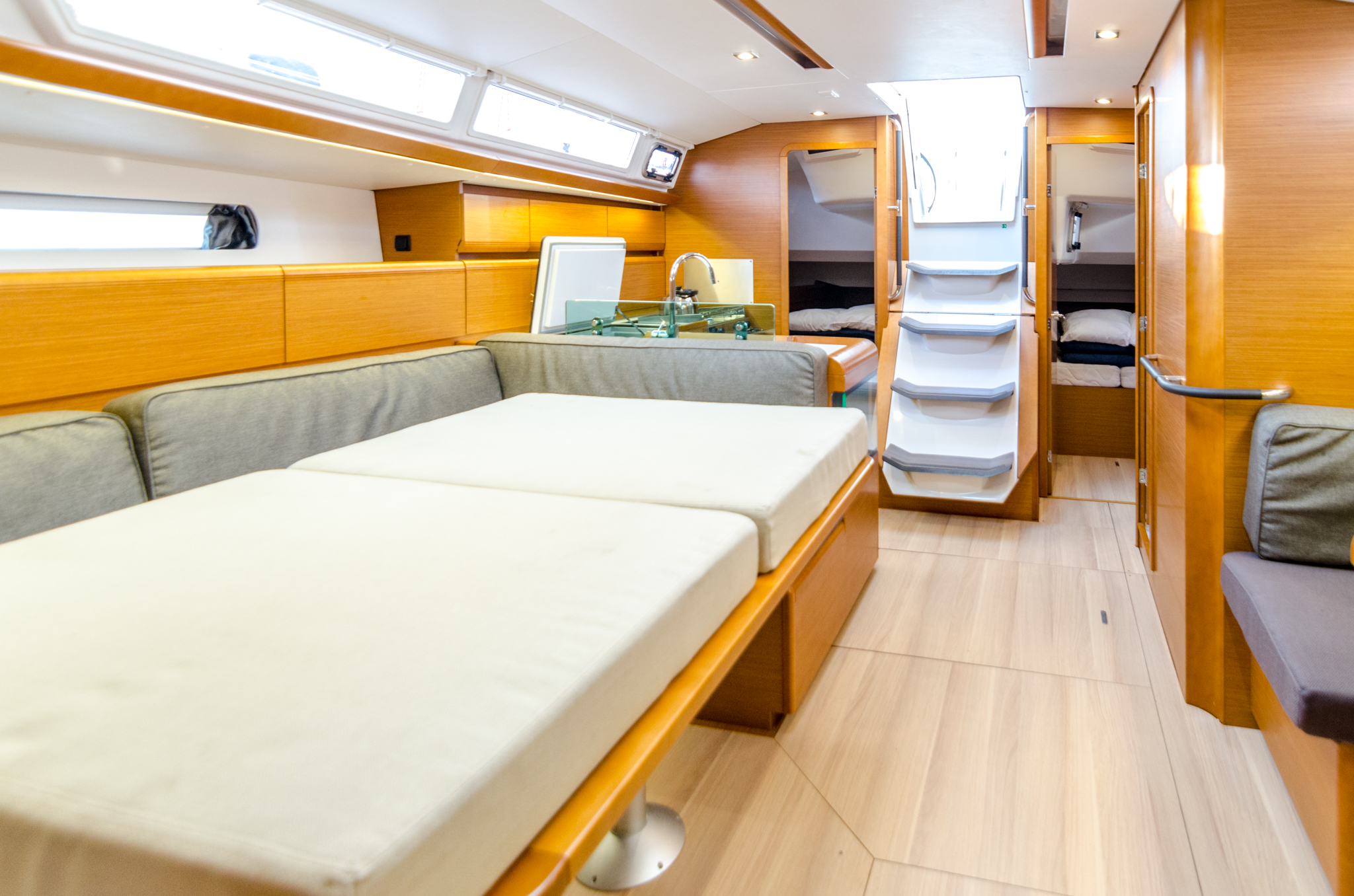 Air fans, Solar panel, Cockpit speakers, Outboard, Wind Instruments, Roll genoa, USB/AUX connection, Bimini, Cockpit table, Dinghy, External shower, Galley equipment, Gangway, Oven, Refrigerator, Sprayhood, Warm water, Radio/MP3 player, Speakers on deck, USB connection, Anchor winch, Autopilot, Bow thruster, Charts, Depth sounder, Electric windlass, EPIRB, GPS Chart plotter, Life raft, Safety equipment, VHF, Full batten main sail