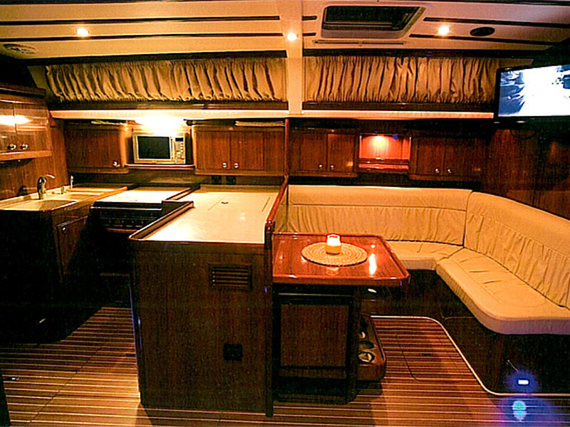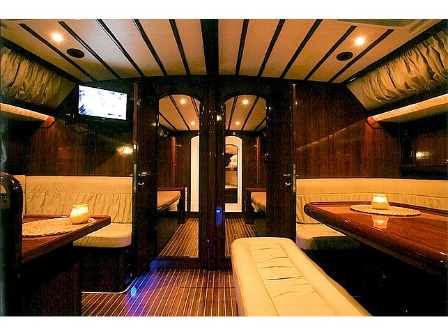 Steering Compass, Windex, 12v & 230V outlet, Air condition, Autopilot, Bimini, Bowthruster, Cockpit shower, Cockpit speakers, Cockpit table, Dinghy, Electric anchor winch, Electric winch, EPIRB, Fire extinguishers, Galley full equipped , Generator, GPS plotter, Harnesses, Hot water, Hydraulic gangway, Ice maker, iPod, Life raft, Life wests, Log, Depth, Sound, Navigation equipment, Radio-CD player, Refrigerator, Roll genoa, Roll main sail, Sea charts, Set of flares, Shore power 230V, Sprayhood, Steering wheel, Swimming ladder, Teak deck, TV-DVD, VHF, Wind instruments