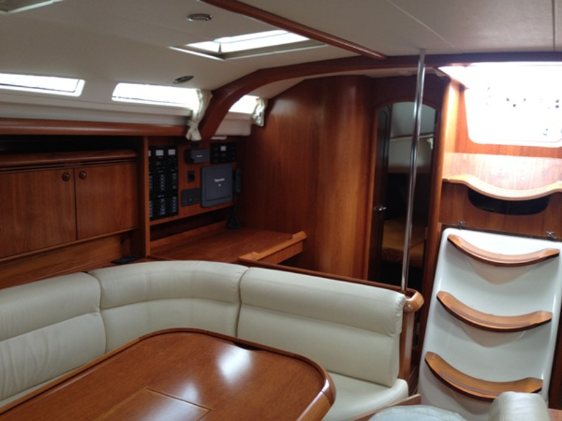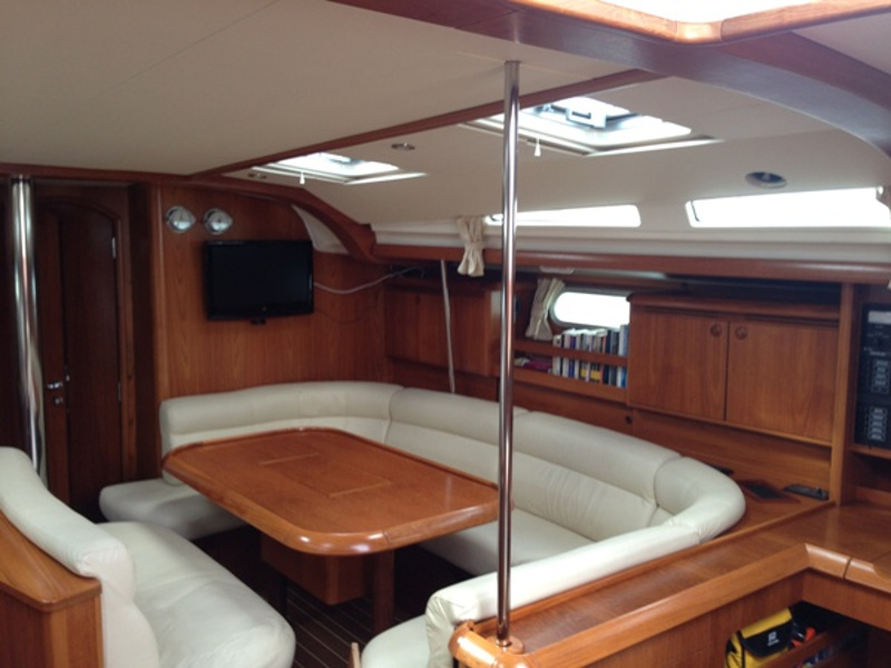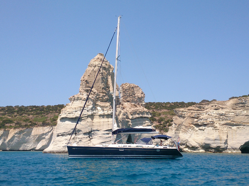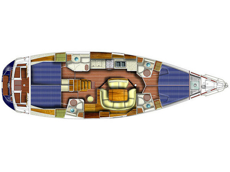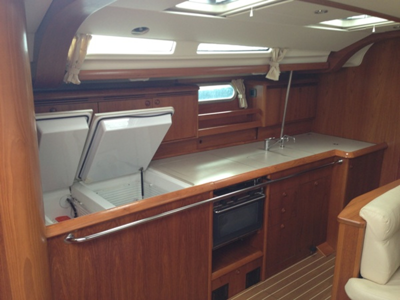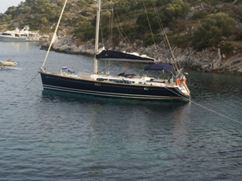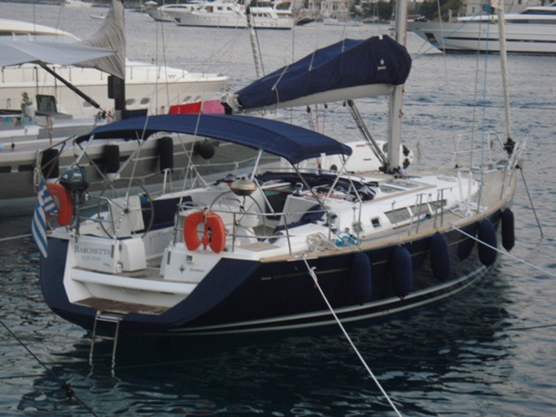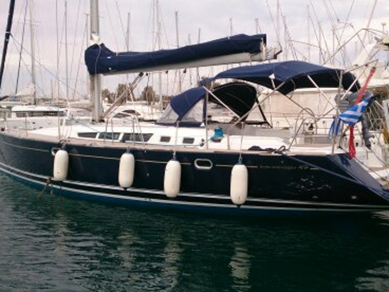 Bimini Top, Full battened main sail, Furling Genoa, Lazy Jacks & Lazy Bag, Spray hood, Black balls, Emergency lights, Emergency tiller, EPIRB, Fire extinguishers, First aid kit, Flares, Fog horn, Horseshoes buoys with floating light, Life Jackets, Life raft, Safety belts, Torch light, Wire cutter, Anchor winch, Bathing ladder, Boat hook, Deck shower, Dinghy with Outboard motor, Main & spare anchor with chain, Water hose, Winch handles, Wooden gangway, Autopilot, Barometer, Binoculars, Echo sounder, GPS Plotter, Hand bearing compass, Nautical charts, Speed Log, VHF, Water Pilots, Wind instruments, Battery charger, Cockpit cushions, Radio-CD player/USB/Bluetooth, Snorkeling equipment, TV Color/DVD, Cooking utensils, Crotery & Cuterly, Electric fridge, Gas burner stove, Watermaker, Bed sheets, Blankets, Pillow cases, Pillows, Towels, Inverter, Air Conditioning, Generator, Instruments