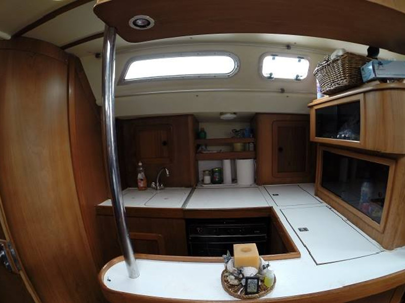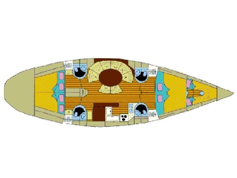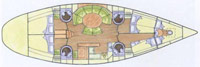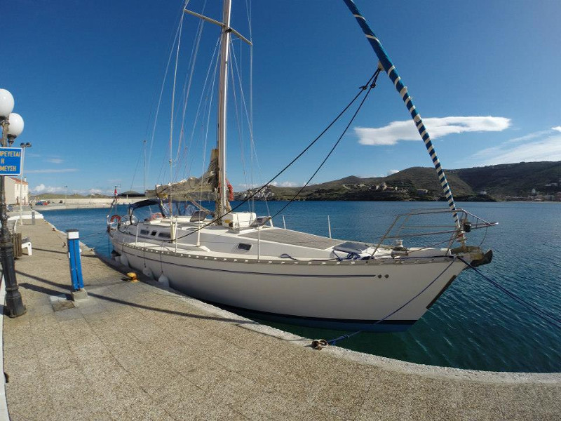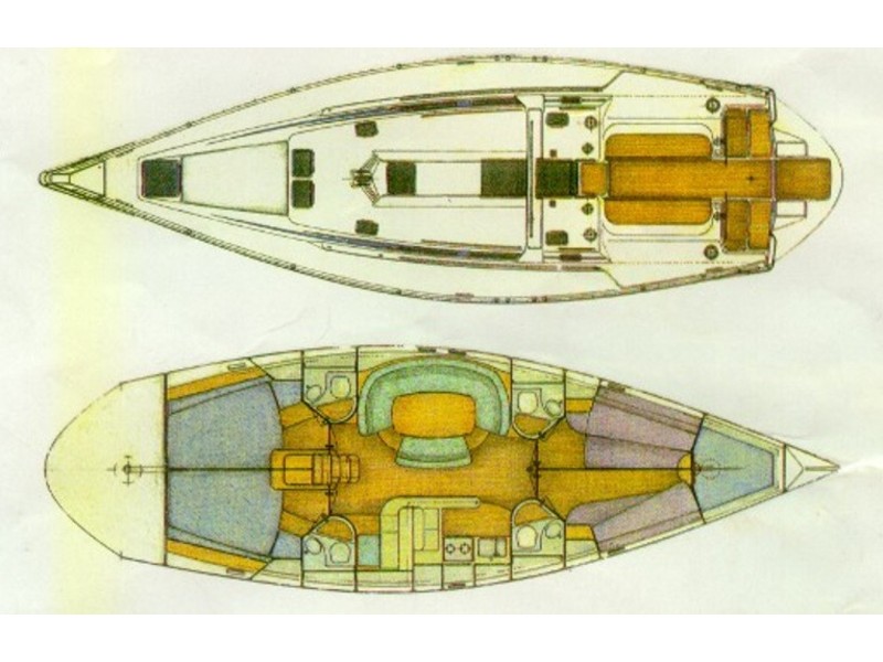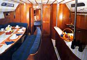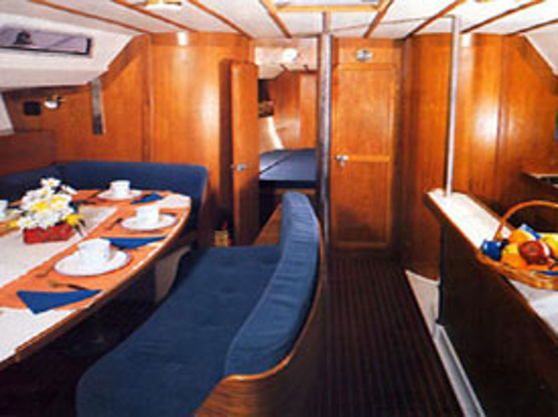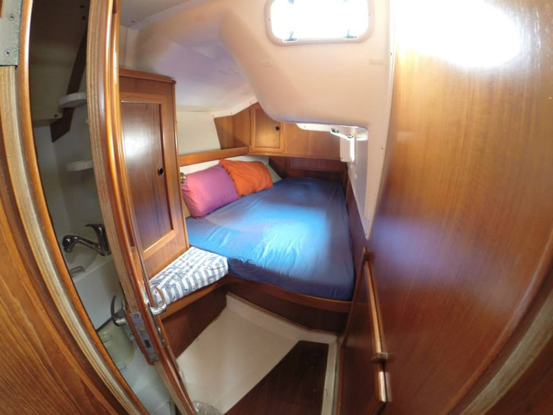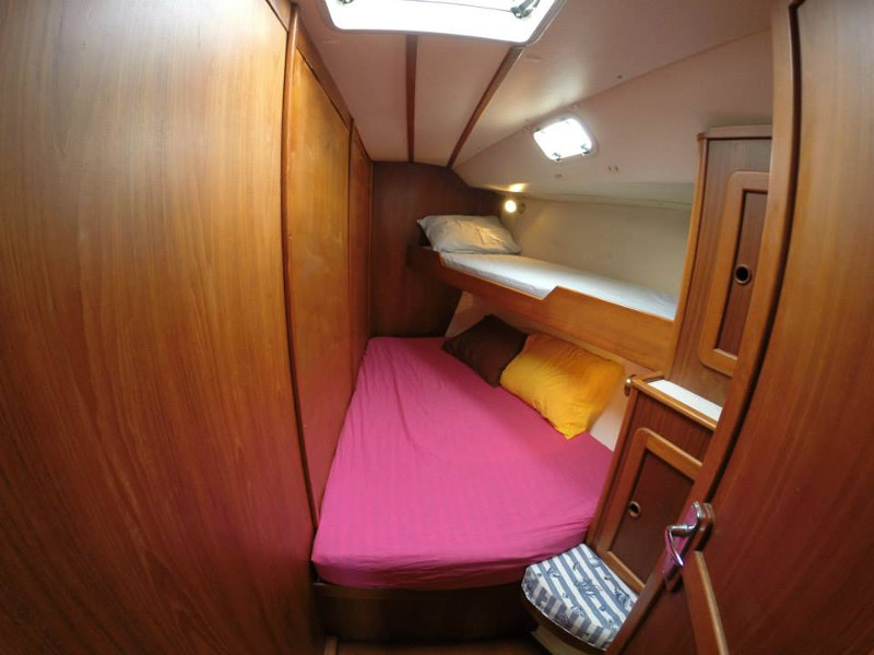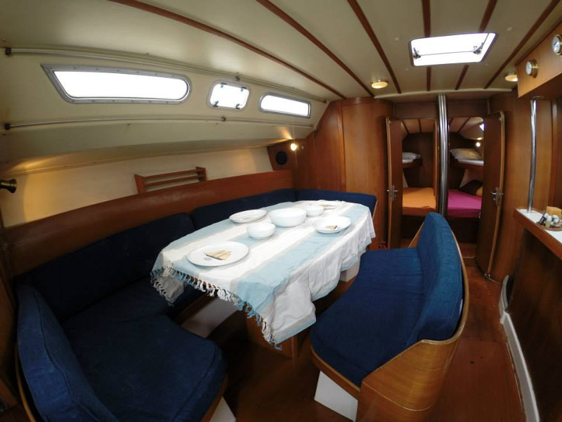 GPS Plotter, Autopilot, VHF, Echo sounder, Water heater, Electric fridge, Fire extinguisher, Dinghy, Solar panel, 2 steering wheels, Inverter, Radio-CD player, TV/DVD