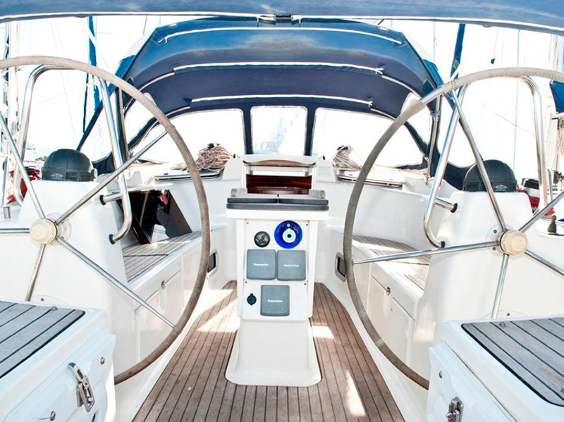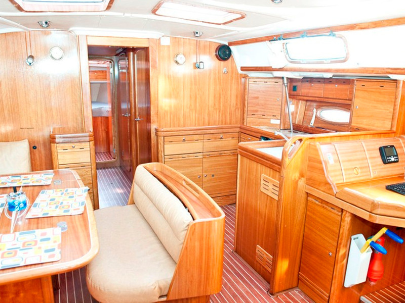 12v & 230V outlet, Refrigerator, Bowthruster, Dinghy, Electric anchor winch, Roll genoa, Roll main sail, Windex, Bimini, Cockpit shower, Cockpit table, Sprayhood, Steering wheel, Swimming ladder, Autopilot, EPIRB, GPS plotter, Hot water, Log, Depth, Sound, Radio-CD player, Shore power 230V, Steering Compass, TV-DVD, VHF, Wind instruments, Fire extinguishers, Galley full equipped , Harnesses, Life raft, Life wests, Navigation equipment, Sea charts, Set of flares