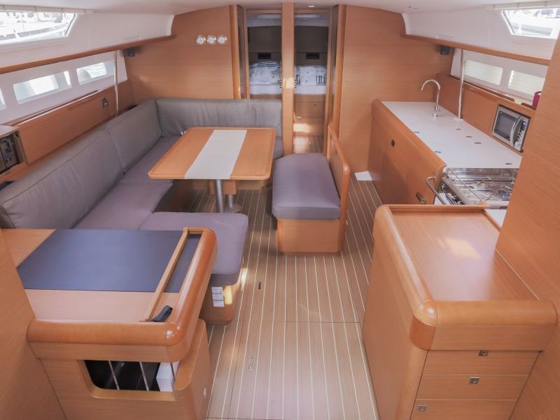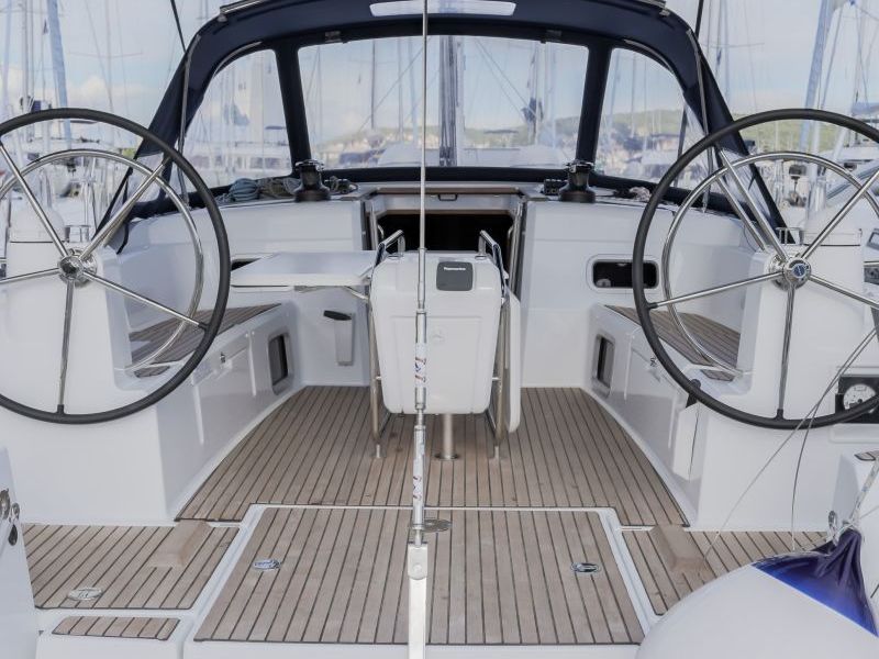 Winches, Bimini top, Rail openings both sides, Sprayhood, Spring cleats, Teak deck, Teak on cockpit floor, Furling Genoa, Furling main sail, Gennaker - optional, Autopilot, Mag. Compass, Tridata, Air conditioning, Anchor with 80m chain, Bow thruster, Cockpit speakers, Dinghy, DSC station, Electrical Windlass, Fusion DVD/CD/MP3 player, Heating system, Outboard engine, Power generator 220V, Speakers in saloon, Steering , VHF station, Bathing ladders, Bathing platform, Cockpit table, Kitchen utensils, 3 burner stove & oven, Ice box, Refrigerator, Fresh water tanks & capacity, Water heater, 12/220V, 12V sockets, 220V sockets, Battery charger, LED Nav & interior lights, Shore supply, Holding tank, Engine, Service