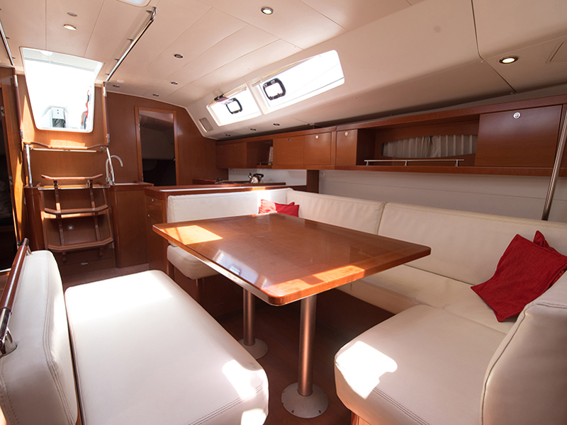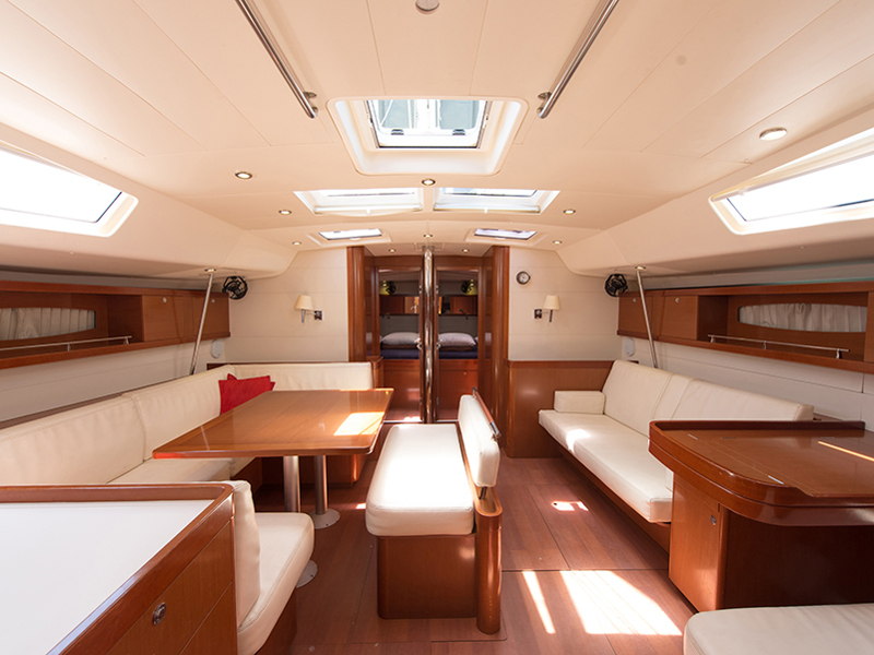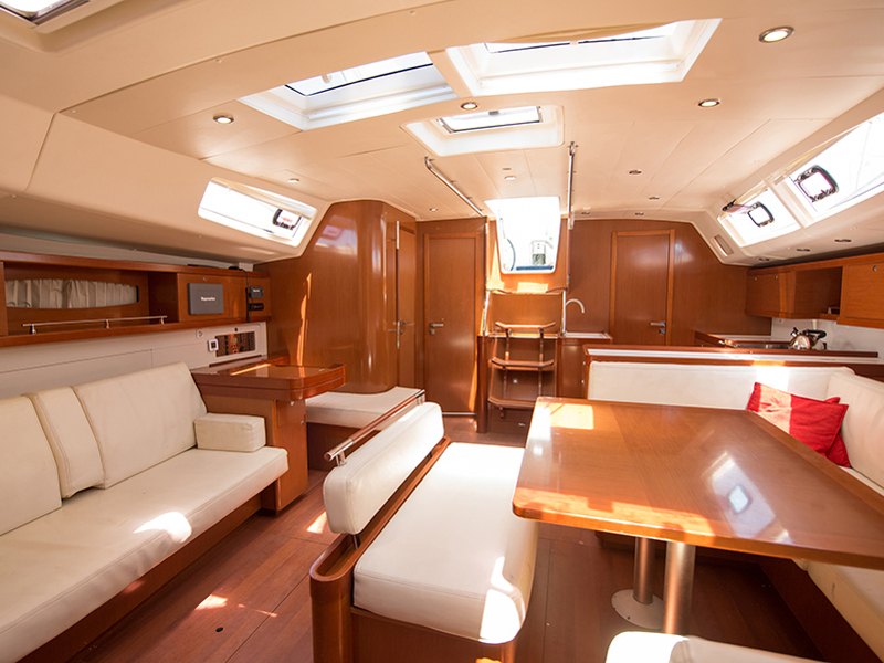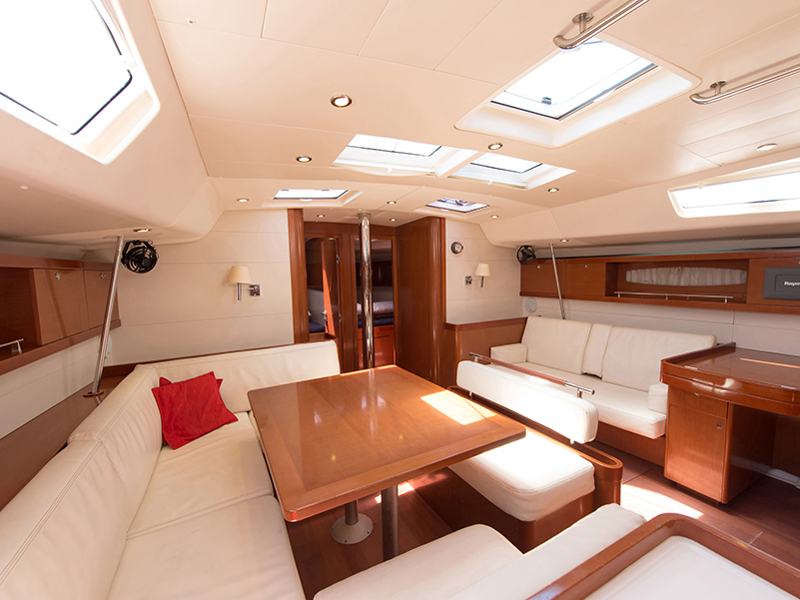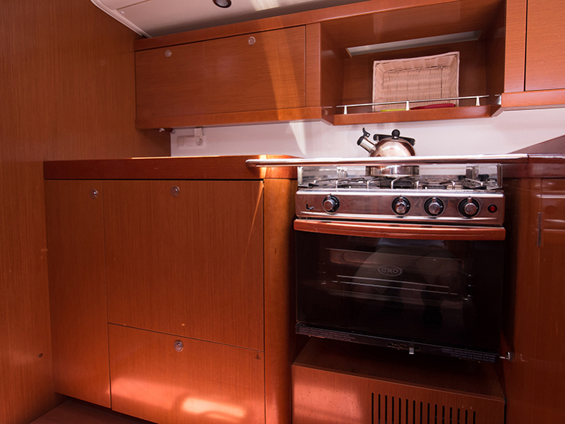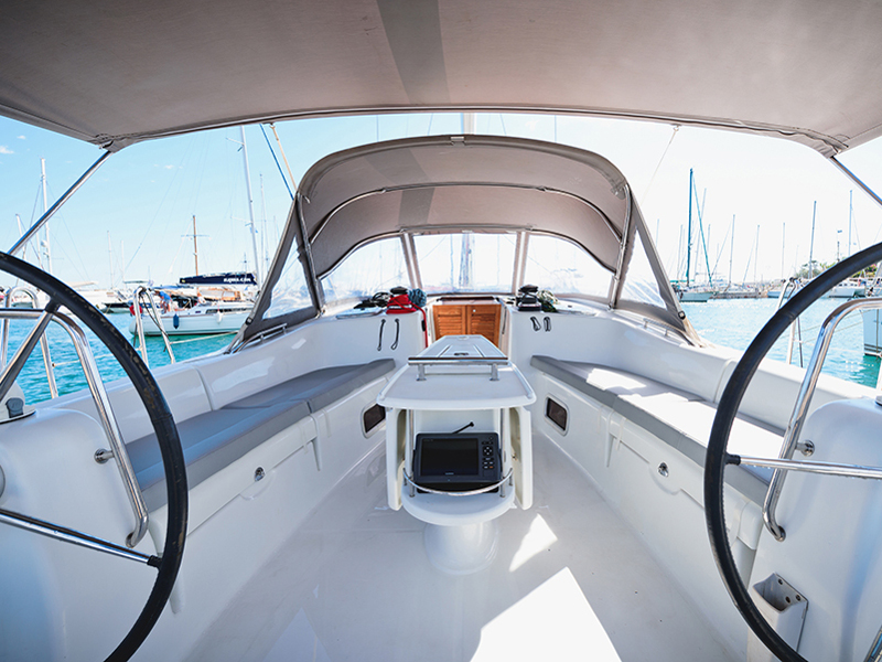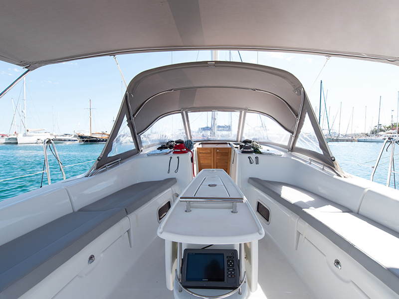 Autopilot , Anemometer , Bimini , Bow thruster , CD Player , Cockpit table , Coloured chart plotter , Deck hand shower , Dvd player , Electric windlass , Freezer , Fridge , Guides & Maps , Hot water , MP3 , Safety Equipments , Solar panel, Sounder , Speakers in cockpit , Speedometer , Spray hood , Stove , Swimming ladder , VHF DSC , 1 GPS inside and 1 outside, Hydrolic gangway, Teak deck in cockpit