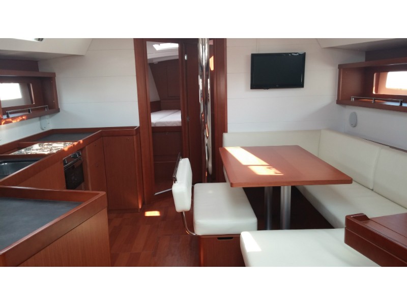 Bimini, Genoa Furling, Deck Shower, Bathing Platform, Cockpit Speakers, Cooker with oven, Refrigerator, Electric Windlass, Hot Water System, Depth Gauge, Log/Speedo, Dinghy Inflatable, Sinks, Outboard engine, GPS Chartplotter, VHF, Autopilot, Main Deck Compass, Bow Thruster, Chartplotter, TV, Electric Winches, Full batten Main Sail, Sprayhood