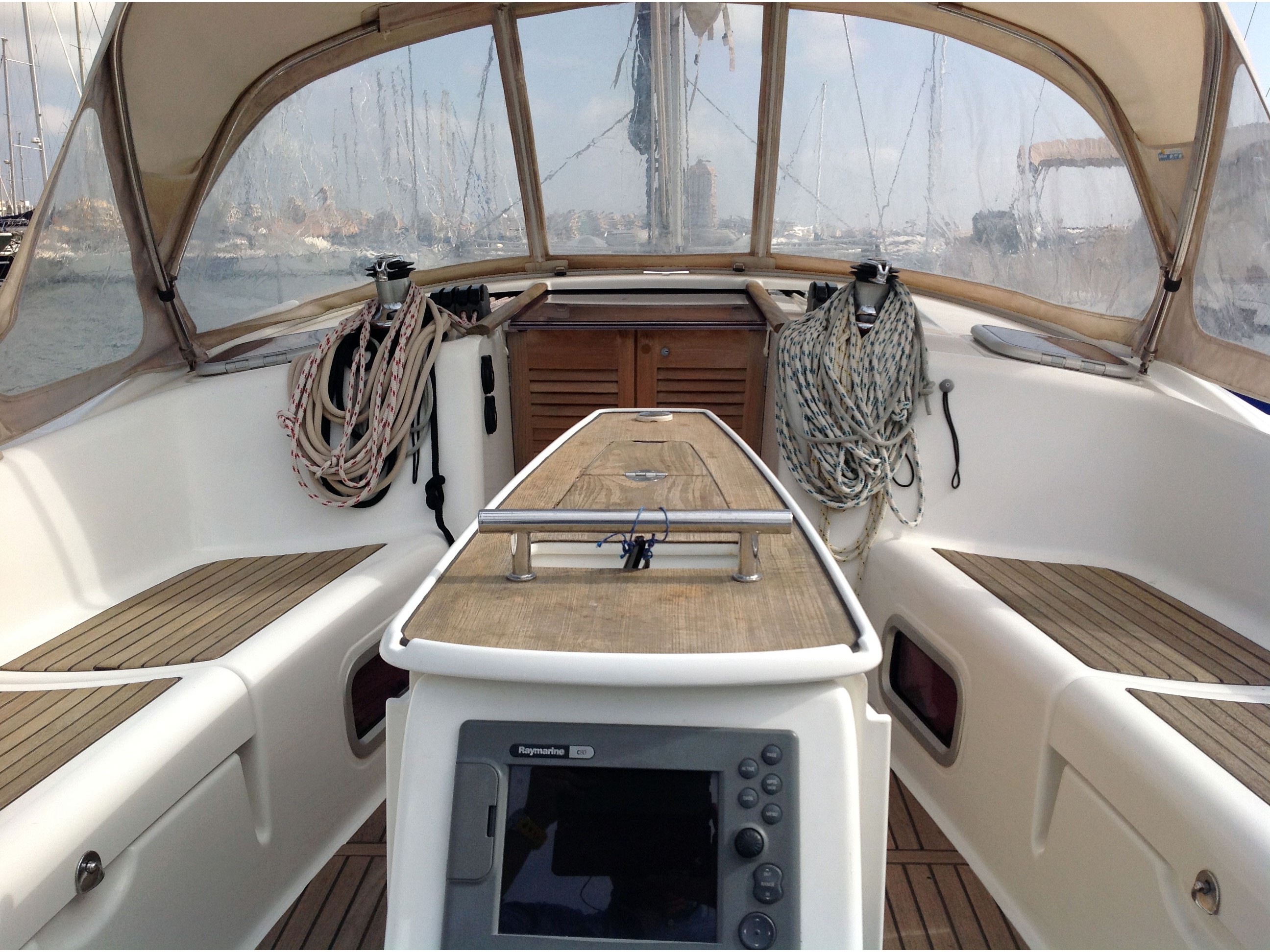 220V plugs, crockery, convertible dinette, gas oven , holding tank, hot water, 220V inverter, pillows and blankets, refrigerator, stereo CD, binocular, clock and barometer, compass, fire extinguisher, first aid kit, lifebuoy, life jackets, life raft, light buoy, navigational charts , pilot book , radar reflector, rockets, chartwork set, smoke buoy, table deviations, bimini, cockpit table, deck shower, dinghy, electric windlass, electric winches, external speakers, gangway, lazy bag, lazy jack, sprayhood, electric torch, engine oil , engine parts, boat instructions, safety belts, snorkeling equipment, tool kit, portable VHF, outboard engine, Stand Up Paddle, towels and sheets, autopilot, eco, log, plotter GPS, windex, VHF, furling genoa, transfer service, parking inside the Marina, full batten main sail, weather station, railing net