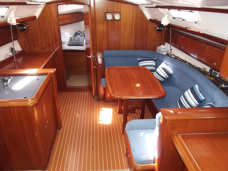 12V socket, 220V socket, Batery charger+wire, Bimini, Bow thruster, Bed linen, Cockpit table, Deck shower, Dinghy, Electric bilge pump, Electric flush toilet, Electric fridge, Electric windlass, Furling genoa, Furling mainsail, Galley equipment, Gangway, Gas bottle, Gas stove, Holding tank, Hot water, Oven, Radio-CD Player, Solar panel, Sprayhood, Swimming ladder, Tools, Towels, TV, Autopilot, Barometer, Colour chart plotter, Echo sounder, Hand bearing compass, Sea charts, Wind speed instrument, Windex, Bosun´s chair, Box of flares, Emergency tiller, EPIRB, First aid kit, Floating light, Horse shoe buoy, Inflatable life raft, Life jackets, Navigation lights, Safety harnesses, Sea anchor, Torch, VHF, Heating - Webasto