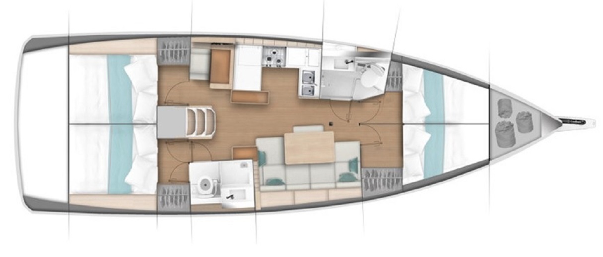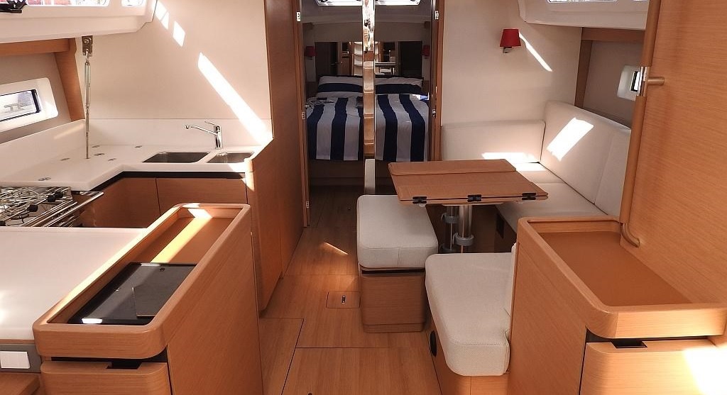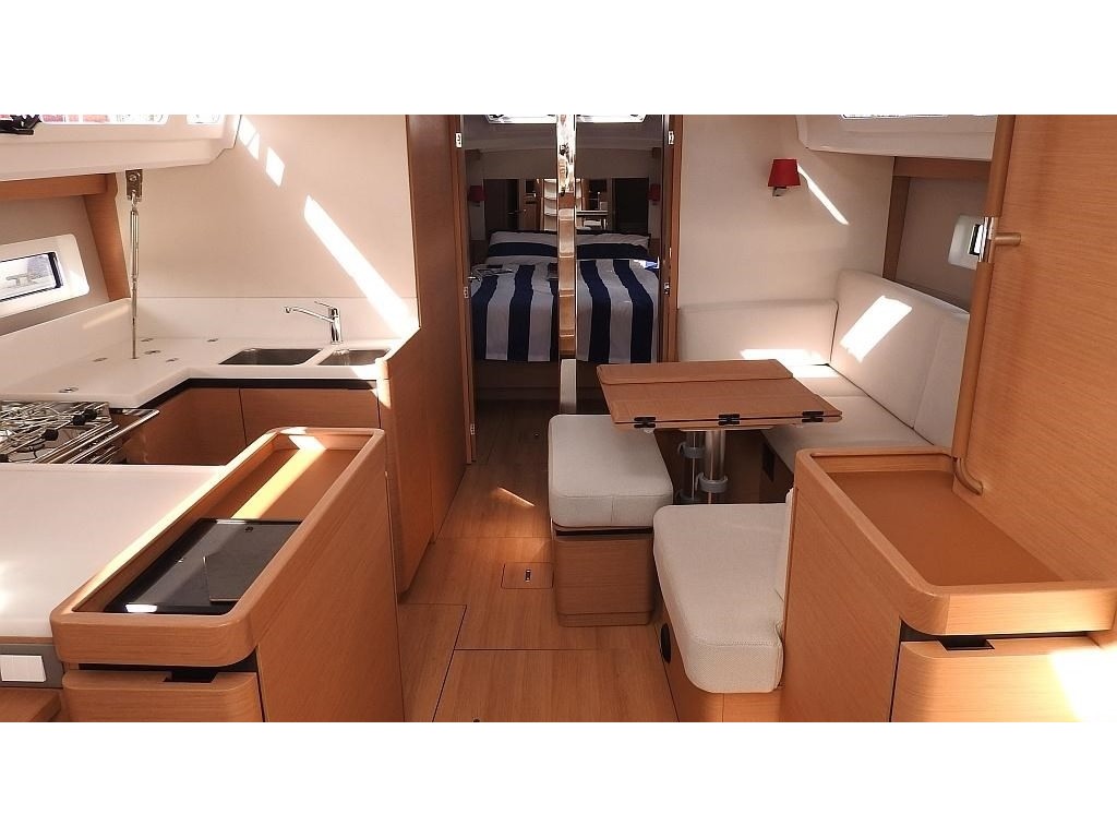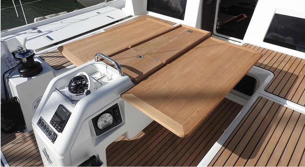 Autopilot, CD player, Depth sounder, Electric fridge, Gas oven, GPS ploter, Log & speed, Radio, solar panel, VHF, Wind instruments, furling main sail, Roller furling Genoa, USB sockets in all cabins, Bimini Top, Cockpit shower, Cockpit speakers, Cockpit table, Dinghy, Sprayhood, Steering wheel, Windlass, Bow thruster