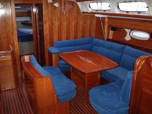 Navigation kit, Refrigerator, Calibrated anchor chain, Furling mainsail, Cool Box, Genoa Furling, Steering Wheel (SW)/Tiller (T), VHF, Main anchor, Speedometer, Depth Gauge, Anchor, Shore Power Connection, Log/Speedo, Nautical charts and nautical guide, Cockpit Speakers, Lifebuoy, Bimini, Pillows and blankets, Sinks, Electric Windlass, Engine Battery (in Ah.), Distress flares, Life jacket, First aid kit, Wheel Steering, Cutlery, Dinghy Inflatable, Auxiliary anchor, Hot Water System, Echo Sounder, Cooker with oven, Safety harness, Spray hood, Bow Thruster, Main Deck Compass, Liferaft, Deck Shower, Radio Cass/Radio/CD Player with Speakers in Saloon & Cockpit, Autopilot, Service Battery (in Ah.), Fire extinguisher, GPS Chartplotter, Linen, Floating line, Anti rust spray, Barometer, Binoculars, Boat/Engine/Instruments Manuals, Boat hook, Clock, Dinghy oars, Divider & Parallel ruler, Electrical bilge pump, Engine & Gear oil, Engine spares, Flags C & N, Flippers and mask, Fog horn, Gas bottles, Heelmeter, Mooring lines 10/20/50 meters, Portable hand pump, Sail & Dinghy repair kit, Sea anchor, Spare batteries, Spare navigational bulb, Tool box, Torch, Wire cutter, Electric toilet, inverter, Solar Panel