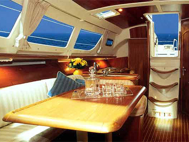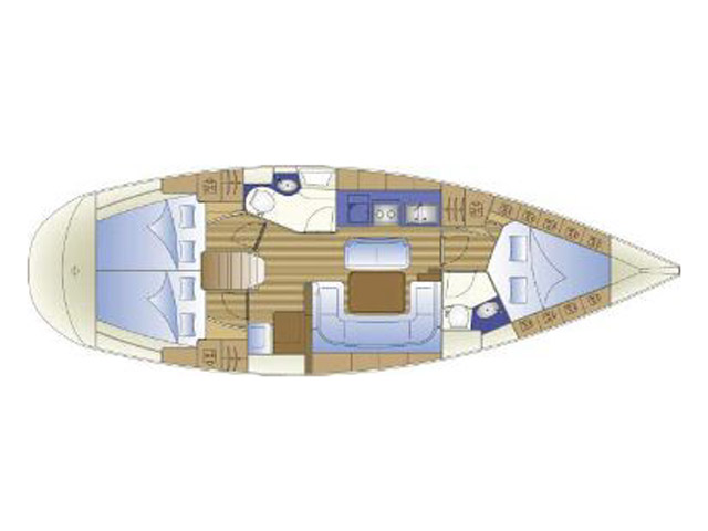 Cooker (num.), Main Deck Compass, Service Battery (in Ah.), Engine Battery (in Ah.), Refrigerator, Deck Shower, Sinks (num.), Electric Windlass, Sinks, Hot Water System, Cooker with oven, Dinghy Inflatable, Outboard engine, Cockpit Speakers, Radio/CD, Autopilot, Depth Gauge, GPS Chartplotter, Log/Speedo, VHF, Genoa Furling, Bimini, Sprayhood, Full batten Main Sail