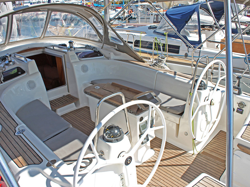 220V Battery charger, Apple iPAD, Auto helm autopilot, Auto helm depth system, Auto helm speed system, Auto helm wind speed/direction, Automatic life vests, Bed linen, Bimini, CD player with USB, MP3 and Bluetooth, Cockpit cushions, Cockpit LED lights, Cockpit speakers, Cockpit table, Deck shower, Dinghy, Electric anchor windlass, Full kitchen inventory, Furling Genoa, Furling mainsail, GPS plotter, Hot water, Inverter 12V-220V, Refrigerator, Self tail winches, Solar panels, Sprayhood, Steering wheel, Transom swimming ladder, VHF Radio, Windex, Bow thruster