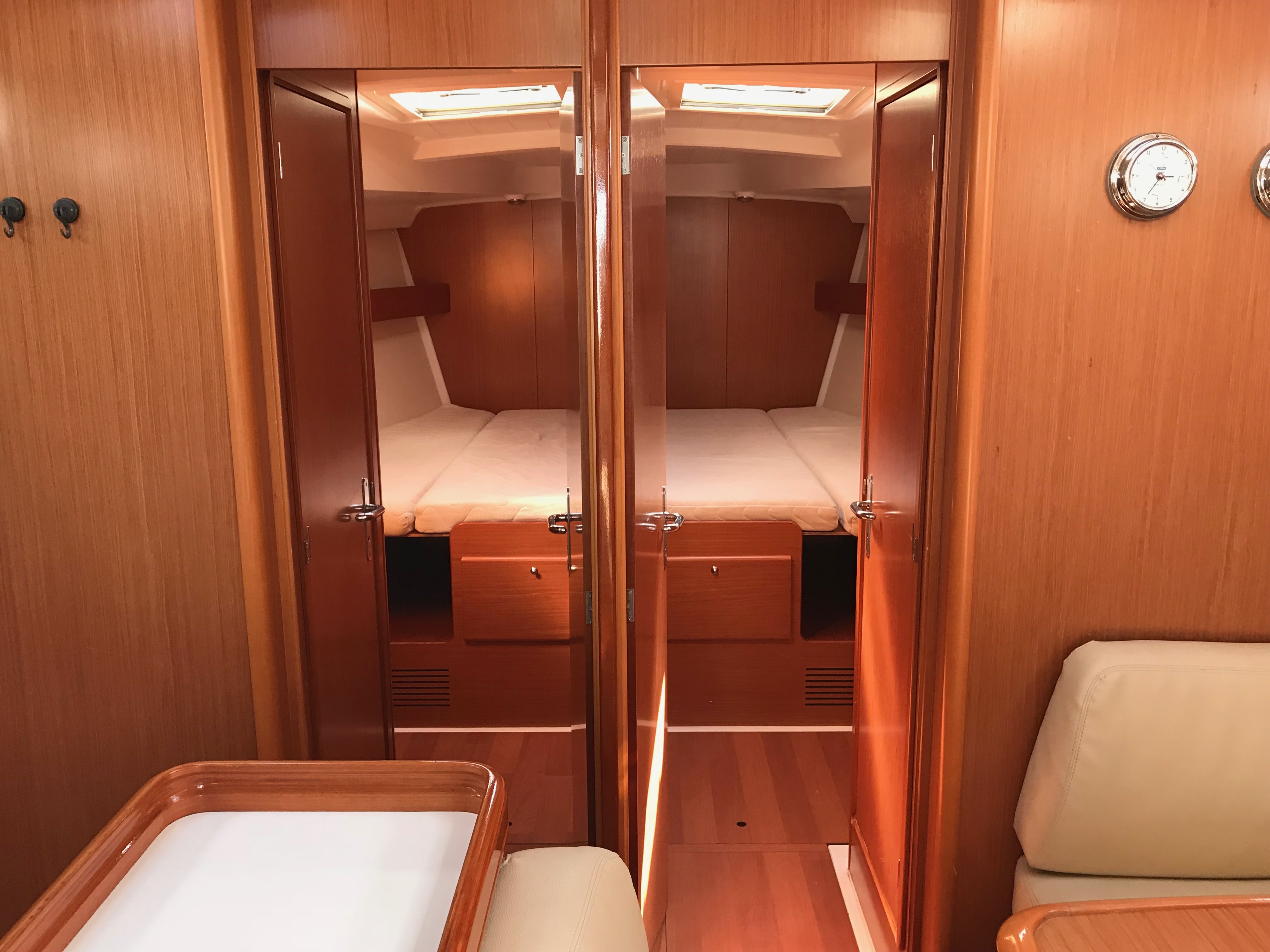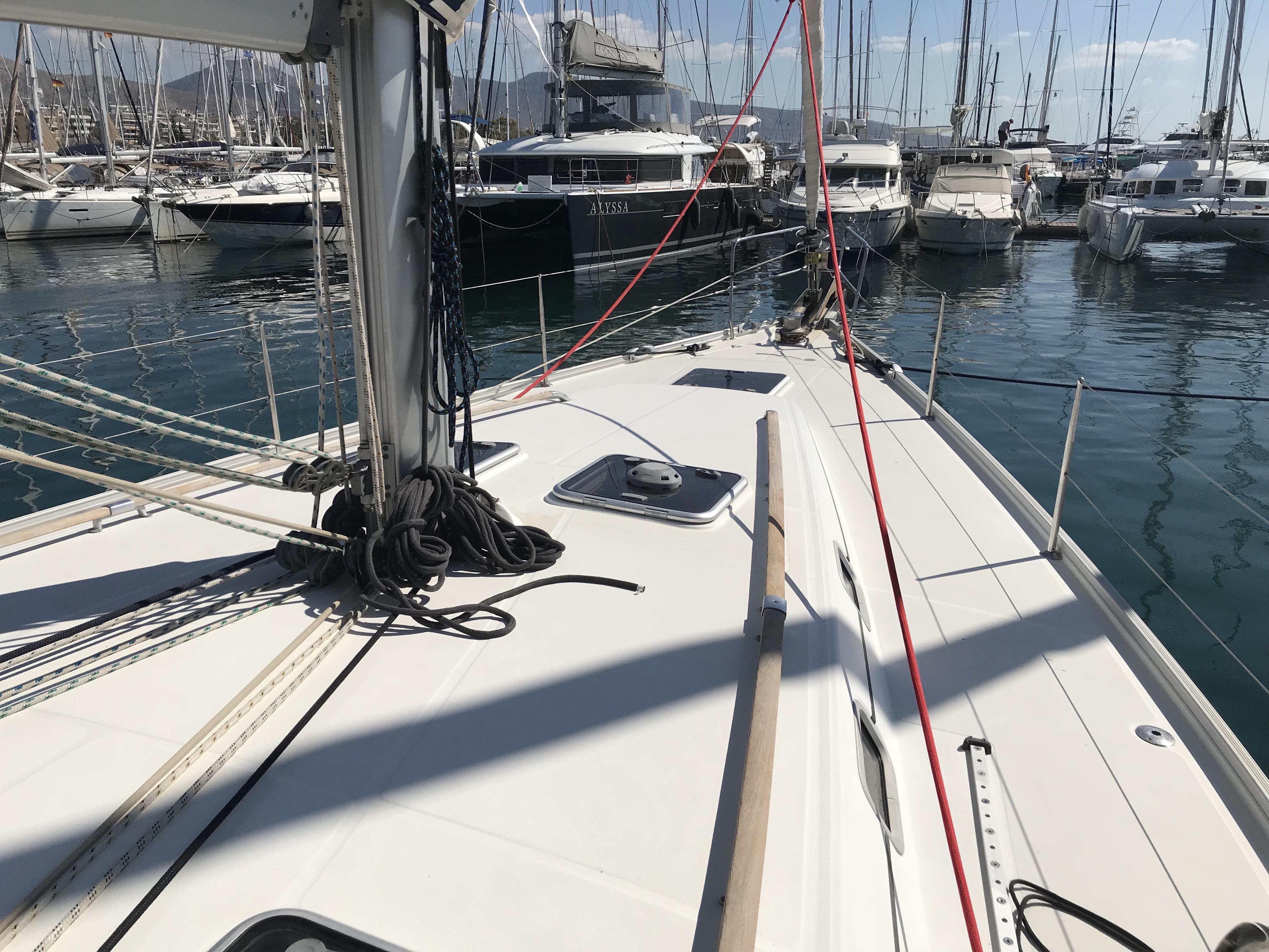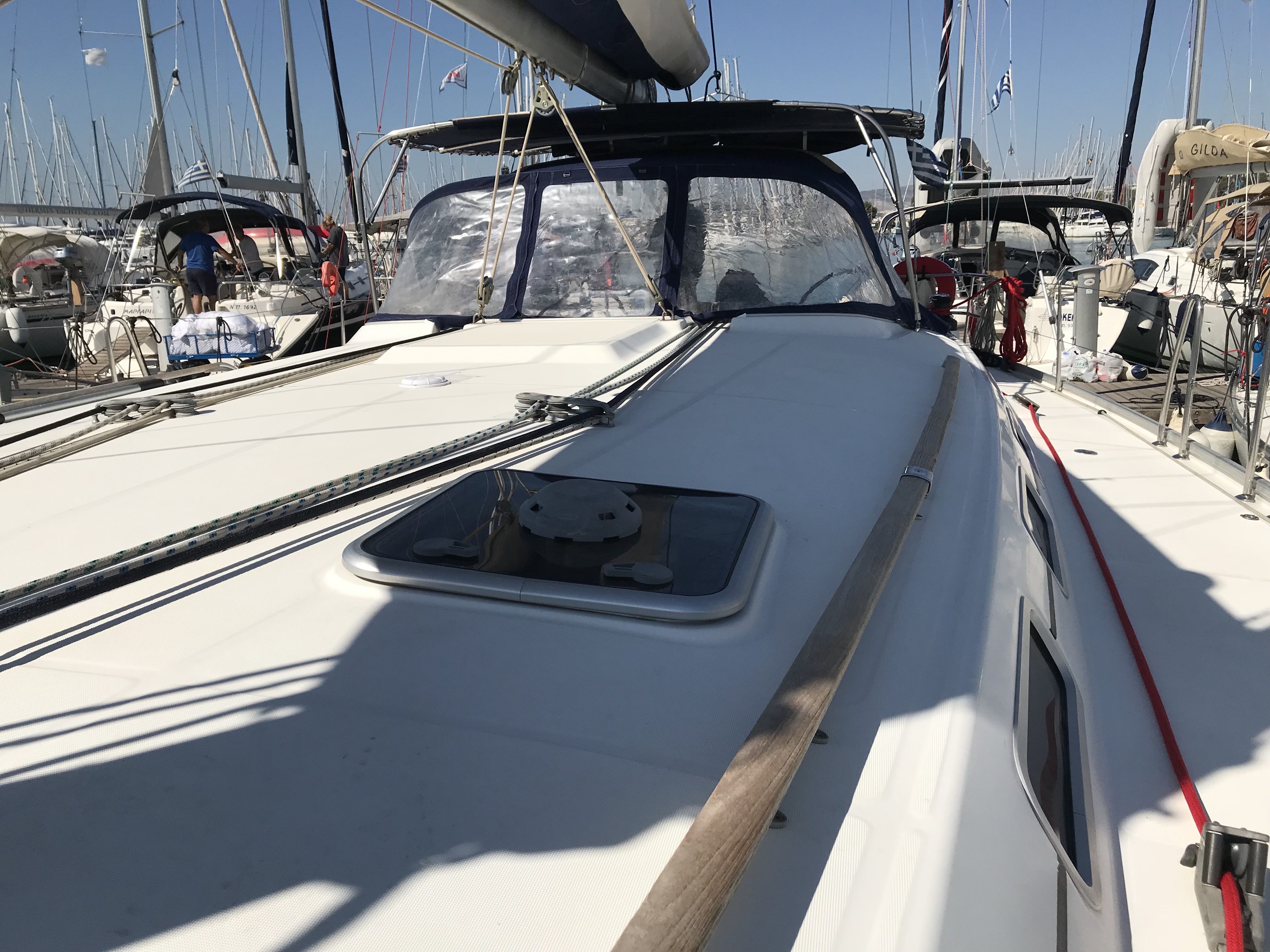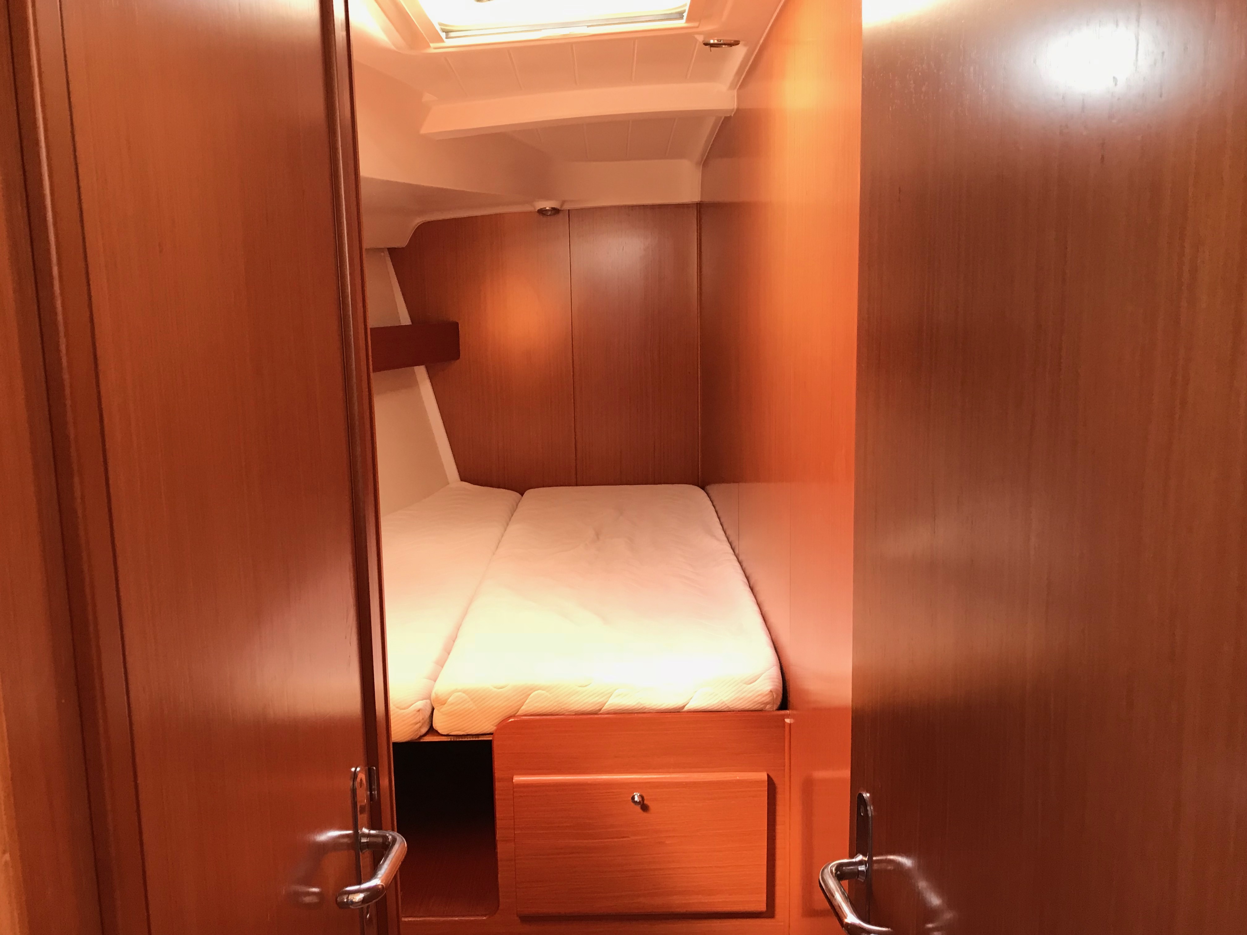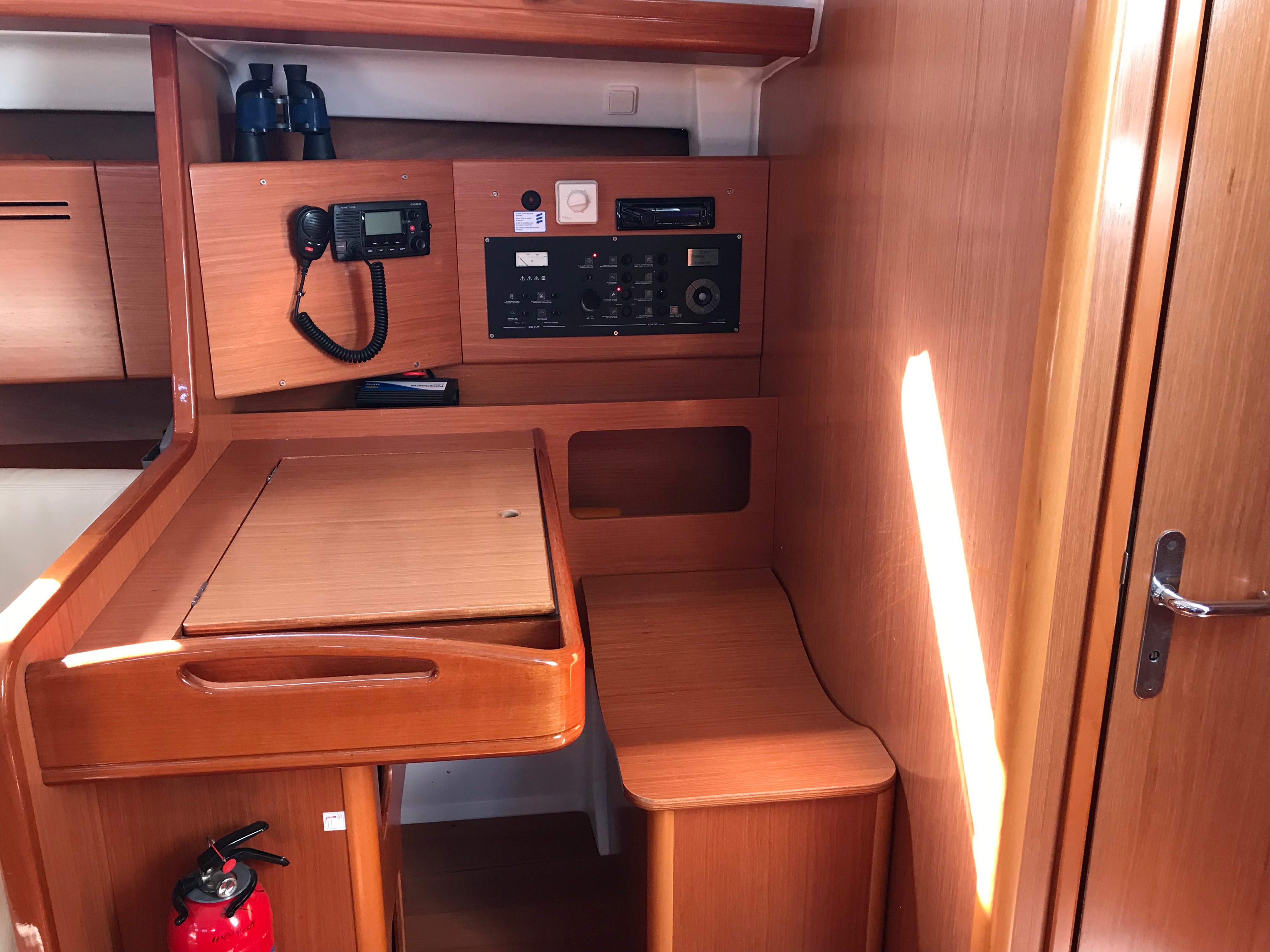 Gangway, Cockpit speakers, Electric windlass, Outboard, Wind Instruments, Roll genoa, Air fans, Bimini, Cockpit table, Dinghy, External shower, Freezer, Galley equipment, Inverter, Oven, Refrigerator, Solar panel, Sprayhood, Teak cockpit, Warm water, Radio/CD MP3 player, Speakers on deck, USB/AUX connection, Anchor winch, Autopilot, Bow thruster, Charts, Depth sounder, EPIRB, GPS Chart plotter, Life raft, Safety equipment, VHF, Full batten main sail, Genoa