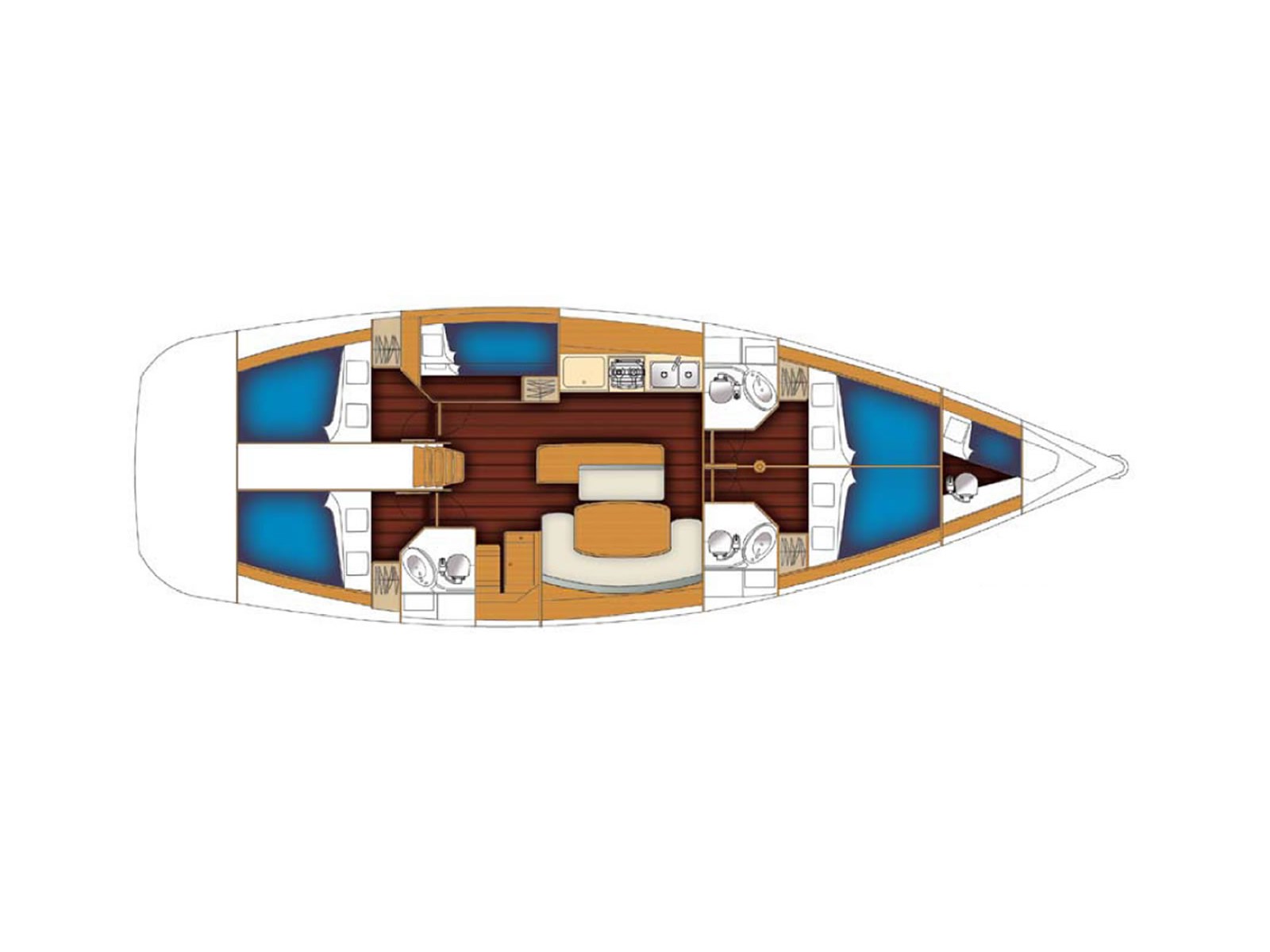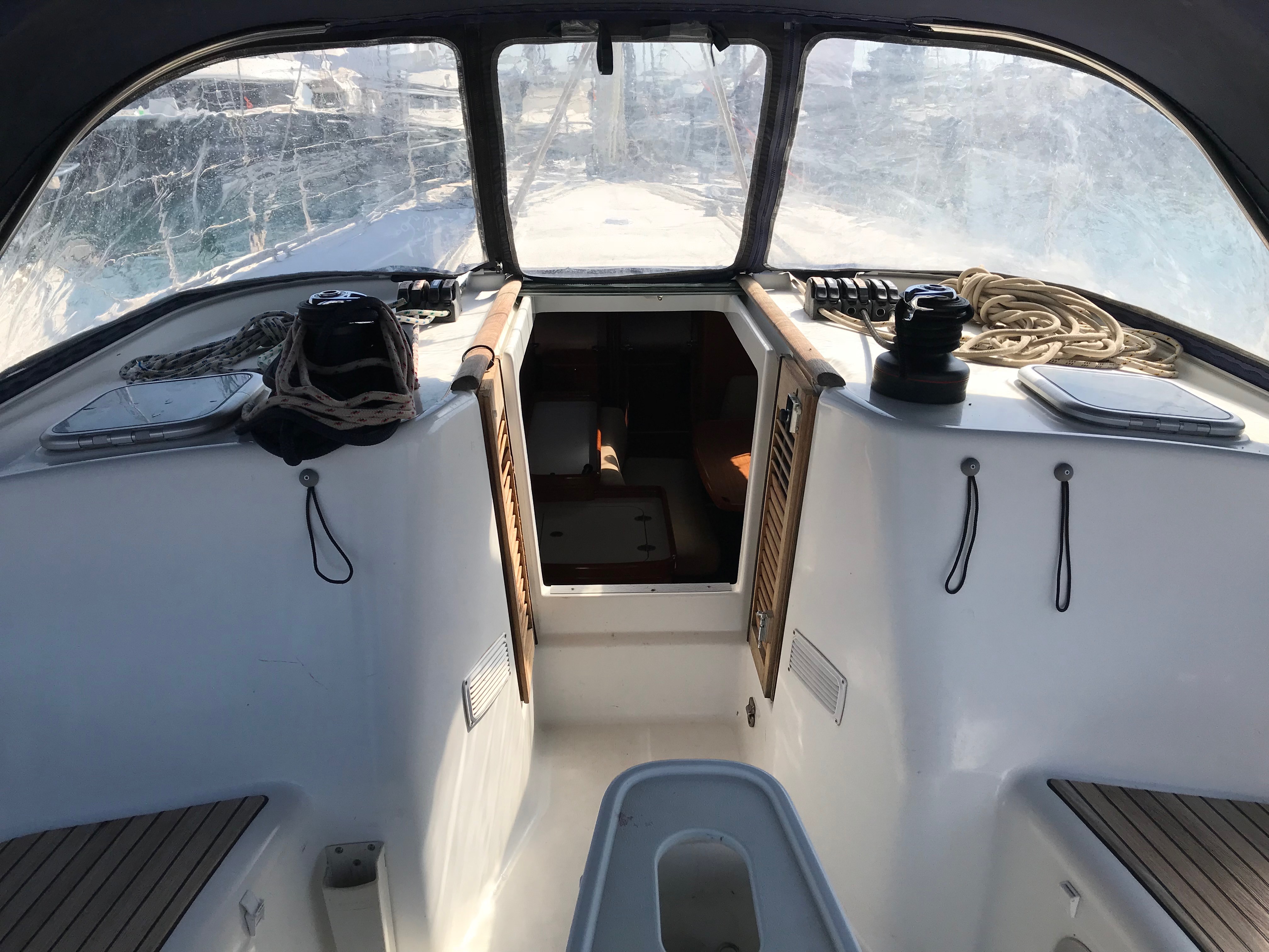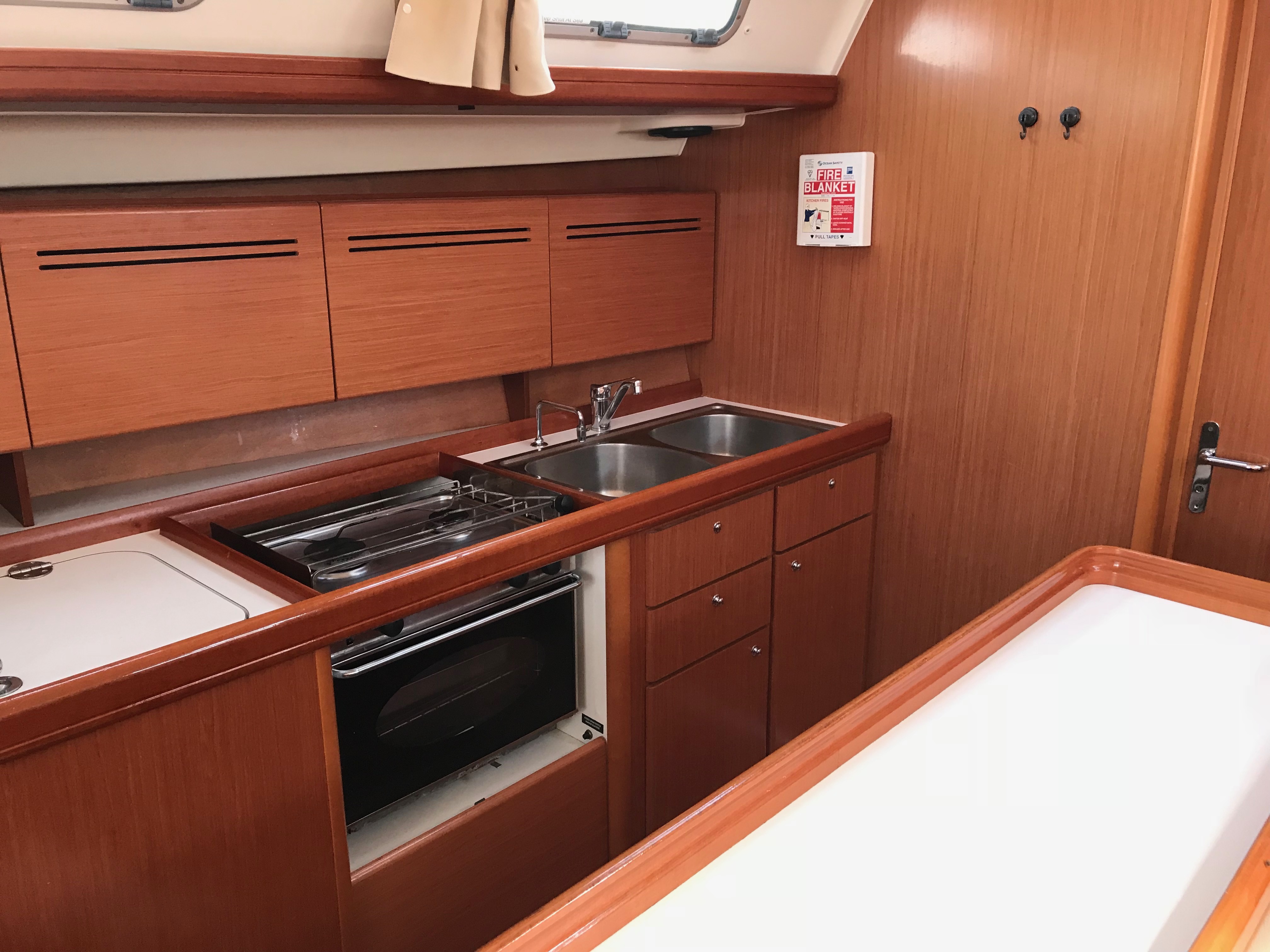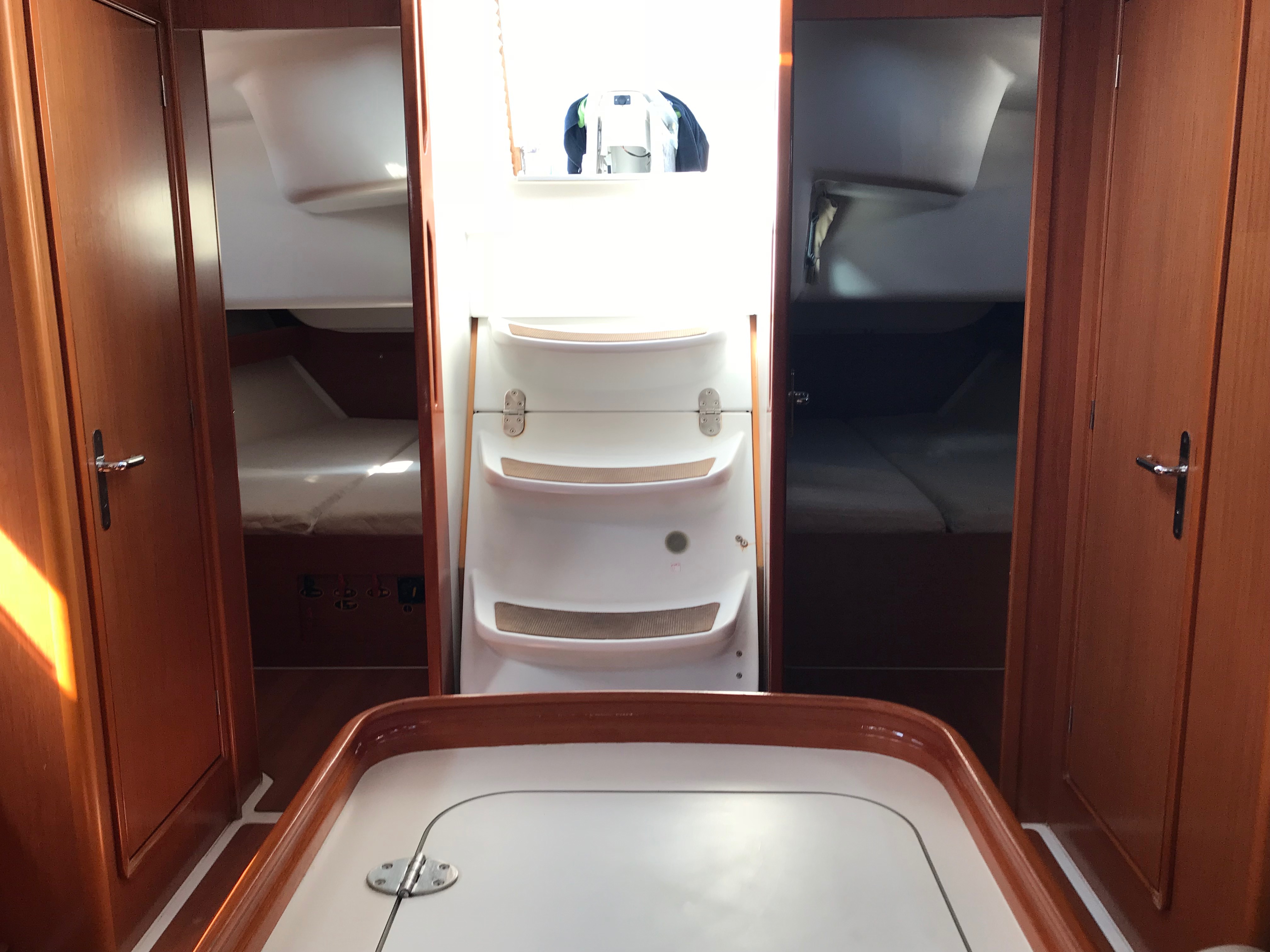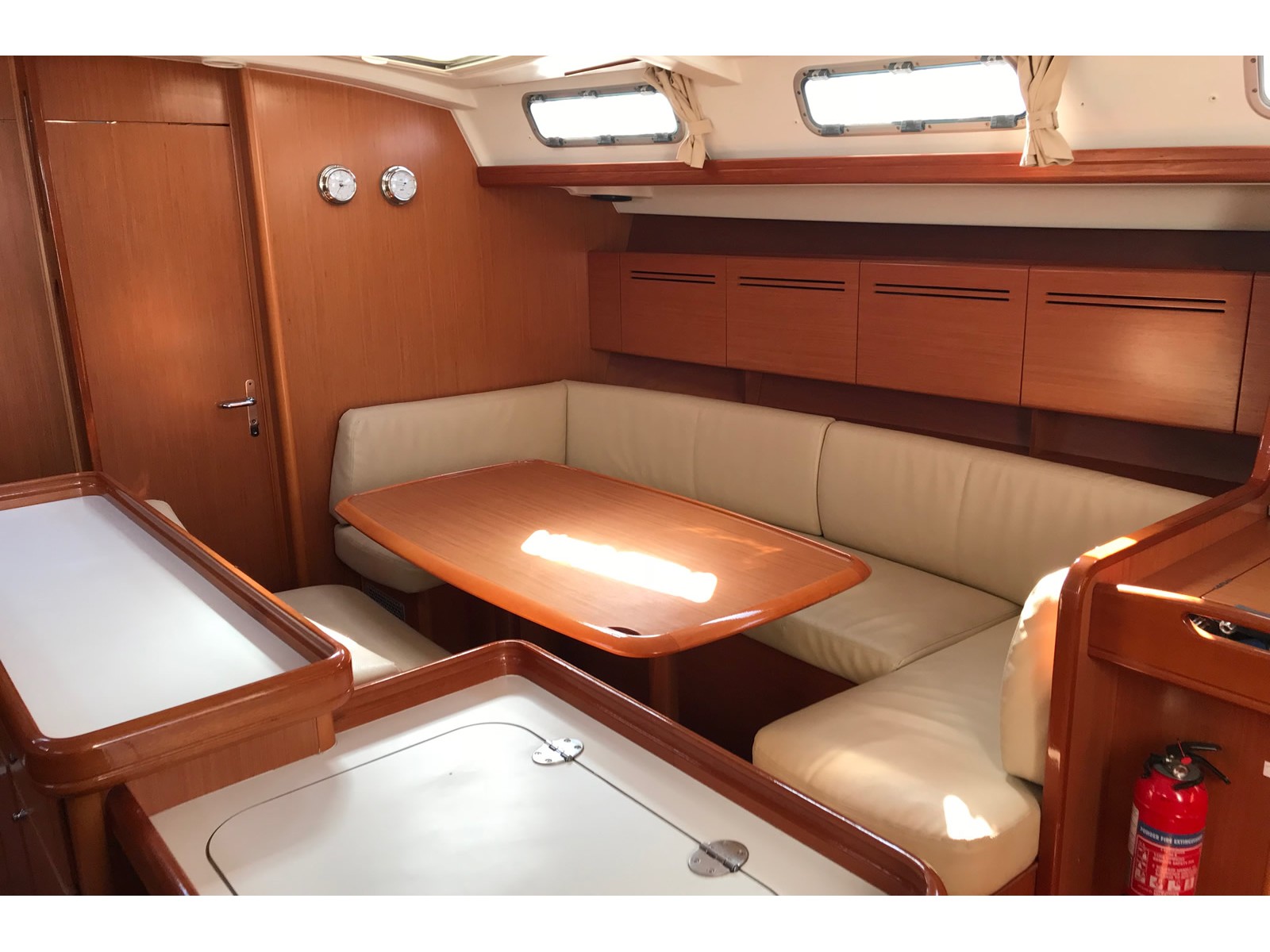 Gangway, Cockpit speakers, Electric windlass, Outboard, Wind Instruments, Roll genoa, Air fans, Bimini, Cockpit table, Dinghy, External shower, Freezer, Galley equipment, Inverter, Oven, Refrigerator, Solar panel, Sprayhood, Teak cockpit, Warm water, Radio/CD MP3 player, Speakers on deck, USB/AUX connection, Anchor winch, Autopilot, Bow thruster, Charts, Depth sounder, EPIRB, GPS Chart plotter, Life raft, Safety equipment, VHF, Full batten main sail, Genoa
