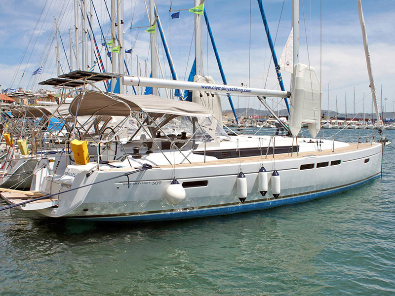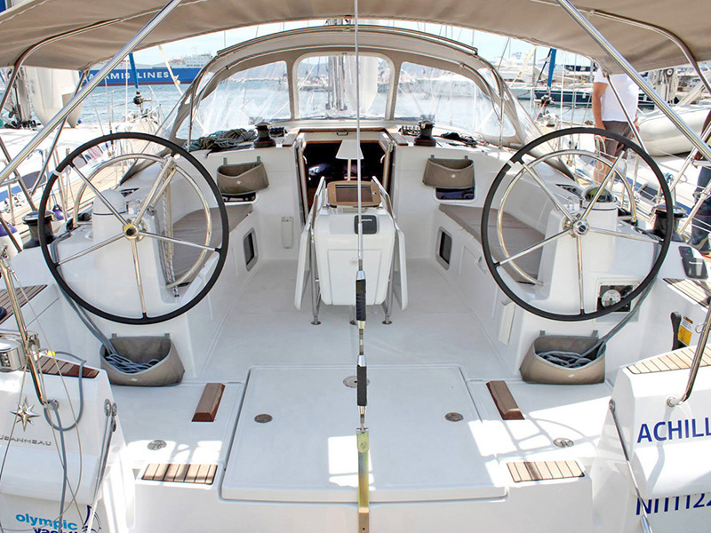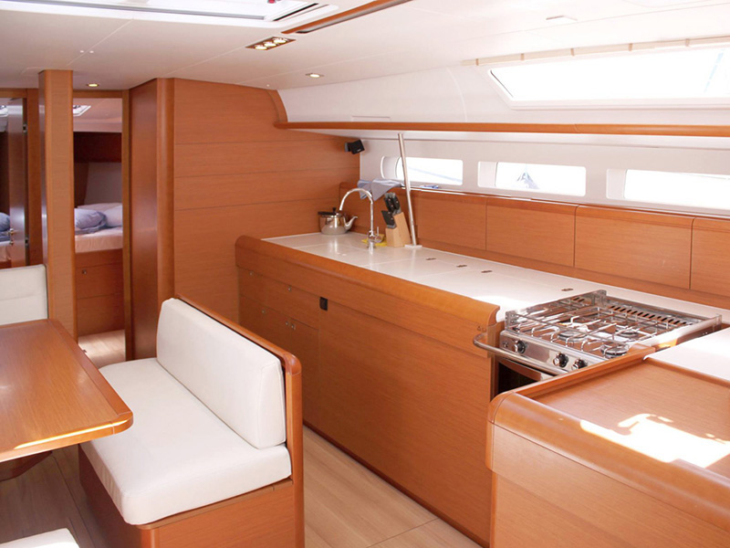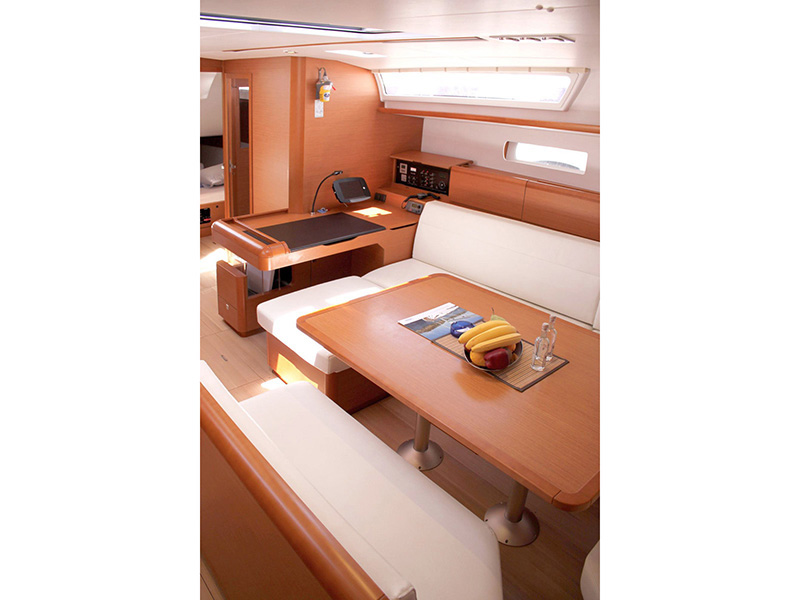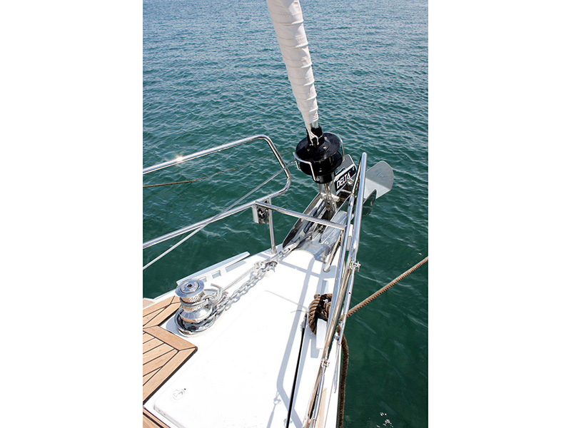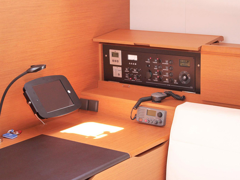 12/220V socket, 220V Battery charger, Auto helm autopilot, Auto helm depth system, Auto helm speed system, Auto helm wind speed/direction, Automatic life vests, Barometer, Bed linen, Bimini, Binoculars, Bosun´s chair, Bow thruster, Box of flares, Clock, Cockpit control panel, Cockpit speakers, Cockpit table, Colour chart plotter, Deck shower, Dinghy, Diving mask, DVD Player, Echo sounder, Electric anchor windlass, Electric bilge pump, Electronic sea charts, Emergency tiller, EPIRB, First aid kit, Full kitchen inventory, Furling mainsail, Gangway, Gas bottle, Gas stove with oven, GPS plotter, Hand bearing compass, Holding tank, Horseshoe buoy, Hot water, Icebox, Inflatable life raft, Inverter 12V-220V, Life jackets, List of lights, Log, Main compass, MP3, Navigation lights, Pilot book, Radio-CD Player, Refrigerator, Safety harnesses, Sail repair kit, Sea charts, Solar panels, Spinnaker pole, Sprayhood, Steering wheel, Tool kit, Torch, Towels, Transom swimming ladder, VHF Radio, World band reciever