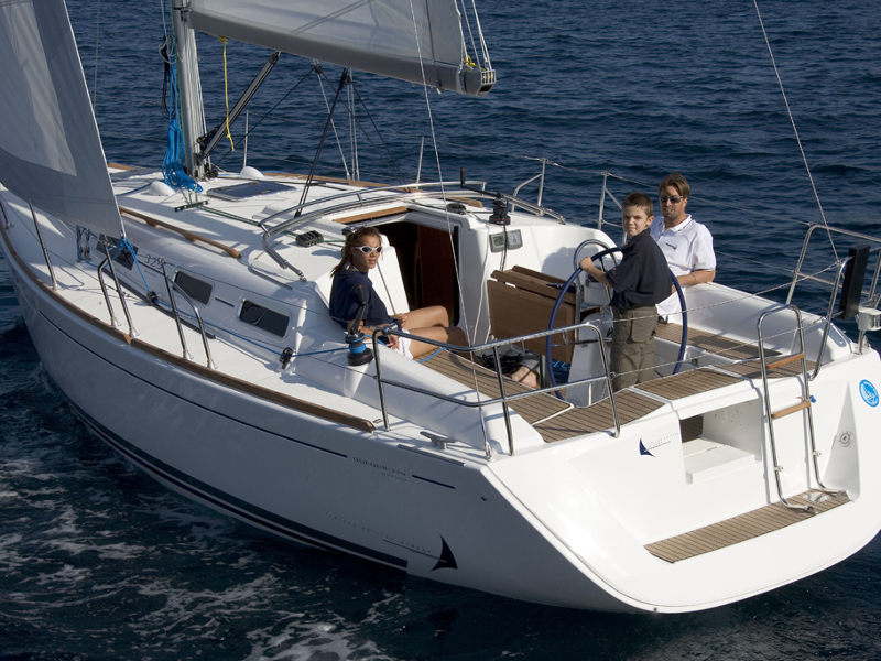 Bimini top, Electric anchor, Furling genoa, Inflatable dinghy with pump, Steering wheel, Battery charger and 220V shore supply, Bucket, Cockpit shower, Deck brush, Galley equipment, Gangway, Gas bottles, Swimming ladder, Water hose, Anchor ball and cone, Anchors with chain and rope, Anemometer, Barometer - clock, Bilge pump, Binocular, Blunkets, Boat hook, Boats papers, Bosuns chair, Distress rockets, Divider, Diving mask, Emergency rudder, Engine spare parts, Fenders, Fire extinguishers, First aid kit, Flashlight, Fog horn, GPS, Hand compass, Horseshoe buoy with line and light, Italian flag, Life jackets for all guests on board, Life raft, Log, Mooring lines, Navigation ruler, Radar reflector, Safety belts, Sea charts and cruising guides, Tool box, Ture holes, VHF, Water pilot, Winch handles