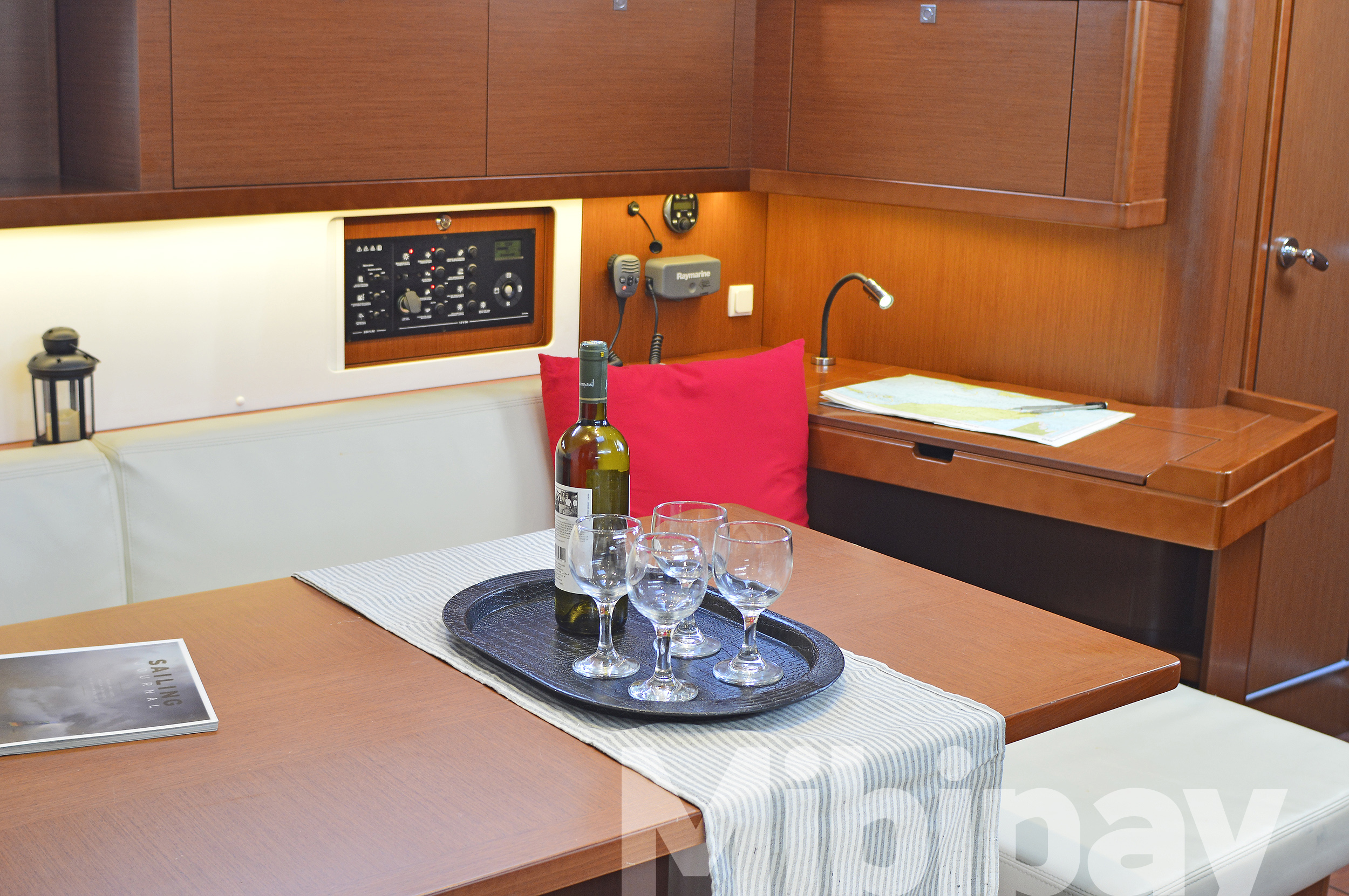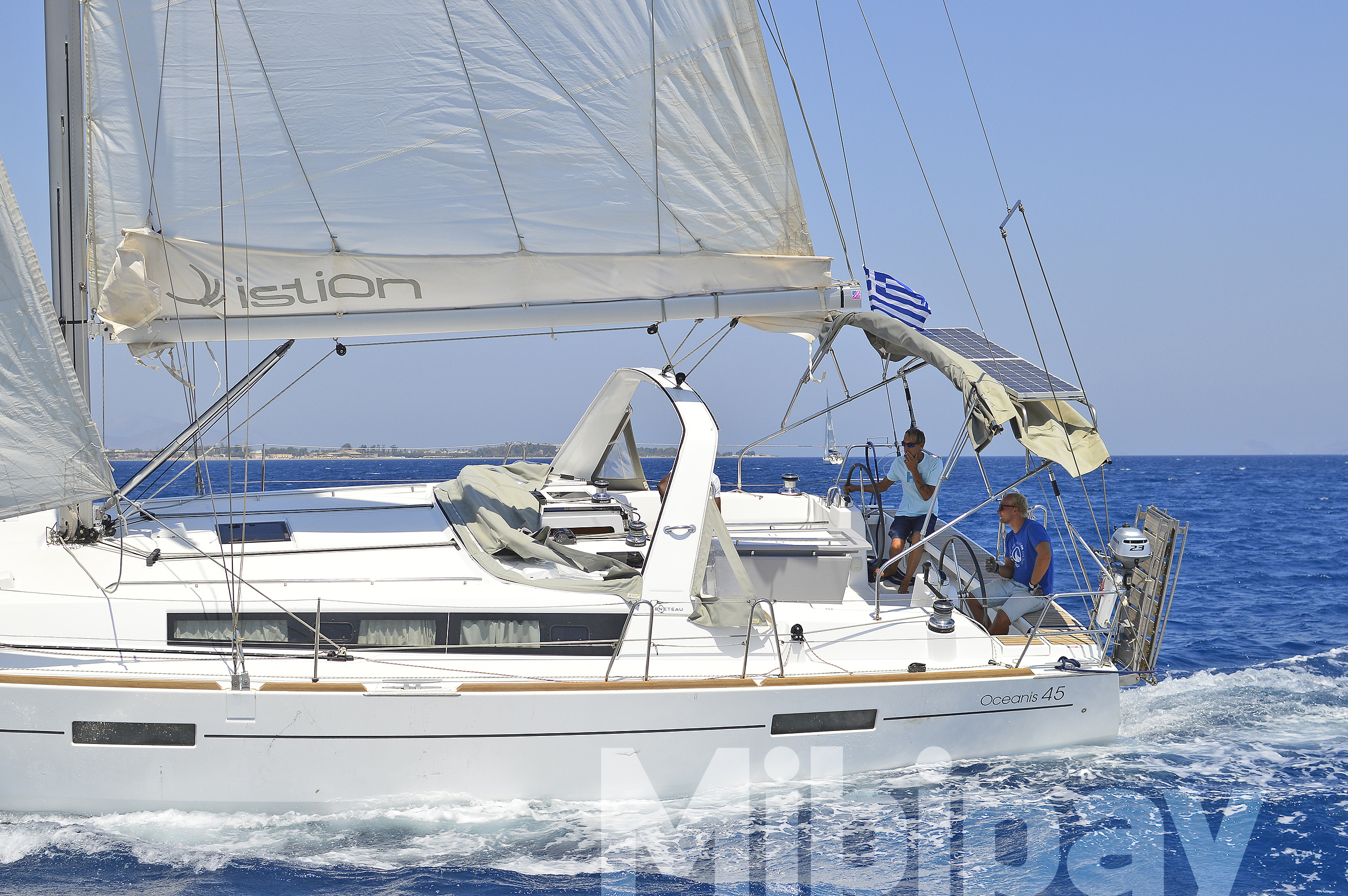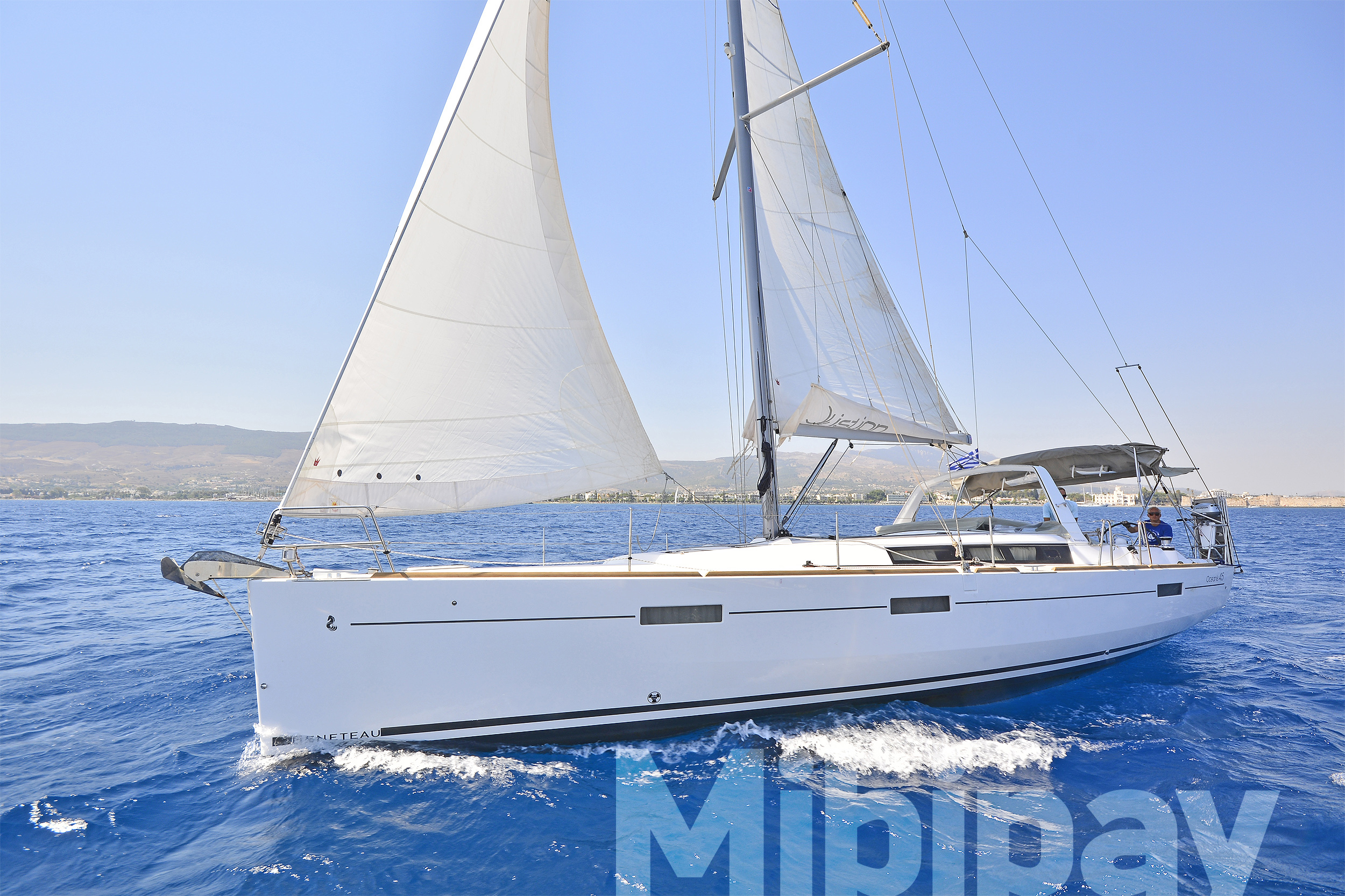 ANCHOR WINDLASS & HANDLE, COCKPIT CUSHIONS, COCKPIT TABLE, DINGHY, DOOR PANELS-KEYS, ENGINE OIL, FENDERS, GANGWAY, GAS BOTTLES, MAIN ANCHOR-CHAIN, MOORING LINES, OUTBOARD MOTOR, SECOND ANCHOR, WINCH HANDLES, BREAD KNIFE, CAN OPENER, CORK SCREW, CUPS, DINNER PLATES, DUSTPAN & BRUSH, ELECTRIC FRIDGE, FILTER COFFEE POT, FORKS, FRUIT PLATES, FRYING PANS, GAS STOVE, GLASSES, KETTLE, KNIVES, SALAD BOWL, SAUCE PANS, SOUP PLATES, SPOONS, TEA SPOONS, TEA STRAINER, TOILET BRUSH, AUTOPILOT, BINOCULARS, COCKPIT COMPASS, DIVIDER, ECHO SOUNDER, ERASER, GPS, GREEK WATERS PILOT, HAND BEARING COMP, PARALLER RULER, PENCILS, PLOTTER, SEA CHARTS, VHF, WIND INSTRUMENTS, 220 VOLT SOCKETS, BATTERY CHARGER, HOLDING TANKS, PILLOWS, MUSIC PLAYER, BLACK BALL, EMERGENCY HELM, EPIRB, FIRE EXTINGUISHERS, FIRST AID KIT, FLOATING LIGHT, FOG HORN, HORSESHOE LIFEBUOY, LIFE JACKETS, LIFE RAFT, SAFETY BELTS, TORCH LIGHT, BIMINI TOP, FURLING GENOA, SHEETS, SPRAYHOOD, Hot Water System, Speedometer, SOLAR PANELS, BOW THRUSTER, GPS IN COCKPIT, USB CONNECTION, ELECTRIC TOILETS