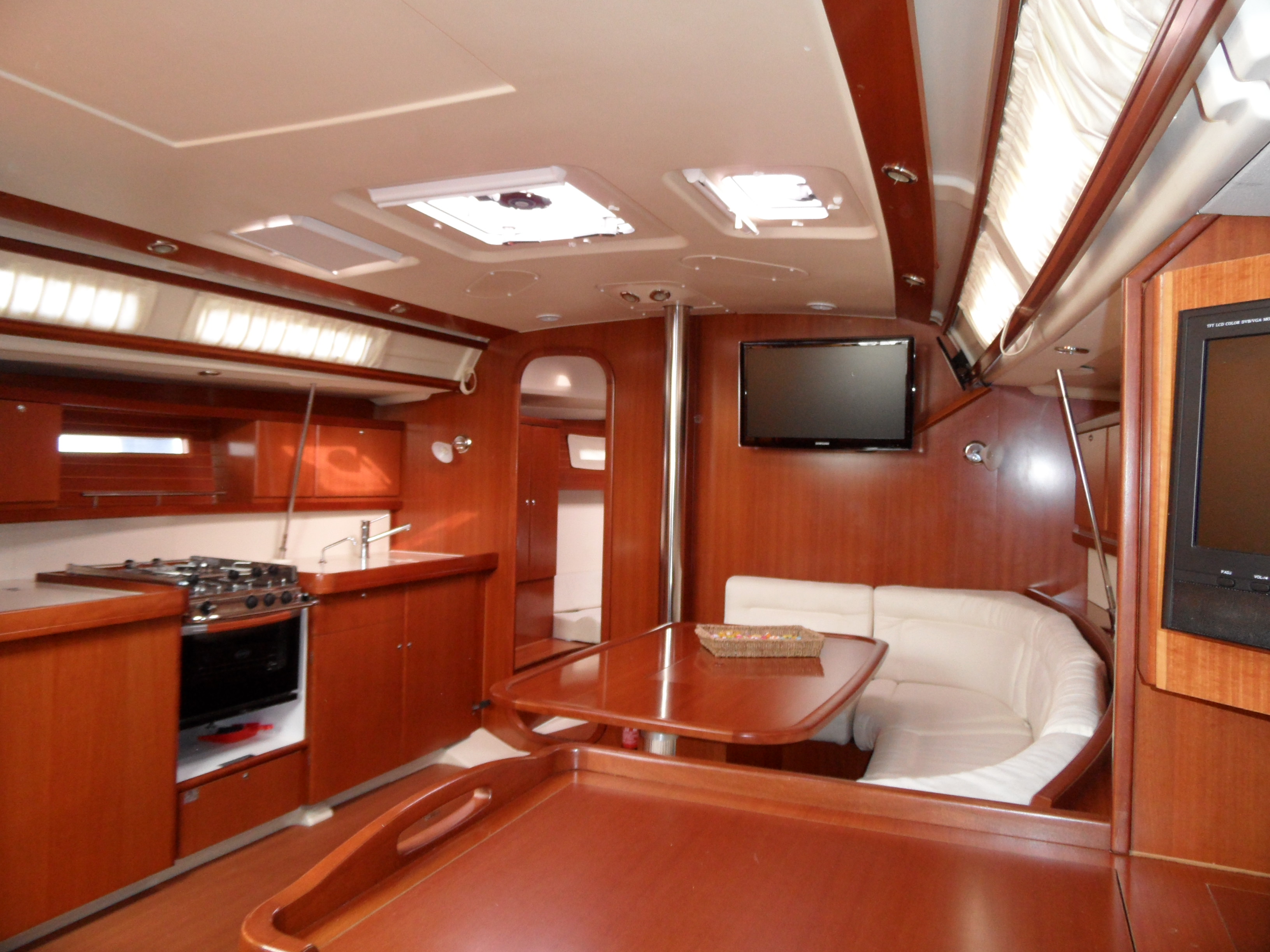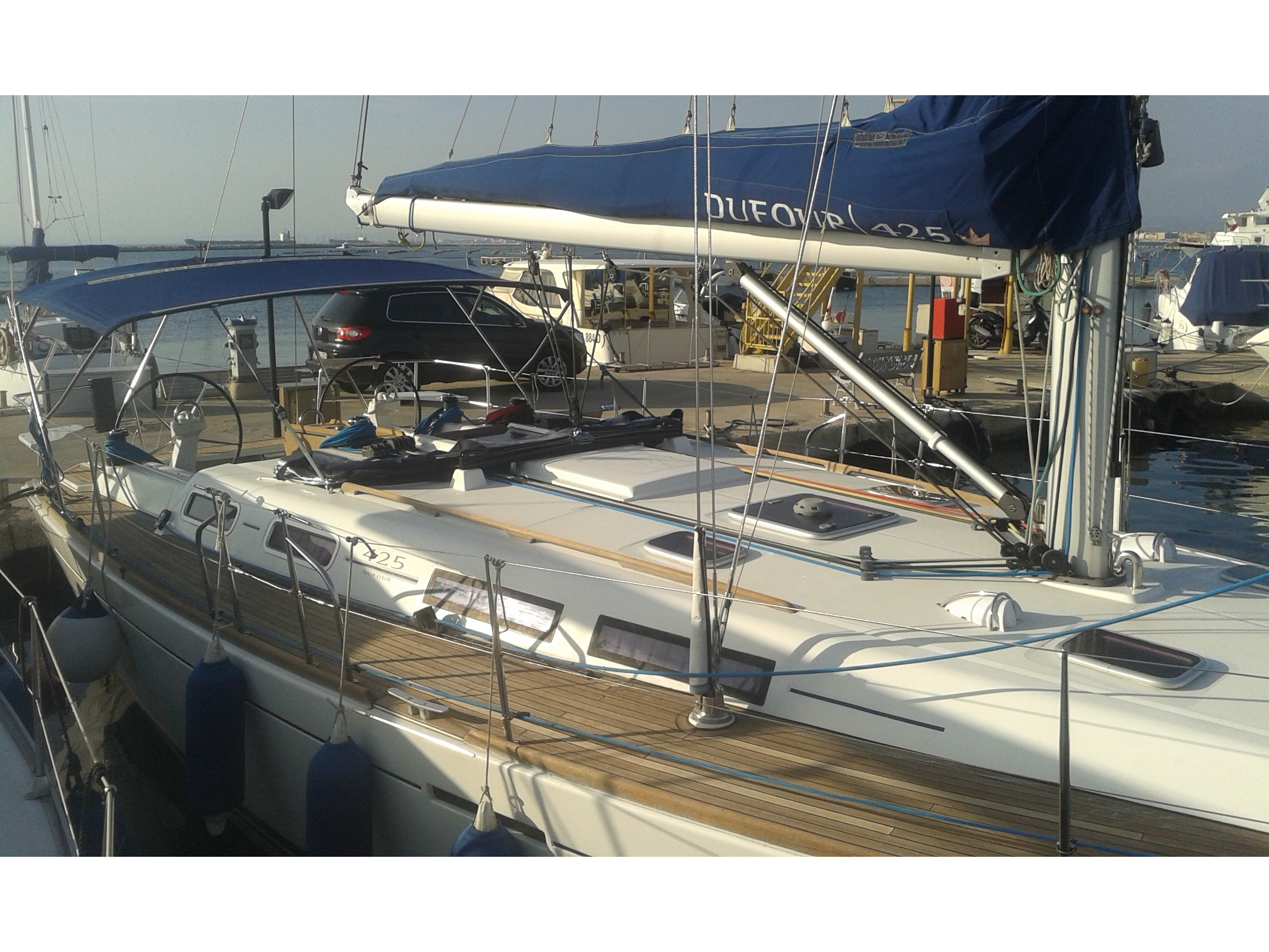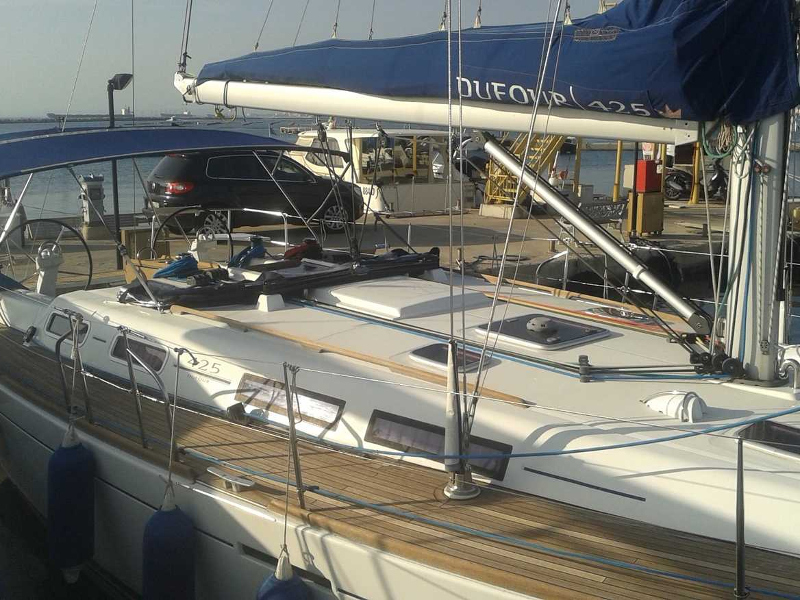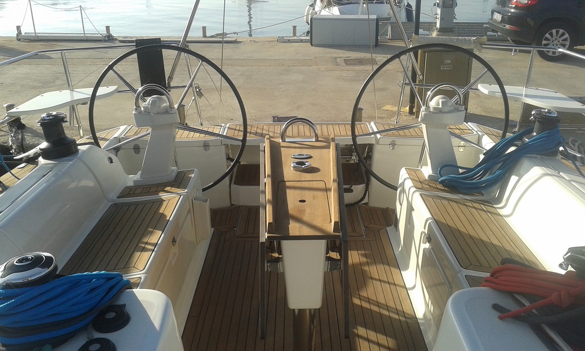 Bimini, Full batten Main Sail, Genoa Furling, Lazy Bag, Lazy Jack, Radar, Spray hood, Teak Decks, VHF, CD player with jack connection, Outdoor speakers, TV LED Samsung, Dinghy Zodiac, Binoculars, Board computer, Depth&speed log, Quick Chargebattery, Autohelm Raymarine, 12 Volt for charging phones/laptop, Full safety pack (Fires,epirb,etc.), Boiler, Carbon Boardwalk, Cockpit cushions, Hot&Cold pressurised water, Full water and diesel tanks on arrival, Transom shower and headsshower, Masks, snorkels, fins, El Windlass with 80 m chain, BOWTHRUSTER LEWMAR, GPS Colour chart plotter Raymarine, Electric Harken Winch, Navtex, depth, speed, log, Solar panels