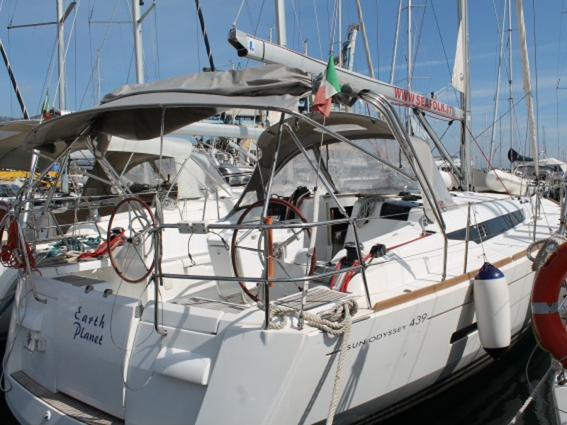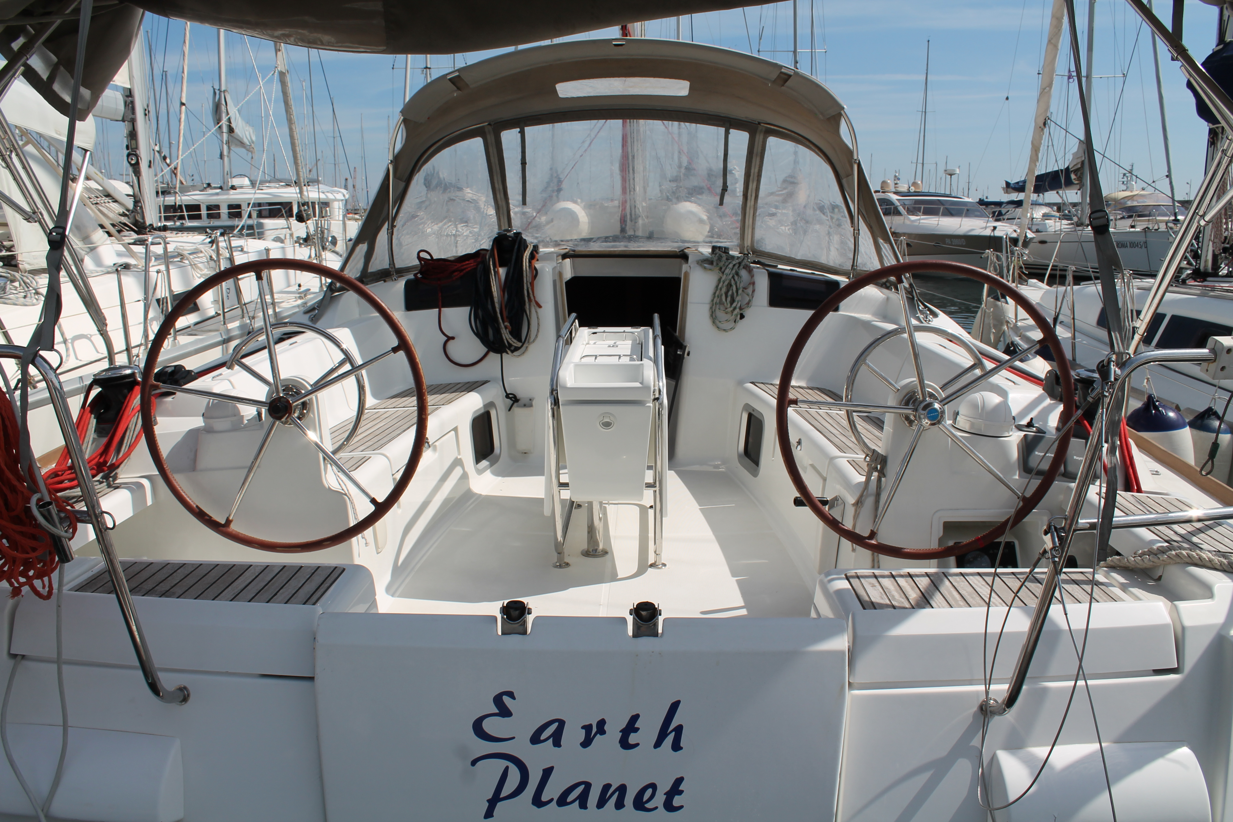 Anemometer, Autopilot, Battery charger, Bimini Top, Bow Thruster, Cartographic GPS, Cockpit cushions, Cockpit speakers, Cockpit table, Deck light, Deck shower, Dinghy, Electricity on board 12V and 220V, Electric wc, Electric windlass, Furling Genoa, Furling main sail, GPS + plotter, Inverter, Log/Speedo, Radio CD Player, Shore power cable 220V, Sprayhood