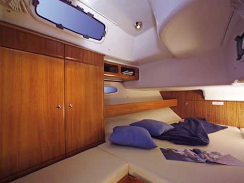 Easy bag, Full batten main sail, Furling genoa, Self tailing winches, Anchor electric windlass, Batery charger + shore cable : 12V socket, 220, Bed linen, Bimini, Cockpit speakers, Cockpit table, Coffee machine, Deck shower, Dinghy, Electric bilge pump, Electric fridge, External cushions, Gangway, Gas bottle, Gas stove with oven, Hot water, Outboard engine, Propeller, Radio CD player, Sprayhood, Steering wheel, Autopilot, Binoculars, Chartplotter in cockpit, Compass, Electronic sea charts, GPS, Hand compass, Standard paper charts, Tool kit, VHF radio, Wind speed meter, Box of flares, Emergency anchor, Emergency tiller, First aid kit, Floating light, Horse shoe buoy, Life jackets, Life raft, Radar reflector, Safety harnesses, Safety harnesses on request, Smoke box, Torch