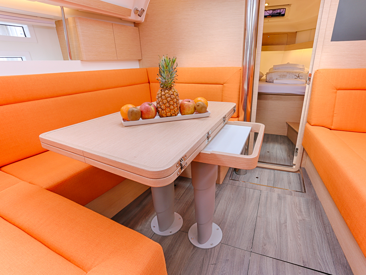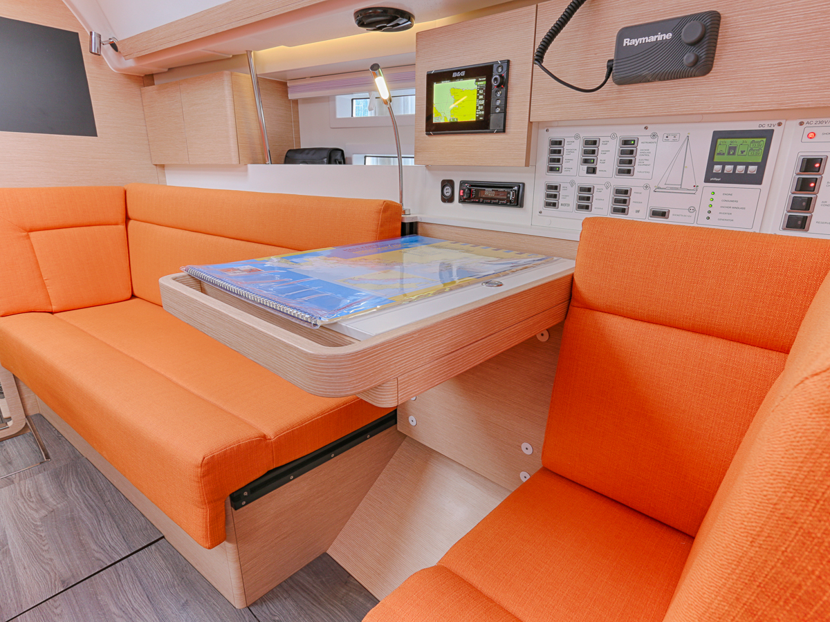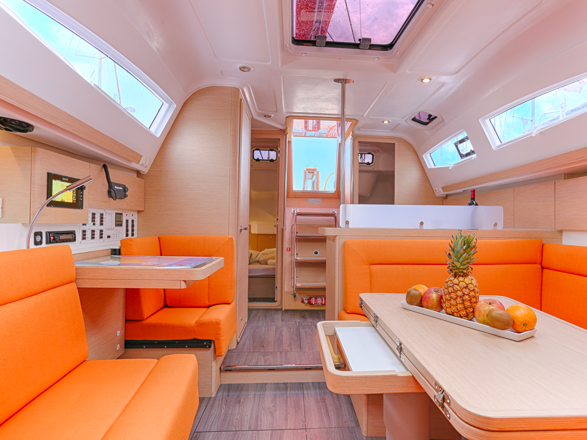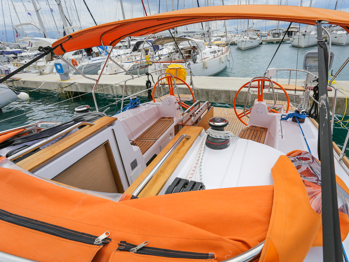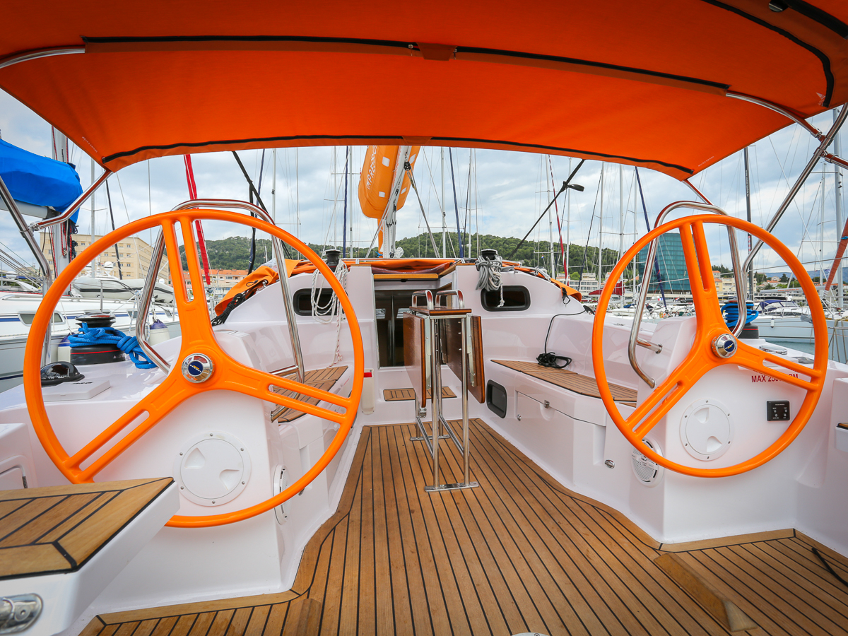 Lazy bag / semi-battened , Holding tank, YEARLY BERTH IN ACI MARINA SPLIT, CD player, Hot water, Refridgerator, Stove, Safety net, Autopilot, Binocluar, Bow thruster, Daily marks, Divider, Echo sounder, Flag, GPS chart plotter, Info map, Log speedometer, Navigation ruler, Pilot book, Sea charts, Torch, VHF radio telephone, Wind indicator, Distress signal kit, Electric bildge pump, Fire extinguisher, Fire hatchet, First aid kit, Foghorn, Life jacket junior, Life jackets, Radar reflector, Repair kit with impeller, engine belt, fuel filters, oil, etc., Safety belt, Safety harnesses, Stormy anchor, Tool box, Anchor with chain 50 m, Automatic light, Bimini top, Boat hook, Central compass, Cockpit table, Deck brush, Deck shower, Door panels&keys, El. cable 220 V, Emergency tiller, Fenders, Gangway, Gas bottles, Hand pump handler, Horseshoe life bouy, Jerrycan of petrol, Mooring ropes, Oars, Padlock, Plastic bucket, Pump, Sprayhood, Steering wheel, Swimming ladder, Tank oppener keys, Water hose, Winch handles, Windlass el., 220 V INVERTER, Cockpit speakers, Bathing platform, Outboard engine - extras, Furling genoa