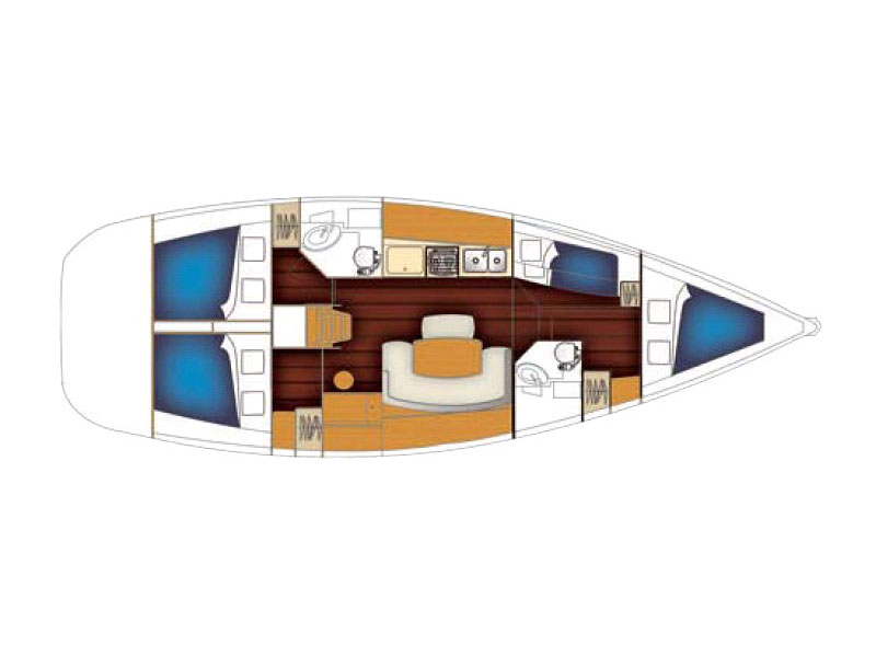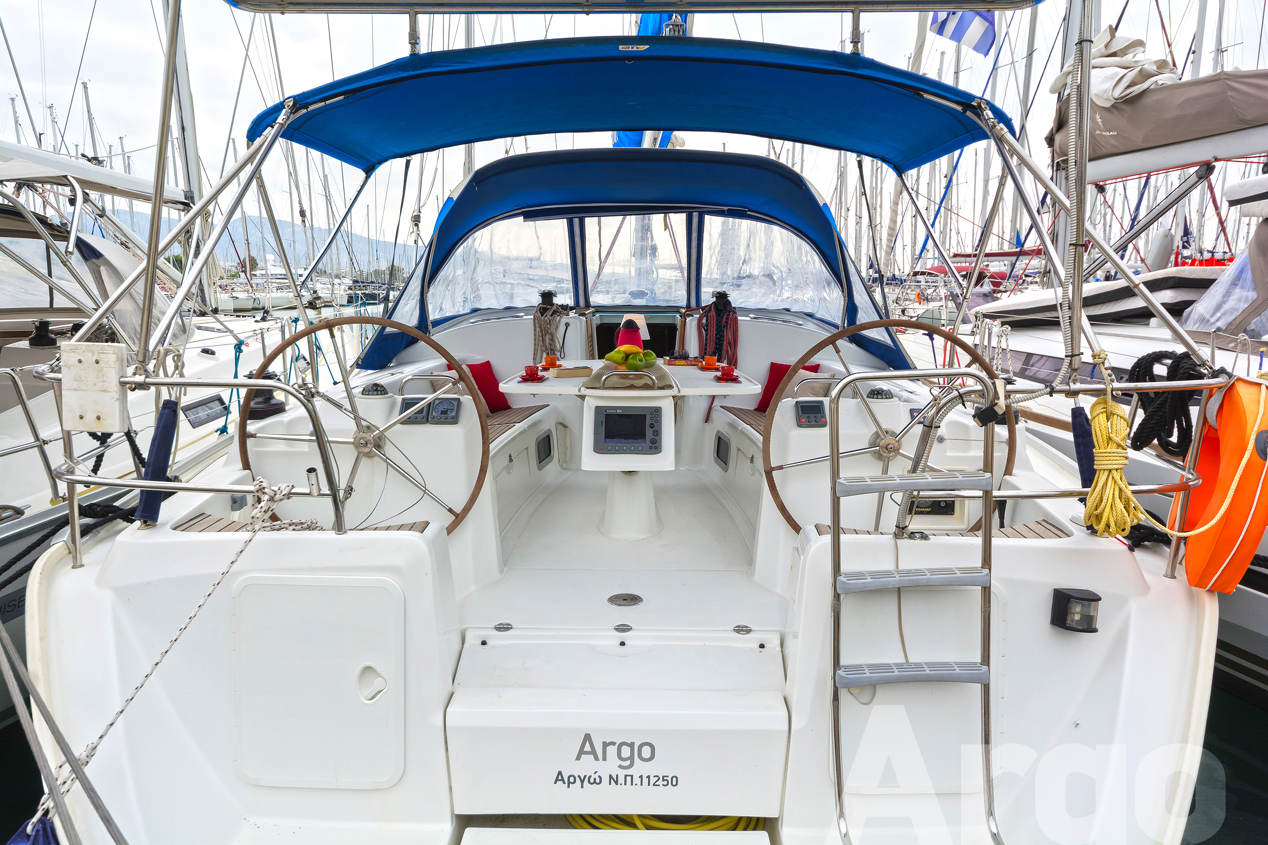 ANCHOR WINDLASS & HANDLE, BOAT HOOK, COCKPIT CUSHIONS, COCKPIT SPEAKERS, COCKPIT TABLE, DECKBRUSH, DECK SHOWER, DIESEL JERRYCAN, DINGHY, DOOR PANELS-KEYS, ENGINE OIL, FENDERS, FUEL FUNNEL, GANGWAY, GAS BOTTLES, HAND BILGE PUMP, MAIN ANCHOR-CHAIN, MOORING LINES, OUTBOARD MOTOR, PLASTIC BUCKET, PUMP & OARS FOR DINGHY, SECOND ANCHOR, SWIMMING LADDER, SWIMMING PLATFORM, WATER HOSE, WINCH HANDLES, BREAD KNIFE, CAN OPENER, CHOPPING BOARD, CORK SCREW, CUPS, DINNER PLATES, DUSTPAN & BRUSH, ELECTRIC FRIDGE, FILTER COFFEE POT, FORKS, FRUIT PLATES, FRYING PANS, GAS STOVE, GLASSES, KETTLE, KNIVES, SALAD BOWL, SAUCE PANS, SOUP PLATES, SPOONS, TEA SPOONS, TEA STRAINER, TOILET BRUSH, BED SHEETS, BLANKETS, PILLOWS, PILLOWS CASES, TOWELS, 220 VOLT SOCKETS, BATTERY CHARGER, CONVRTIBLE SALOON TABLE, ELECTRIC TOILETS, FANS, HOLDING TANKS, INVERTER 12-220, SOLAR PANELS, AUTOPILOT, BAROMETER, BINOCULARS, CLOCK, COCKPIT COMPASS, DIVIDER, ECHO SOUNDER, ERASER, GPS, GREEK WATERS PILOT, HAND BEARING COMP, PARALLER RULER, PENCILS, PLOTTER, SEA CHARTS, SPEED LOG, VHF, WIND INSTRUMENTS, AUX FOR IPOD/IPHONE, CD PLAYER, SNORKELING EQUIPMENT, USB CONNECTION, BLACK BALL, BOX OF FLARES, EMERGENCY HELM, EPIRB, FIRE EXTINGUISHERS, FIRST AID KIT, FLOATING LIGHT, FOG HORN, HORSESHOE LIFEBUOY, LIFE JACKETS, LIFE RAFT, RADAR REFLECTOR, SAFETY BELTS, TORCH LIGHT, BIMINI TOP, FURLING GENOA, SHEETS, SPRAYHOOD, BOAT DOCUMENTS, BOAT MANUALS, DINGHY REPAIR KIT, SAILS REPAIR KIT, TOOLBOX, Autopilot, Bimini, Dinghy with Outboard Motor, Echo Sounder, Hot Water System, Radio/CD, Speedometer, Spray hood, VHF, Blankets, GPS IN COCKPIT