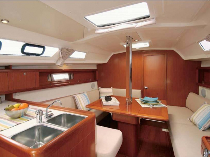12 Volt Socket, 220 Volt Battery Charger with Sockets, Autopilot, Bed linen and towels, Bimini, Boarding ladder, Cockpit Shower, Cockpit Speakers, Convertible Table in Saloon, Dinghy with Outboard, Echo sounder, Electric Fridge, Electric windlass, Furling Genoa, Furling Mainsail, Gas Bottle, GPS - Plotter inside, Hot water, MP3 player - Radio, Pillows and Blankets, Solar Panels, Sprayhood, Windex, Wind instruments, Cockpit Table, Electric toilet
