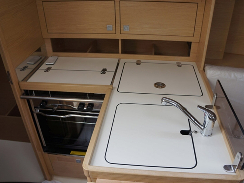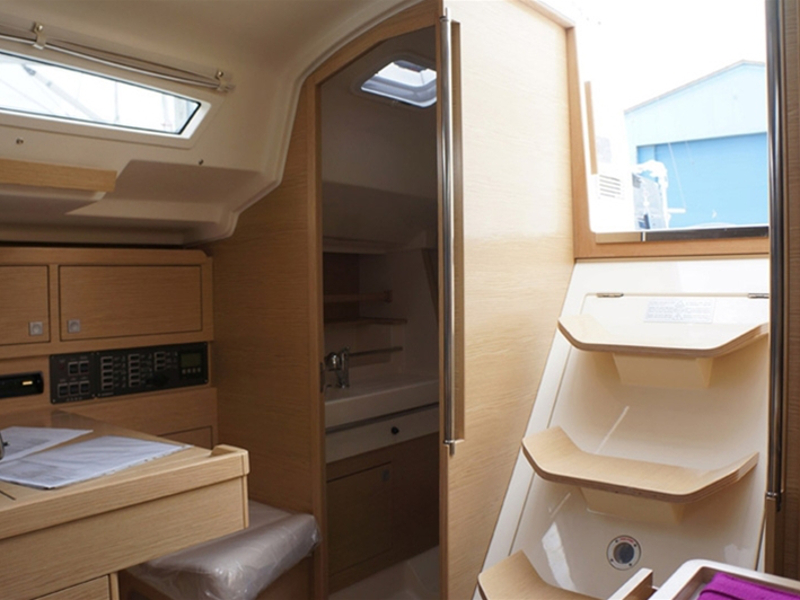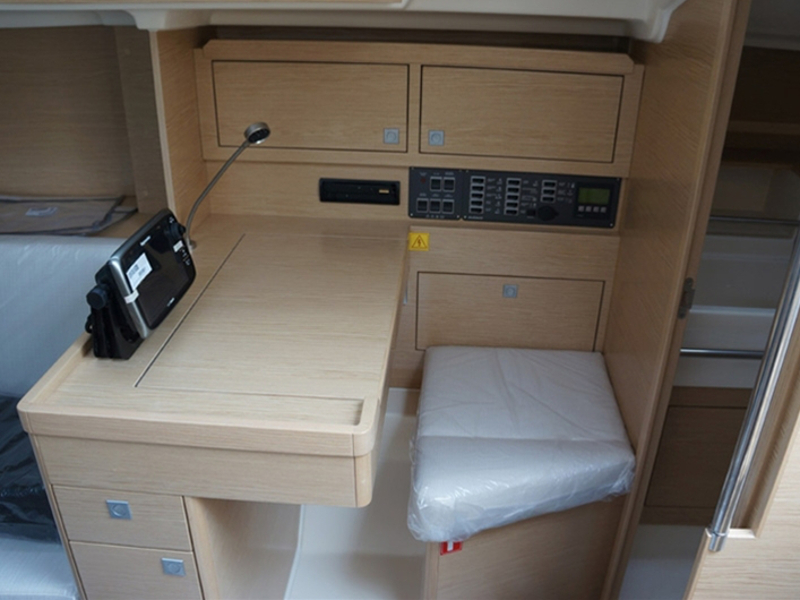Bimini top, Hot water shower in cockpit, Main sail fullbaten triradial, Removable cockpit table, Sprayhood, 12V plug on the control panel, 220V shore connection with shore power cable, 220V socket in each cabin, ISOTHERM Electrical Fridge, Water heater, Raymarine Autopilot system ST70 (Smart Pilot SPX10), Raymarine plotter E7, Raymarine ST 70 2x Display, Raymarine ST 70 wind, speed depth sensor