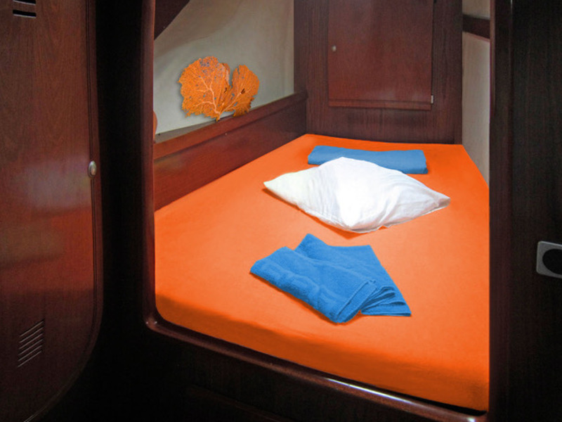 AIS, Autopilot, Barometer, Binoculars, Clock, Cockpit instruments, Color plotter, Compass, Echo sounder, Flags QNC, GPS, Hand bearing compass, Harbour guide, Log, Port plans on CD, Radar, Seacharts, Windmeter, 12 V socket, Bathing ladder, Battery charger + Land cable, Bilge pump, Bimini top, Coffee machine, Dinghy, Diving goggles, Electric bow, Electric refrigerator, Electric windlass, Fans, Gas bottle, Holding tank, Hot water, Ice box, Ice maker, Inverter (converter), Lazy jacks, Linen, Outboard, Outlet 220 V, Outside speakers, Oven, Pantry, Radio CD - MP3, Sail repair kit, Solar cells, Stern shower, Tool kit, Towels, Water maker, Wifi - WLAN, Emergency tiller, EPIRB, Life jackets, Lightning bouy, Navigation lights, Rescue boat, VHF