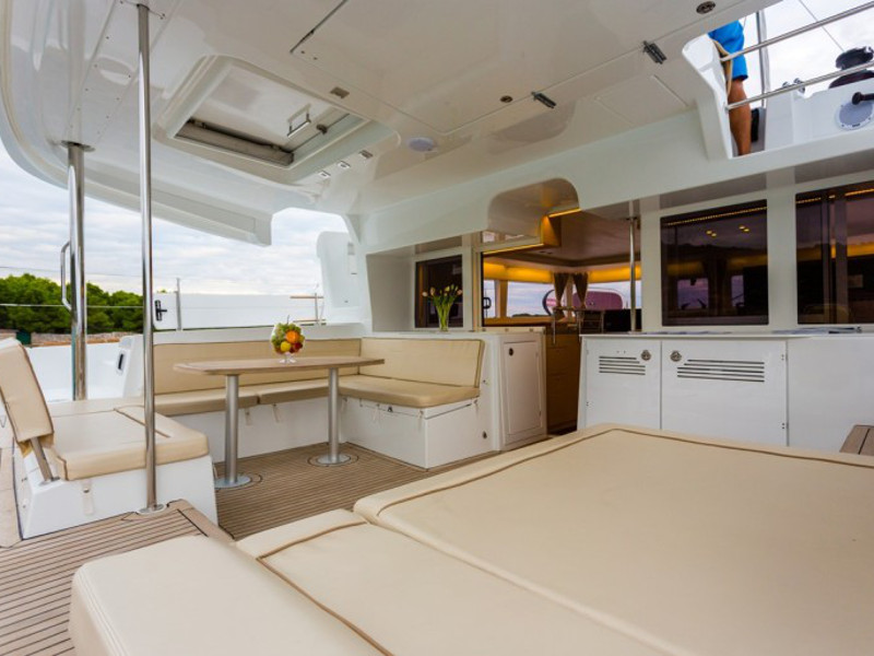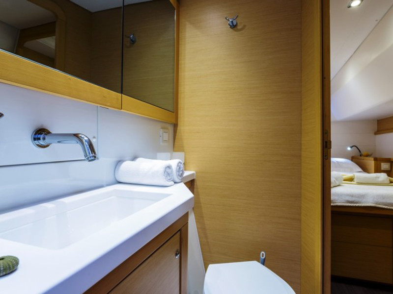 Full batten main sail, Furling genoa, Carbon gangway, Large bimini on flybridge, Teak cockpit, Air Condition, Bed linen & towels, El. refrigerator, Galley equipment, Generator, Hot water, Ice maker, Music system, Smart TV, Autopilot , Chart, GPS, Life raft, Multi instruments , Plotter VHF, Radio, Dinghy, Donut, Kayak, Kneeboard, Snorkelling set, Stand up paddle board