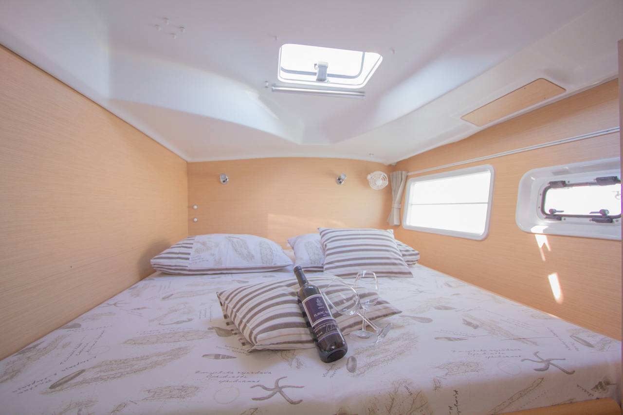 Bimini, sprayhood, battery charger, hand towels, Pillows and blankets, Heating, Linen, Rollgenua, Refrigerator, Deck Shower, Electric Windlass, Hot Water System, Cockpit Speakers, Radio/CD, VHF, Autopilot, GPS Chartplotter, First aid kit, Log/Speedo, Main Deck Compass, Lazy Bag, Windinstrument, Fire extinguisher, Navigation kit, Nautical charts and nautical guide, Anchor, 220 V shore connection, Cutlery, dishes, gas stove, Standard main sail, Gangway, dinghy 3.10 m with outboard engine 10 HP, Solar Panel, inverter, Auxiliary anchor, Distress flares, Lifebuoy, Life jackets, Safety harness, Cooker (num.), Sinks (num.), Cushions in cockpit, sun tent in cockpit, fans in cabins, fans in saloon