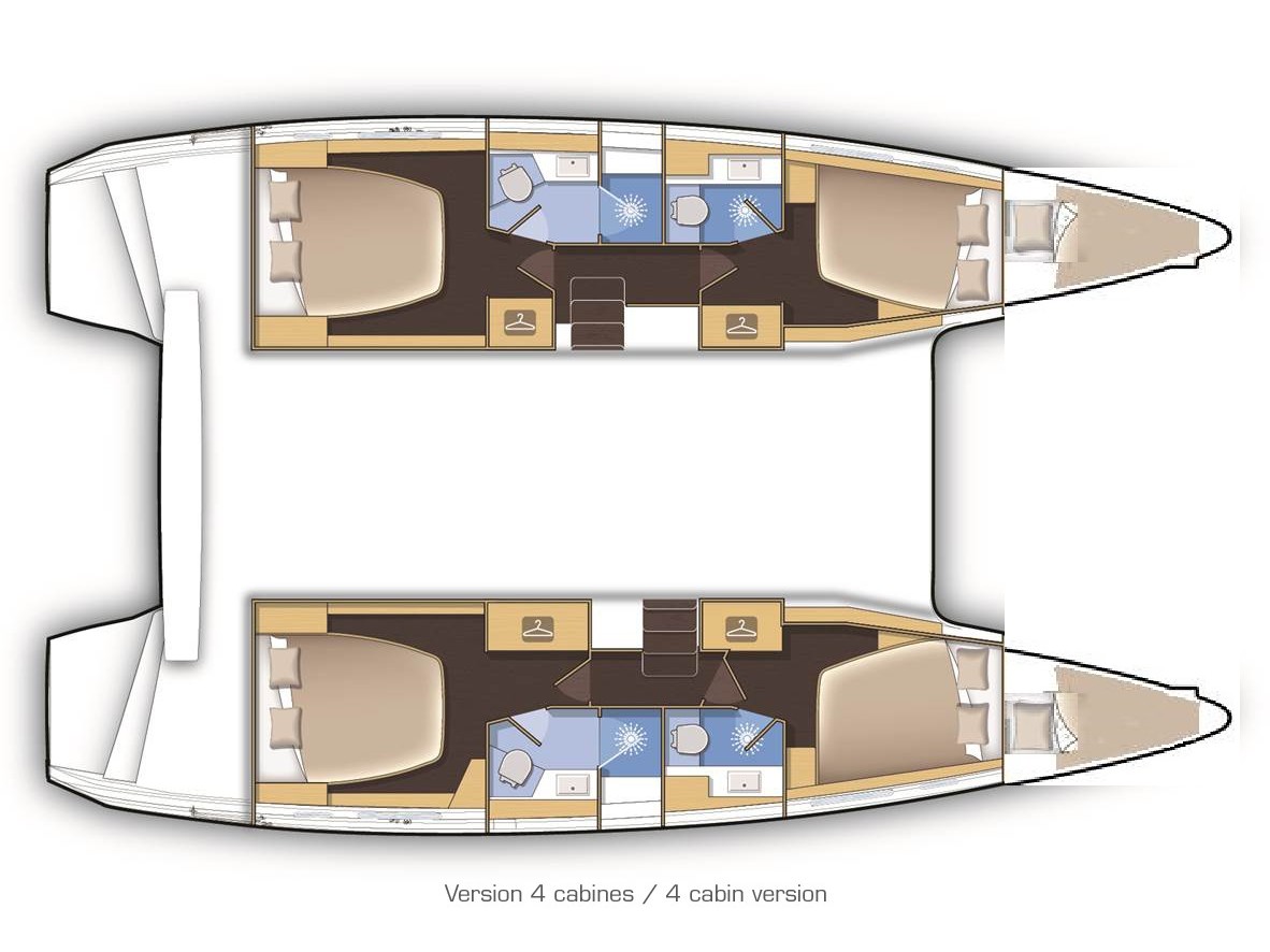 Autopilot, Battery charger, Cockpit shower, Depth speed, LCD TV with DVD or USB, Electrical bilge pump, Electrical water pump, Electric windlass, GPS chartplotter in cockpit, Hot water, Motor battery, Outside speakers, Radio with CD or MP3 player, Refrigerator 12V, Roll genoa, Service battery, VHF, Wind, Anchor + chain, Black ball, Black cone, Boat hook, Bucket, Deckbrush, Dinghy, Emergency helm, Funnel, Gangway, Gas bottles, Jerrycan for fuel, Jerrycan for water, Lifebuoy with light, Oars for dinghy, Outboard engine holder, Pump for dinghy, Radar reflector, Round fenders, Second anchor + chain, Shore power line, Sponge, Water hose, Barometer, Binocular, Clock, Divider, Handbearing compass, Navigation charts set, Navigation ruler, Pen and pencil set, Pilot book, Triangle, Bosun chair, Distress flares box, Fire extinguishers, First aid kit, Flash lamp, Foghorn, Tool set, Windlass handle, Windlass remote control, Life jackets, Flat fenders, Life raft, Aircondition, Heating, Radar, Generator, Bimini, Electric Deck Winch, Full Battened Mainsail, Lazy bag, Flybridge, Solar Charger, WiFi