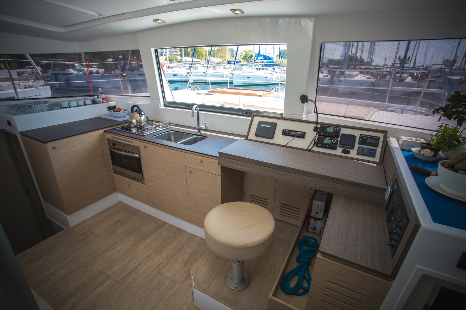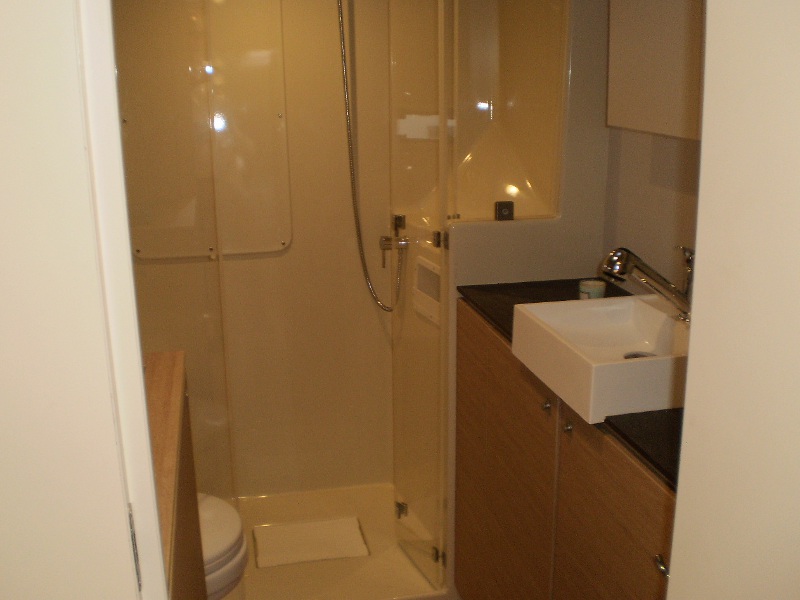 Battened mainsail, Bimini top, Electronic instruments, GPS plotter on cokcpit, Outboard motor (extra charge), Radio CD player, Solar panel, Sprayhood, Autopilot 7000, Refrigerator, Deck Shower, Solar Panel, Life jacket, Main Sail Full Batten/Lazy Jack, Nautical charts and nautical guide, Spray hood, Main Deck Compass, Depth Gauge, Lazy Bag, Lazy Jack, First aid kit, Fire extinguisher, Auxiliary anchor, Distress flares, Liferaft, Main anchor, Safety harness, Air conditioning (extra charge), Generator, Log/Speedo, Anchor, Full batten Main Sail, Bimini, Electric Windlass, Hot Water System, Heating, Cooker with oven, Cockpit Speakers, Wind Speed Indicator/Network Wind, Speedometer, Radio/CD, Echo Sounder, Autopilot, GPS Chartplotter, Dinghy Inflatable, Steering wheel, Genoa Furling
