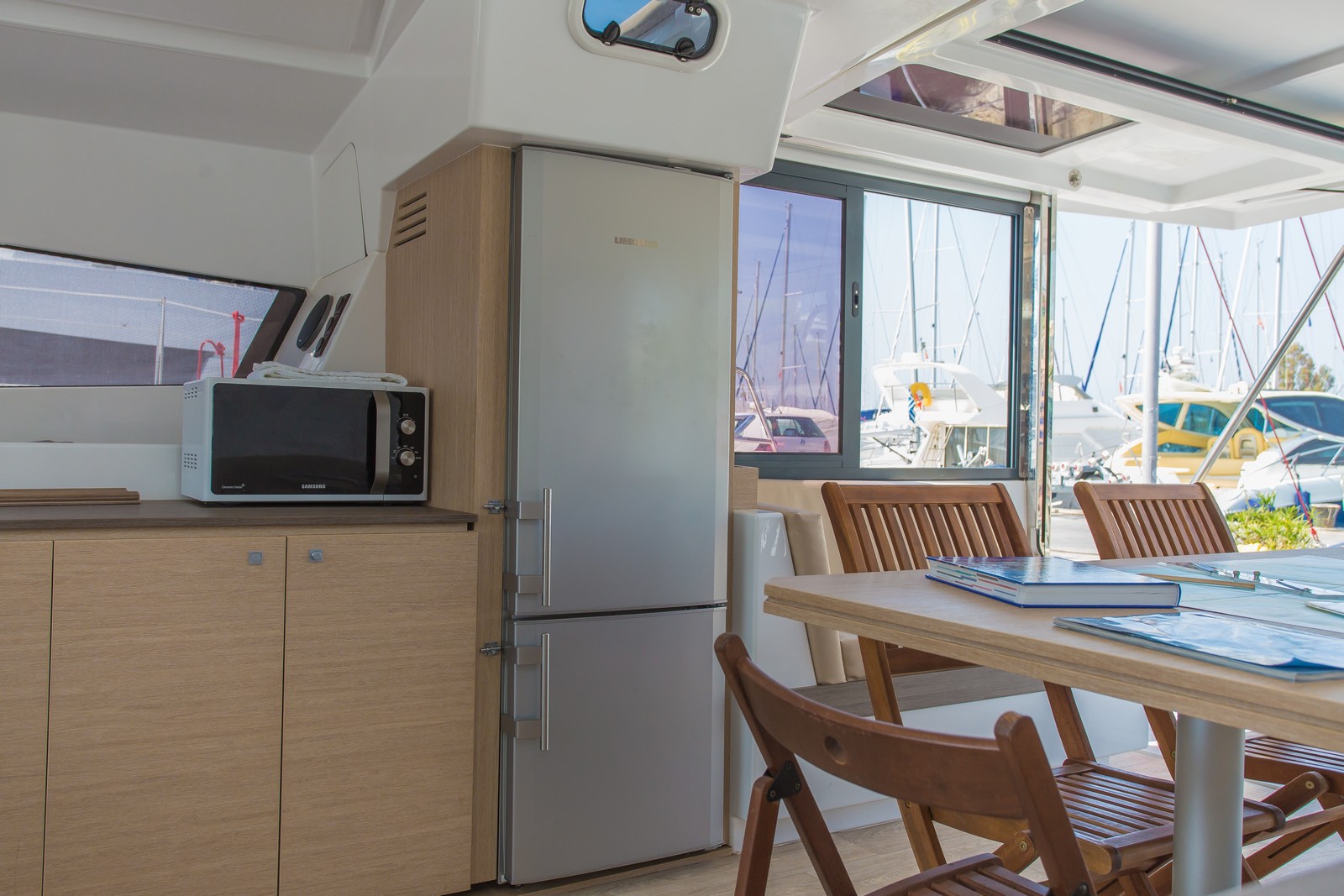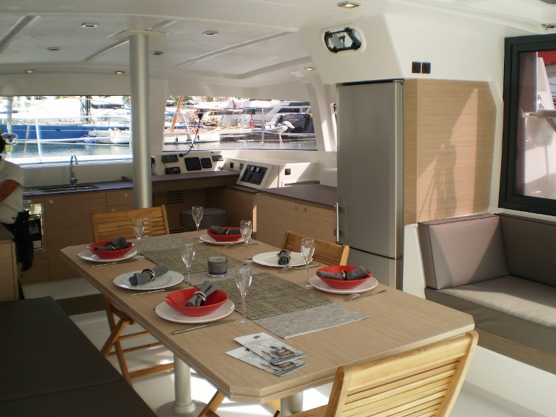 Battened mainsail, Bimini top, Electronic instruments, GPS plotter on cokcpit, Outboard motor (extra charge), Radio CD player, Solar panel, Sprayhood, Autopilot 7000, Refrigerator, Deck Shower, Solar Panel, Life jacket, Main Sail Full Batten/Lazy Jack, Nautical charts and nautical guide, Spray hood, Main Deck Compass, Depth Gauge, Lazy Bag, Lazy Jack, First aid kit, Fire extinguisher, Auxiliary anchor, Distress flares, Liferaft, Main anchor, Safety harness, Air conditioning (extra charge), Generator, Log/Speedo, Anchor, Full batten Main Sail, Bimini, Electric Windlass, Hot Water System, Heating, Cooker with oven, Cockpit Speakers, Wind Speed Indicator/Network Wind, Speedometer, Radio/CD, Echo Sounder, Autopilot, GPS Chartplotter, Dinghy Inflatable, Steering wheel, Genoa Furling