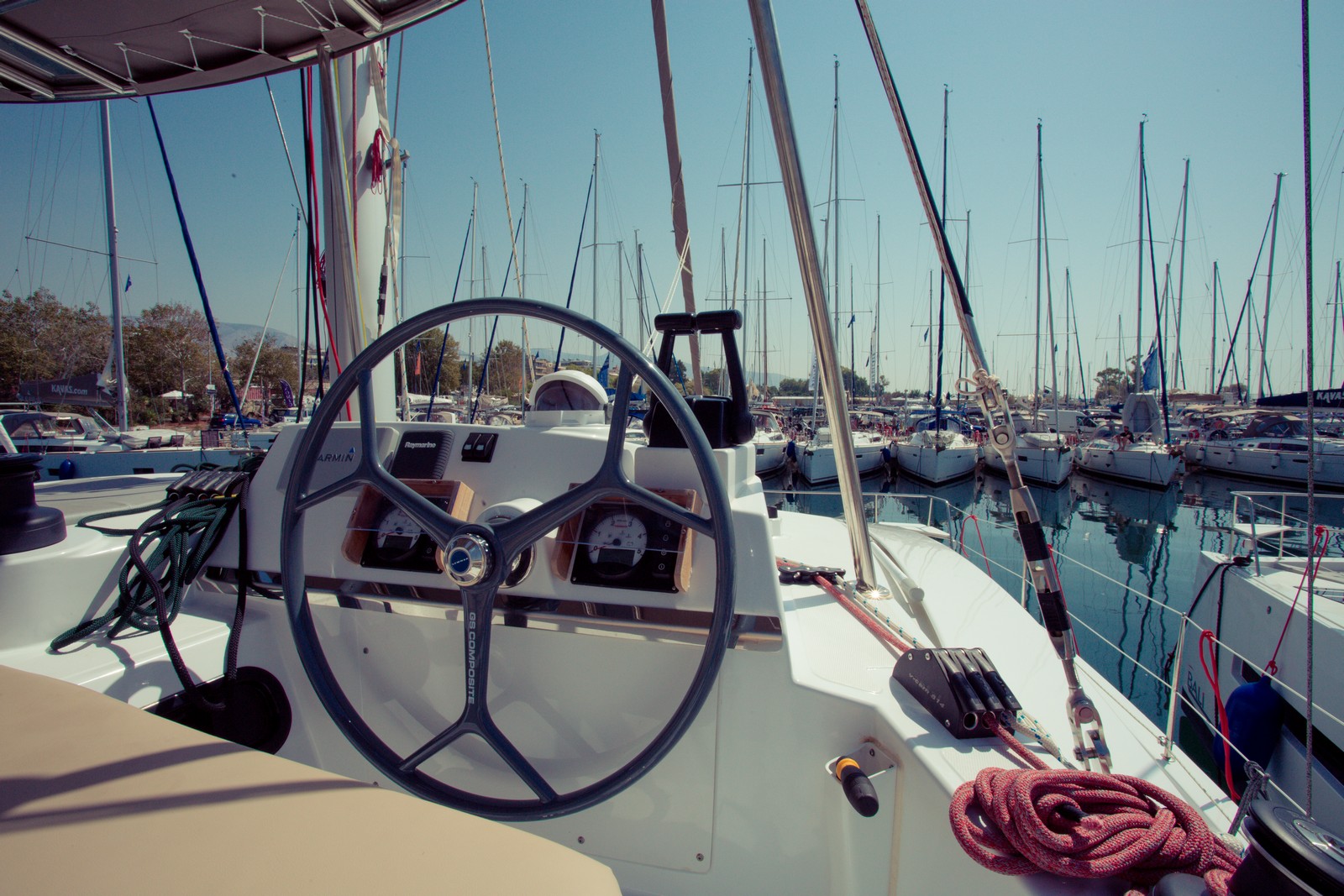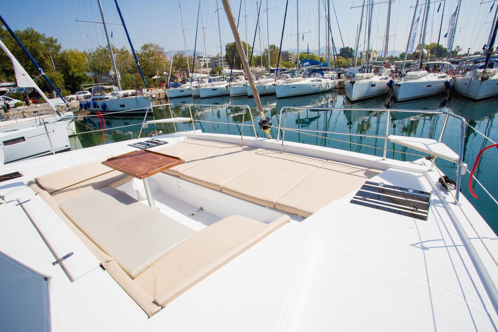 Battened mainsail, Bimini top, Electronic instruments, GPS plotter on cokcpit, Outboard motor (extra charge), Radio CD player, Solar panel, Sprayhood, Autopilot 7000, Refrigerator, Deck Shower, Solar Panel, Life jacket, Main Sail Full Batten/Lazy Jack, Nautical charts and nautical guide, Spray hood, Main Deck Compass, Depth Gauge, Lazy Bag, Lazy Jack, First aid kit, Fire extinguisher, Auxiliary anchor, Distress flares, Liferaft, Main anchor, Safety harness, Air conditioning (extra charge), Generator, Log/Speedo, Anchor, Full batten Main Sail, Bimini, Electric Windlass, Hot Water System, Heating, Cooker with oven, Cockpit Speakers, Wind Speed Indicator/Network Wind, Speedometer, Radio/CD, Echo Sounder, Autopilot, GPS Chartplotter, Dinghy Inflatable, Steering wheel, Genoa Furling
