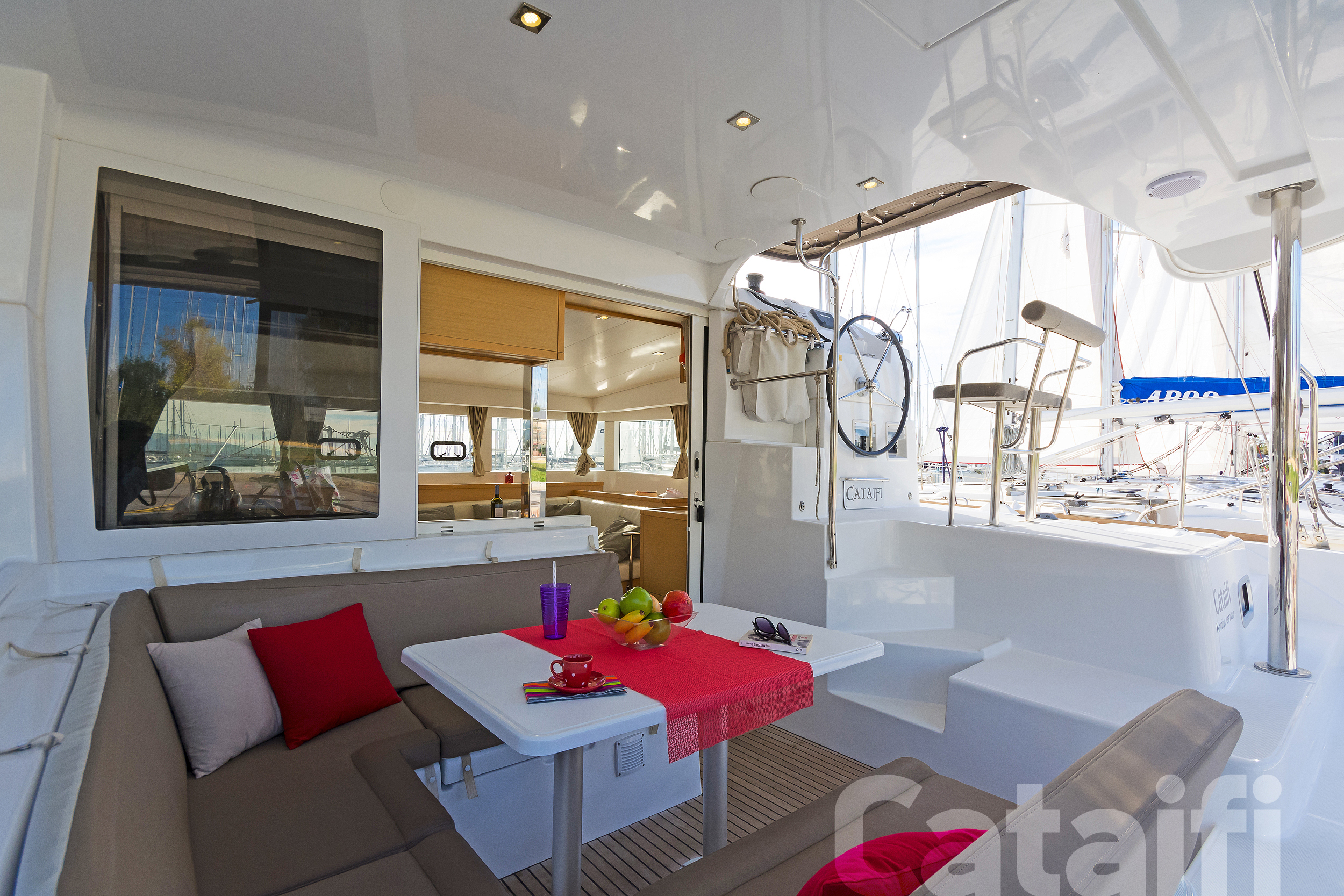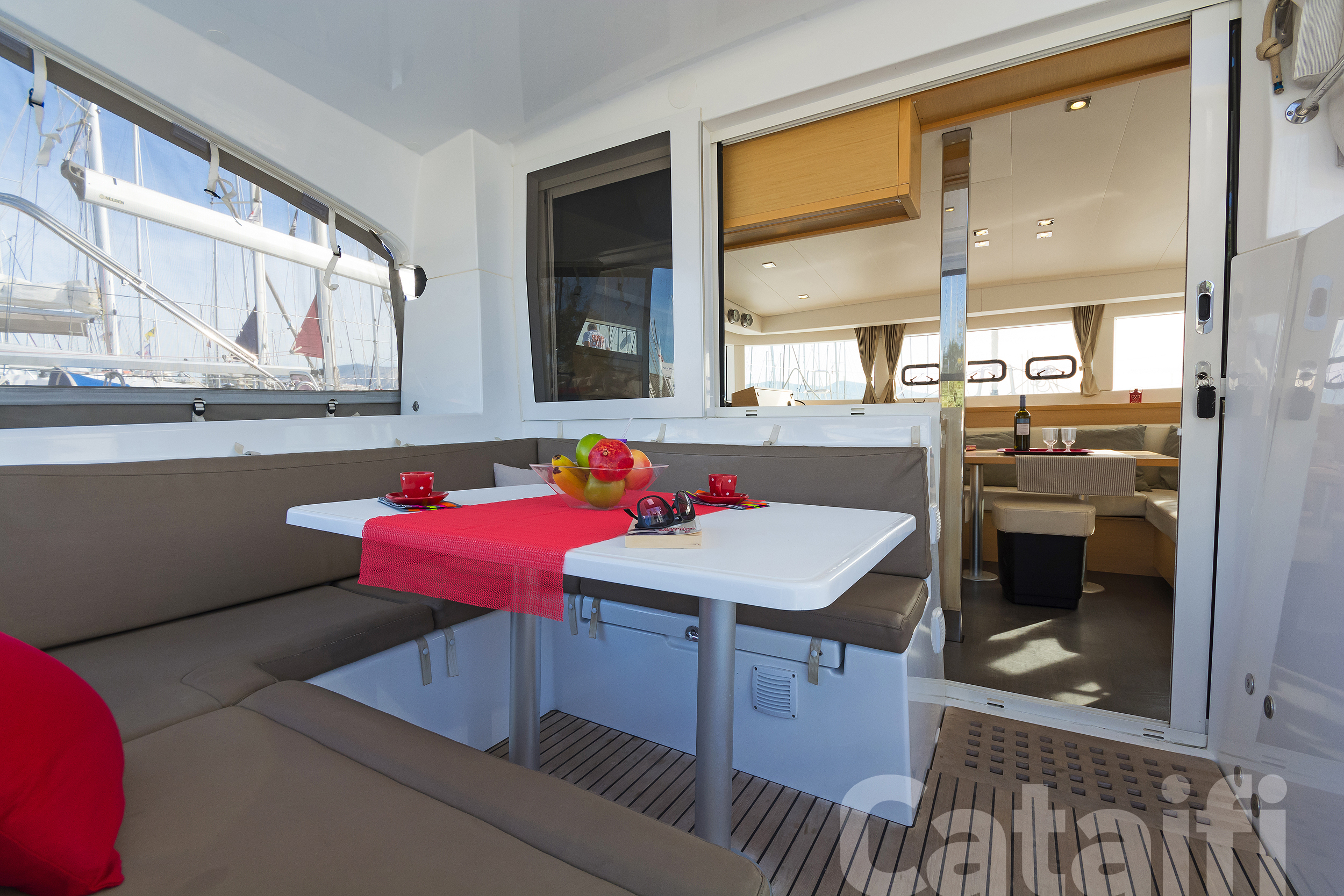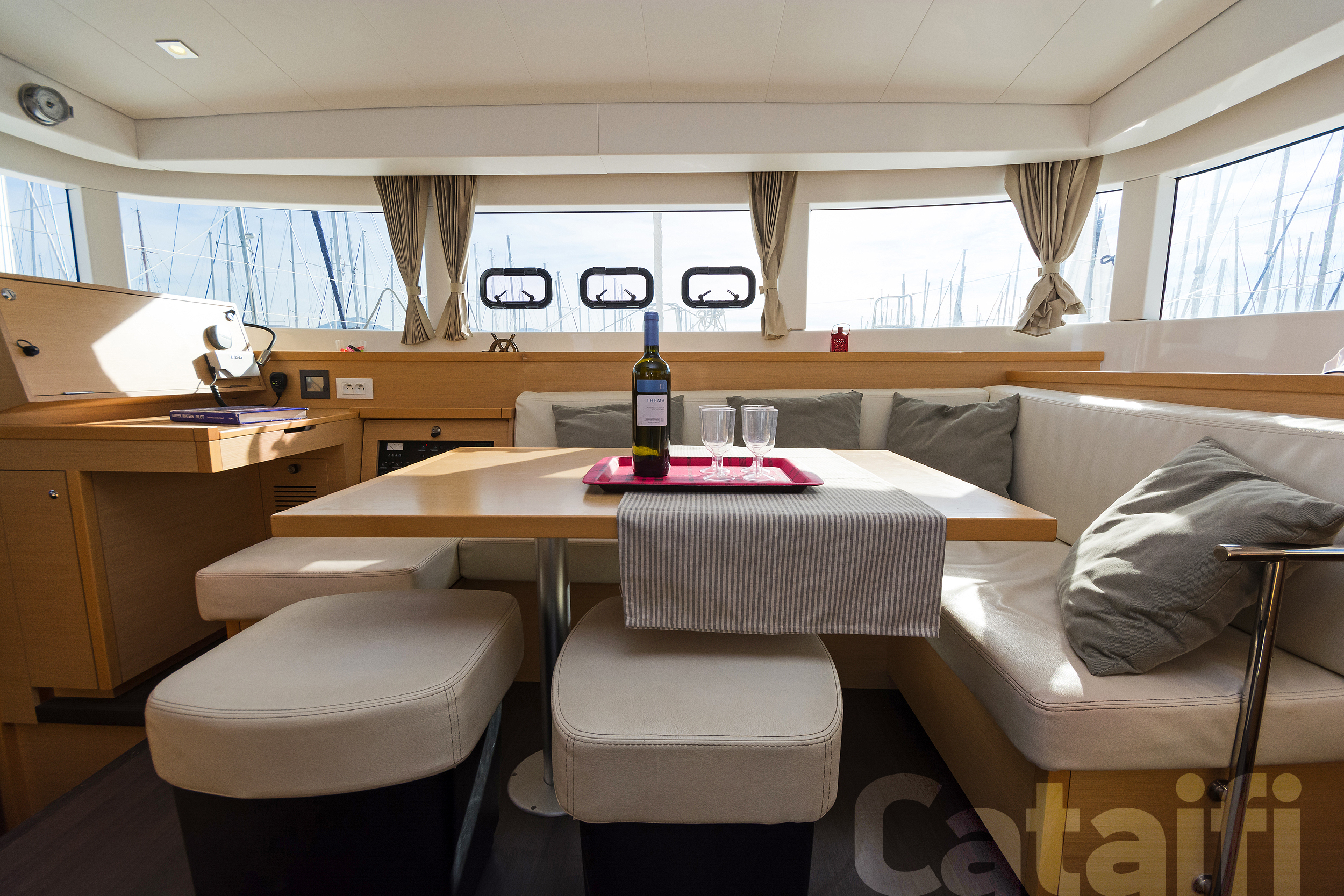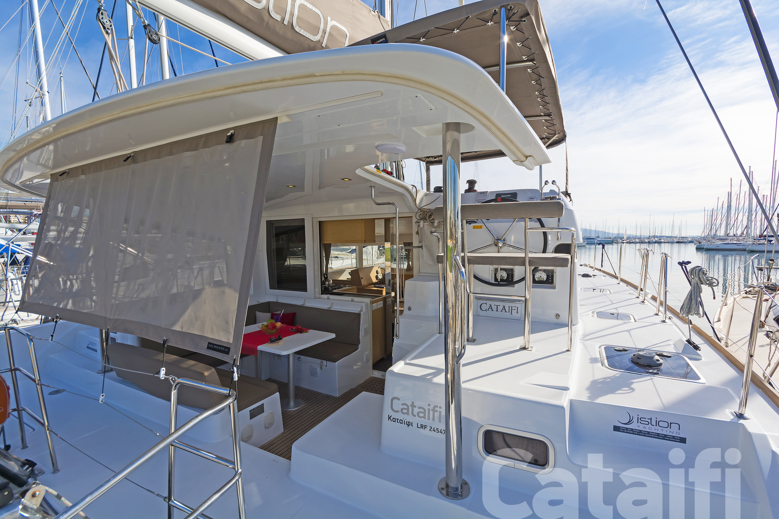 ANCHOR WINDLASS & HANDLE, BOAT HOOK, COCKPIT CUSHIONS, COCKPIT SPEAKERS, COCKPIT TABLE, DECKBRUSH, DECK SHOWER, DIESEL JERRYCAN, DINGHY, DOOR PANELS-KEYS, ENGINE OIL, FENDERS, FUEL FUNNEL, GANGWAY, GAS BOTTLES, HAND BILGE PUMP, MAIN ANCHOR-CHAIN, MOORING LINES, OUTBOARD MOTOR, PLASTIC BUCKET, PUMP & OARS FOR DINGHY, SECOND ANCHOR, SWIMMING LADDER, WATER HOSE, WINCH HANDLES, BREAD KNIFE, CAN OPENER, CHOPPING BOARD, CORK SCREW, CUPS, DINNER PLATES, DUSTPAN & BRUSH, ELECTRIC FRIDGE, FILTER COFFEE POT, FORKS, FRUIT PLATES, FRYING PANS, GAS STOVE, GLASSES, KETTLE, KNIVES, SALAD BOWL, SAUCE PANS, SOUP PLATES, SPOONS, TEA SPOONS, TEA STRAINER, TOILET BRUSH, BED SHEETS, BLANKETS, PILLOWS, PILLOWS CASES, TOWELS, 220 VOLT SOCKETS, BATTERY CHARGER, BOW CABINS, CONVRTIBLE SALOON TABLE, ELECTRIC TOILETS, FANS, HOLDING TANKS, SOLAR PANELS, AUTOPILOT, BAROMETER, BINOCULARS, CLOCK, COCKPIT COMPASS, DIVIDER, ECHO SOUNDER, ERASER, GPS, GREEK WATERS PILOT, HAND BEARING COMP, PARALLER RULER, PENCILS, PLOTTER, SEA CHARTS, SPEED LOG, VHF, WIND INSTRUMENTS, SNORKELING EQUIPMENT, USB CONNECTION, BLACK BALL, BOX OF FLARES, EMERGENCY HELM, EPIRB, FIRE EXTINGUISHERS, FIRST AID KIT, FLOATING LIGHT, FOG HORN, HORSESHOE LIFEBUOY, LIFE JACKETS, LIFE RAFT, RADAR REFLECTOR, SAFETY BELTS, TORCH LIGHT, FURLING GENOA, SHEETS, SPRAYHOOD, BOAT DOCUMENTS, BOAT MANUALS, DINGHY REPAIR KIT, SAILS REPAIR KIT, TOOLBOX, GPS IN COCKPIT