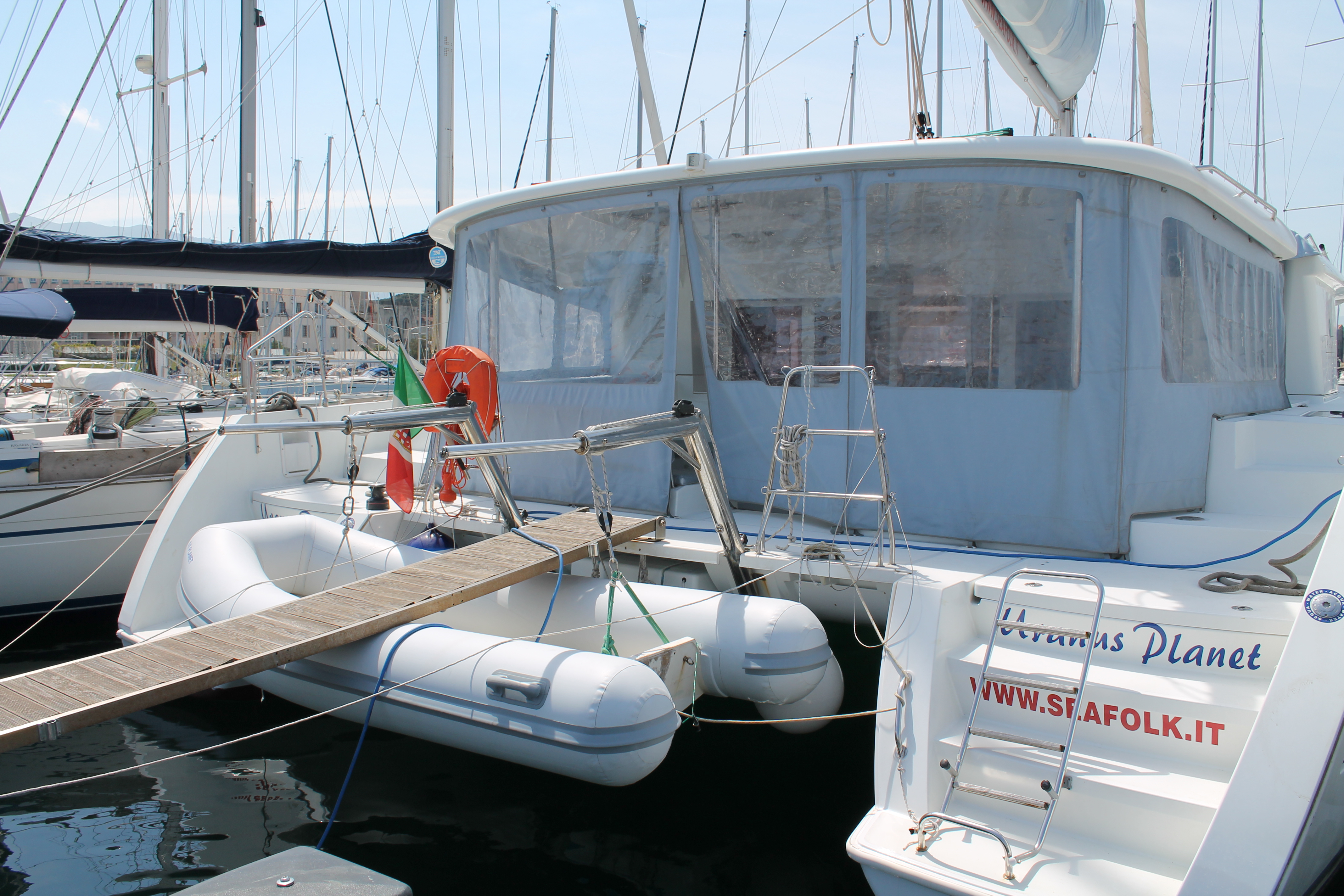 Dinghy, Autopilot, Battery charger, Bimini, Cockpit cushions, Cockpit Speakers, Cockpit table, Connection cable, Deck light, Deck Shower, Genoa Furling, Log/Speedo, Radio/CD, Safequipment, Sprayhood, Waste tank, Full batten Main Sail, Lazy Bag, Anemometer, Echo Sounder, Electricity on board 12V and 220V, Electric wc, Electric winch, Electric windlass, GPS + plotter, Inverter