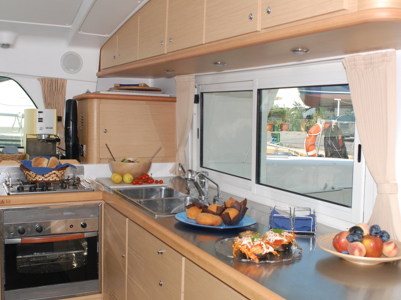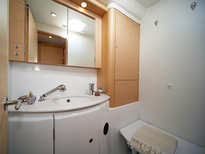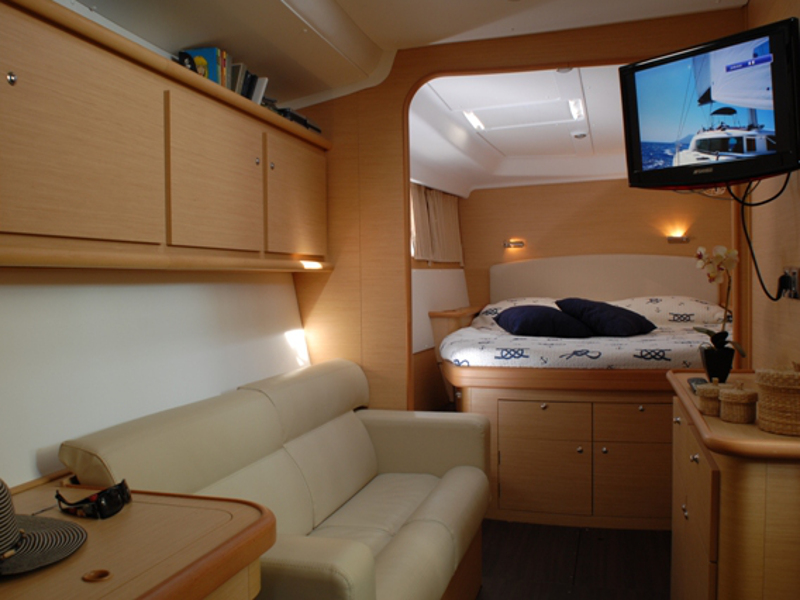 Autopilot, 12 Volt Sockets, 220 Volt Sockets, Air conditioning, Batten Mainsail, Battery charger, Bimini top, Binoculars, Boat hook, Bosuns chair, Cockpit light, Cockpit table, Coffee maker, Compass, Davits, Deck shower, Depth gauge, Dinghy, Electric winches, Electric Windlass, Emergency tiller, Fans in the cabin, Fenders, Fire Extinguishers, First aid kit, Furling Genoa , Generator, GPS Plotter, Heating, Holding tank, Ice maker, Inflatable life raft, Inverter, Kitchen equipments, Ladder, Lazy Bags, Life bouy + flahing light, Life jackets, List of Lights, Main anchor, Mooring lines, Nautical charts, Oars, Outboard, Outside speakers, Oven, Radar reflector, Radio/CD MP3 + aux input, Radiotelephone VHF, Safety Belts, Sail Repair Kit, Snorkeling Gear, Speedometer, Teak deck, Tool box, Winch handles, Wind instrument/Anemometer, Electric an manual bilge pump, Electric toilets, External speakers, Lazy Jack, Manual bilge pumps, Jerrycans for diesel, Jerrycans for gasoline, Fuel funnel, Blankets, Pillows, Wardrobe, USB/Aux input, External cushions, Flashlight, Deck brush, Plastic bucket, Gas cylinders, Water hose, Engine oil, Lubricant, Pump, Broom, Small shovel, Log, Anemometer, Hand compass, Navigation ruler, Watch, Insurances, Water pilot, Spare anchor + chain, Rockets parachute, Hand flares, Fog horn, Safety net, Hob, Electric Refrigerator, Wi-fi, Moka, Water maker