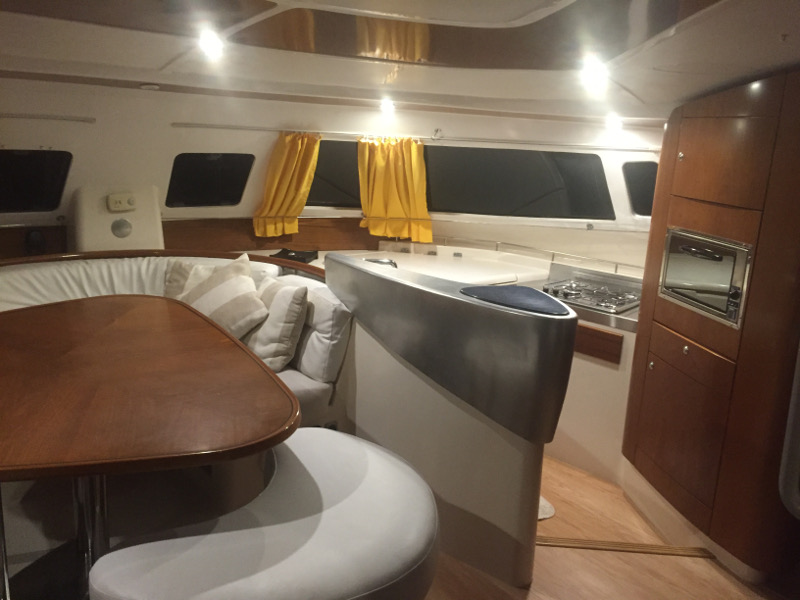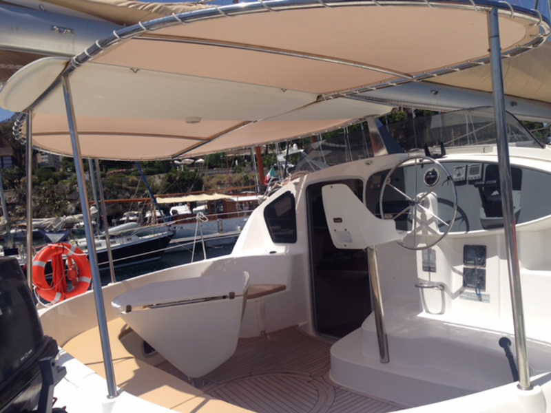 Kitchen equipment, Cushions in cockpit, Electric toilets, Coffee maker, 12 Volt Sockets, Electric Windlass, Ladder, Jerrycans for diesel, Jerrycans for gasoline, Deck shower, Blankets, Pillows, Wardrobe, Fans in the cabin, Cockpit table, Cockpit light, External cushions, Tool box, Flashlight, Deck brush, Water hose, Engine oil, Lubricant, Wind instrument/Anemometer, Compass, Binoculars, Speedometer, Nautical charts, List of Lights, Emergency tiller, Safety Belts, Inflatable life raft, Life bouy + flahing light, Generator, Heating, Air conditioning, Nautical guide, Spare anchor + chain, Signal rockets, Water maker, Moka, Electric winches, Radio/CD MP3 + aux input, Manual bilge pumps, 220 Volt Sockets, Autopilot, Batten Mainsail, Battery charger, Bimini top, Boat hook, Bosuns chair, Cockpit refrigerator, Davits, Depth gauge, Dinghy, Fenders, Fire Extinguishers, First aid kit, Furling Genoa , Gangway, GPS Plotter, Lazy Bags, Life jackets, Main anchor, Mooring lines, Oars, Oven, Radar reflector, Radiotelephone VHF, Teak deck, Winch handles, Electric an manual bilge pump, External speakers, Lazy Jack, Outboard, Fuel funnel, Plastic bucket, Gas cylinders, Pump, Broom, Small shovel, Log, Anemometer, Hand compass, Navigation ruler, Watch, Insurances, Water pilot, Rockets parachute, Hand flares, Fog horn, Safety net, Hob, Electric Refrigerator, Wi-fi
