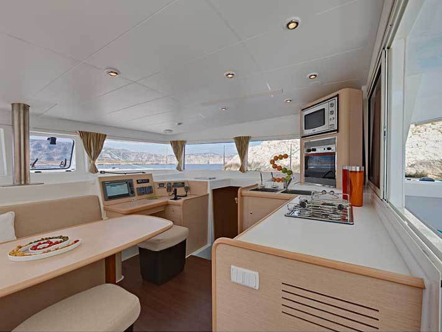 Electric winches, Lazy bag, Autopilot, Binoculars, Compass, Cruising guides, GPS chart plotter-cockpit, Nautical charts, Navigation (Nautical) charts and nautical guide, Navigation set, Radar reflector, Tridata, Wind instrument/Anemometer, 12 x Life belts (Safety harness), 12 x Life jackets, Distress flare box, Emergency tiller, Fire extiguisher, First aid kit, Fog horn, Life buoy + Flashing light, Liferaft, Torch, 14 x 220 volt socket, 2 x VHF radio, 3 x Service batteries, Battery charger, Bilge pump - Electric, Inverter, Shore connection 220 V, 2 x Round/globular fender, 3 x Winch handles, 8 x Fenders, Anchor chain counter, Black Water Tank, Boat hook, Cockpit/stern, outside shower, Cockpit cushions, Cockpit table, Electric anchor windlass, Gangway, Hard Top Bimini, Main anchor, Mooring ropes, Spare anchor (Reserve, Auxiliary anchor), Sun deck, Teak cockpit, Water hose, 2 x Freezer, 2 x Gas bottles, Gas cookers (stove), Ice box, Kitchen utensils (Galley equipment, cutlery), Oven, Refrigerator, 4 x Electric toilet, Bed linen, Bilge pump - mechanic, Blankets, Diesel heater with water circuit, Hand - held compass, Pillows , Salon, Outside speakers, Radio CD/mp3 player, USB, AUX input, W-LAN GRATIS, Dinghy, Flashlight, Pump and Repair kit, GPS chart plotter-outside on fly bridge, Radar, Warm water, Self tacking jib